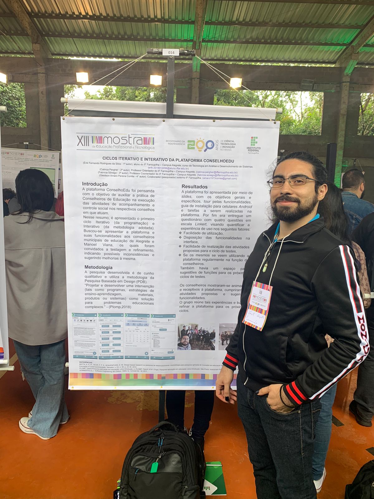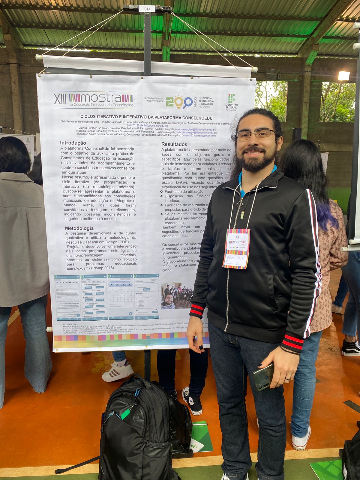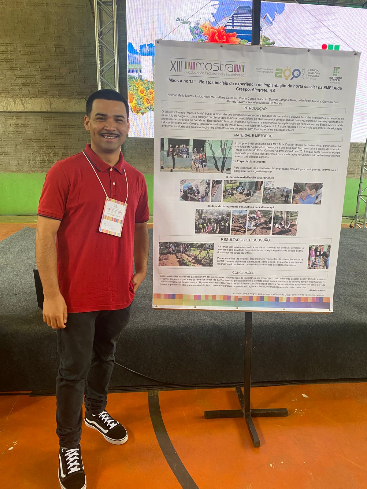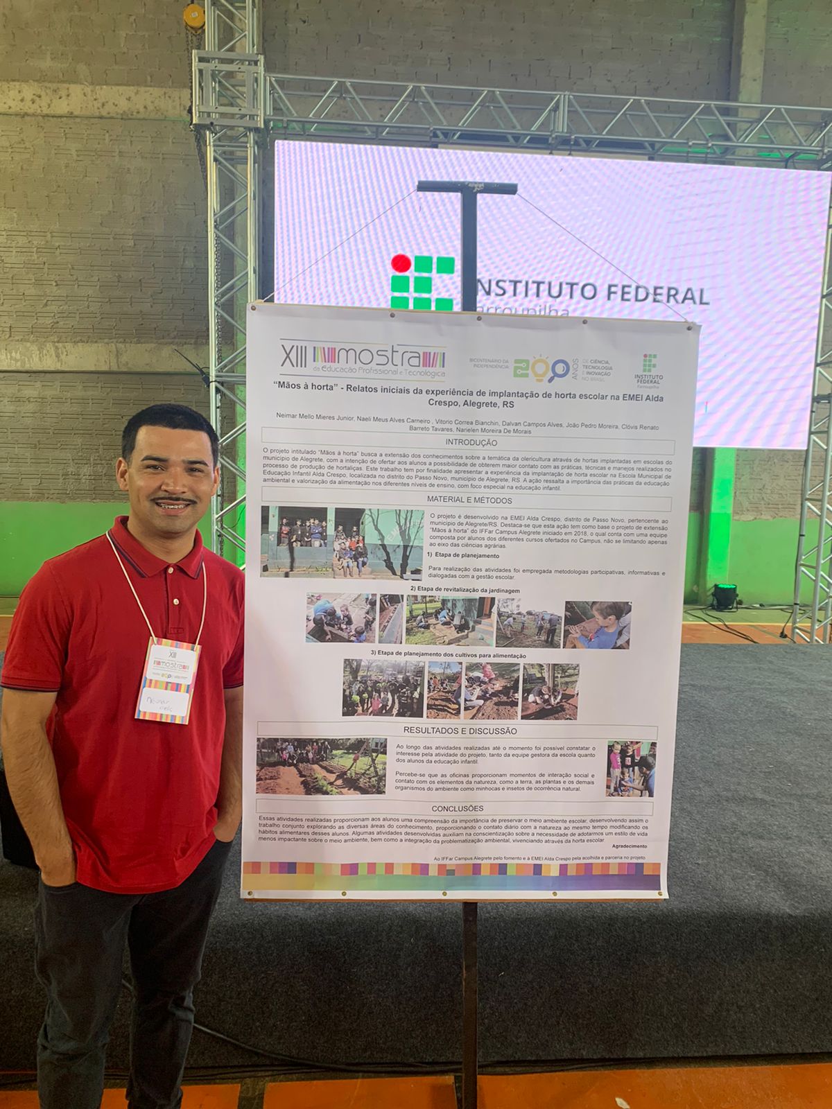 A Mostra de Educação Profissional e Tecnológica aconteceu dia 14 de outubro de 2022 no Campus Santo Ângelo. O evento contou com a participação de estudantes, servidores docentes e técnicos-administrativos em educação do Campus Alegrete. Os alunos apresentaram seus trabalhos no formato de pôster e na Mostra de Inovação, orientados pelo professor Rafael Winter.