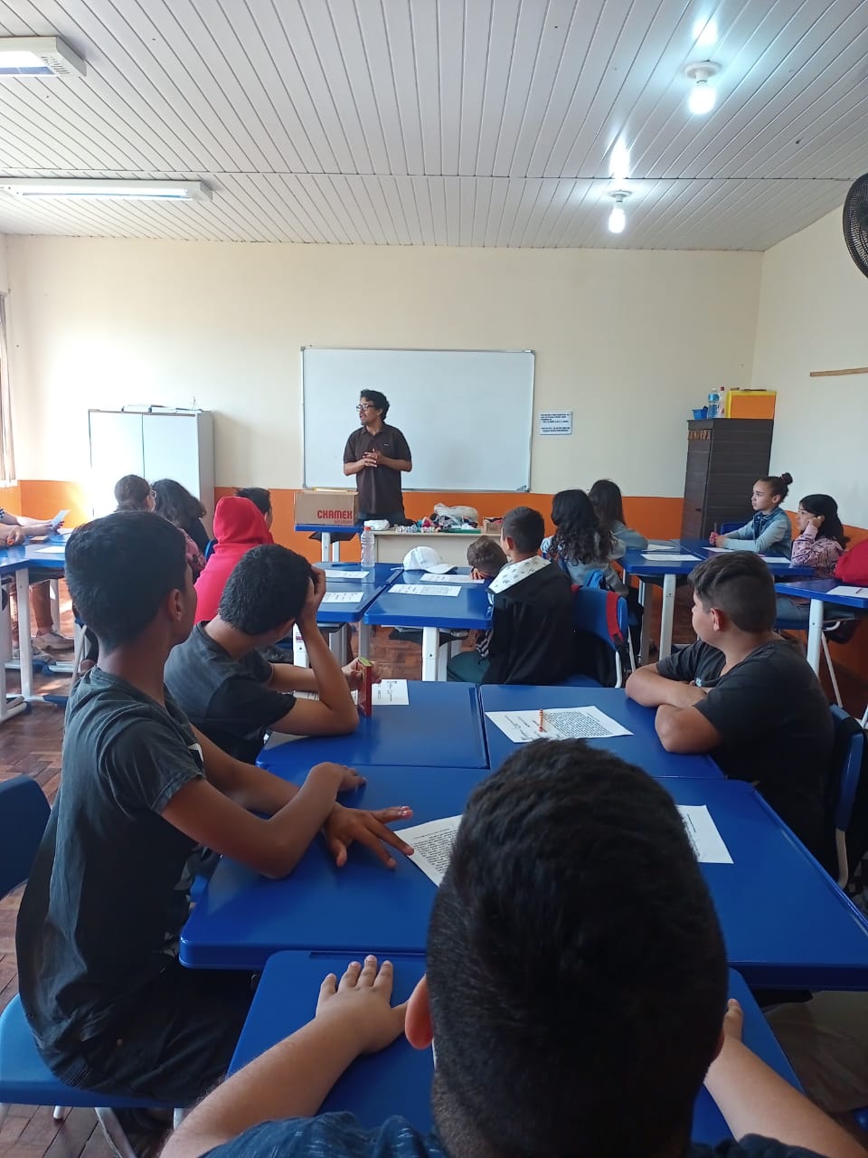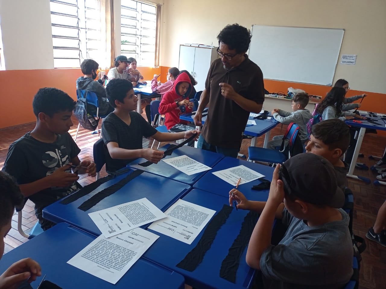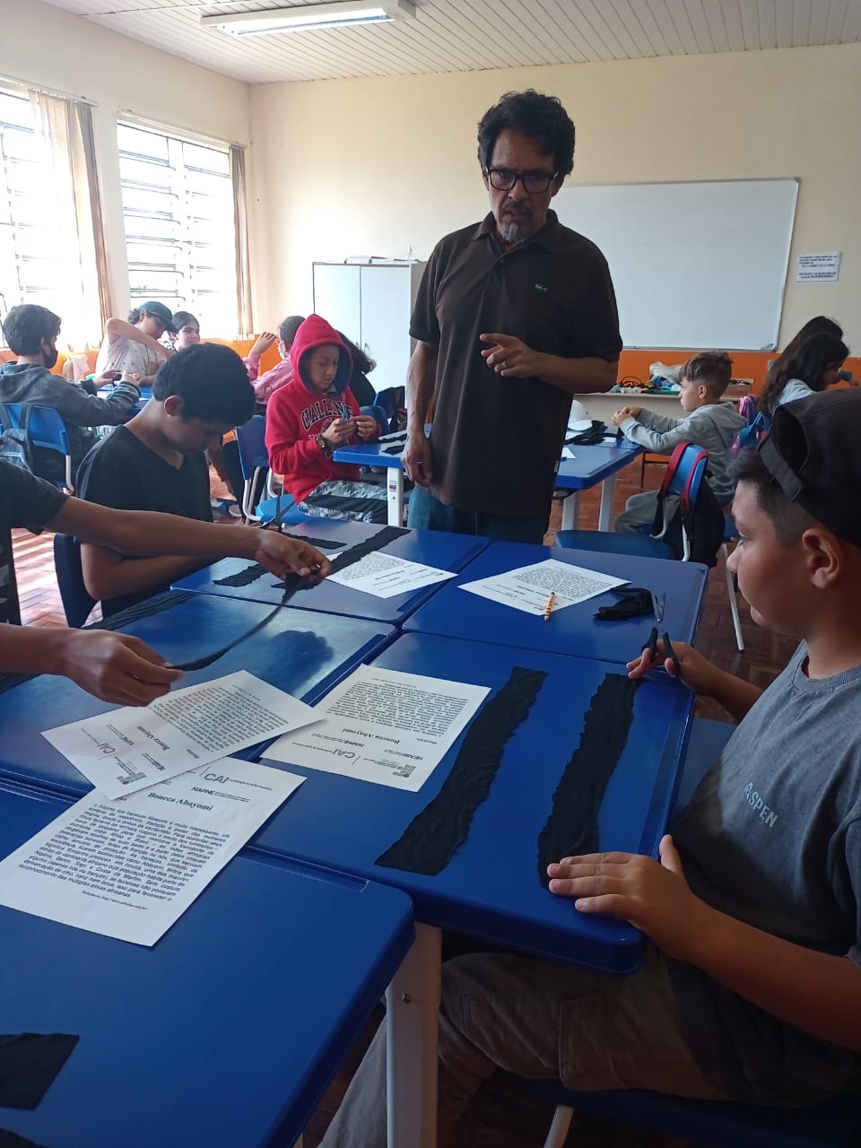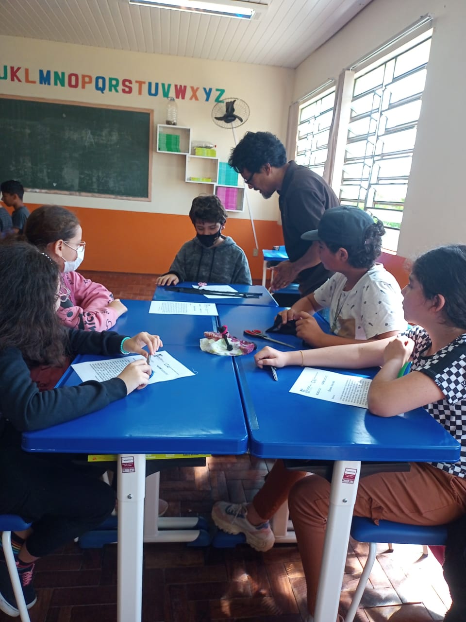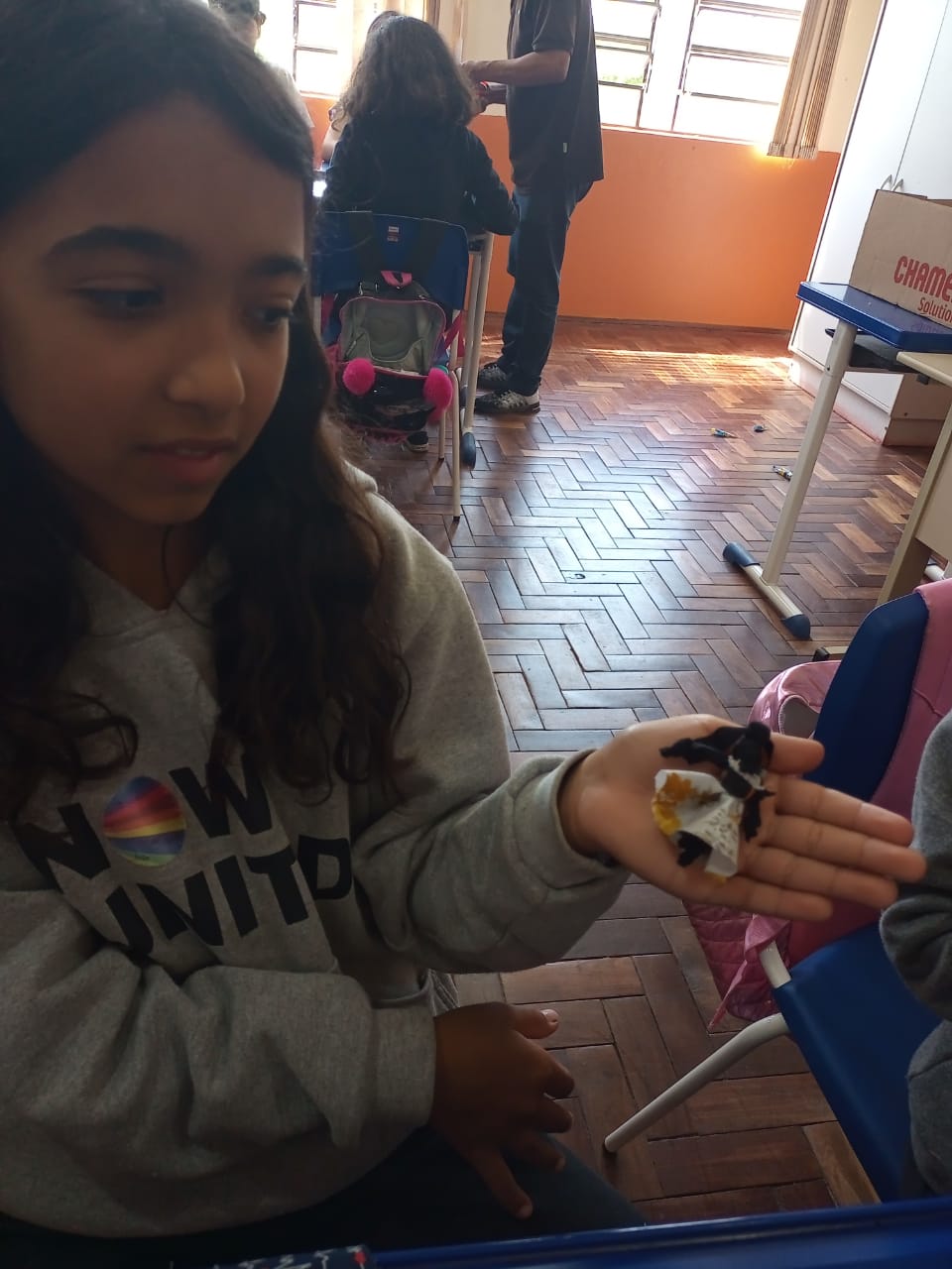O convite foi realizado pela Vice-diretora da Escola, Prof.ª Elenice Alves, e a oficina foi destinada aos alunos do 5° ano da Prof.ª Arminda Oribes. A atividade foi um sucesso!