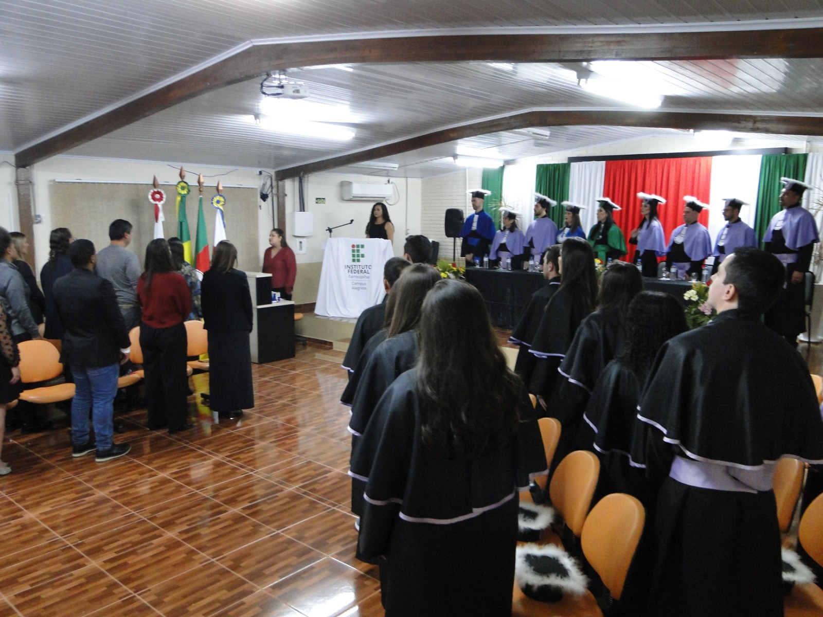 Já no dia 28 de abril, colaram grau os formandos do Curso Superior de Bacharelado em Zootecnia e dos Cursos Superiores de Tecnologias em Agroindústria e Produção de Grãos. A cerimônia aconteceu às 19 horas, no Clube Juventude de Alegrete.