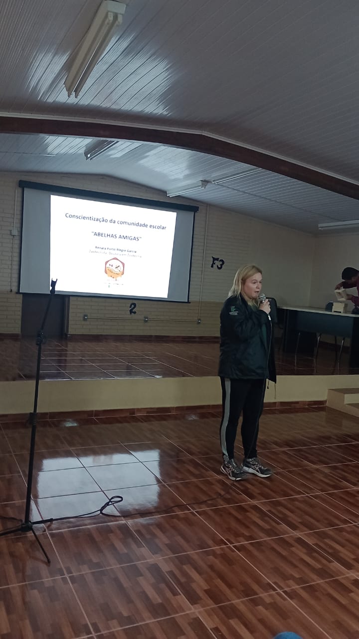 Ao conversar com a Prof.ª Renata Porto Alegrete, coordenadora da Lepep de Apicultura e Meliponicultura do IFFar - Campus Alegrete, tiveram a ideia de levar o projeto de extensão "Meliponário na escola" também para o Lauro Dornelles. O primeiro encontro foi no dia 14 de agosto com alguns representantes da Escola Lauro Dornelles, onde eles puderam conhecer pessoalmente o apiário do IFFar - Campus Alegrete. Logo depois foi realizada uma ação de conscientização ambiental na escola, visando o aprendizado sobre a importância das abelhas no meio ambiente, a diferença entre abelhas com ferrão e sem ferrão e a forma de interação com elas. O encontro aconteceu na tarde de ontem, 23, no auditório da escola Lauro Dornelles. Estiveram presentes no evento, além da comunidade da escola, a Prof.ª Renata Porto Alegre e a equipe da Lepep de Apicultura e Meliponicultura e a Prof.ª Paula Guadagnin e sua equipe de bolsistas do Pibid de Ciências Biológicas.