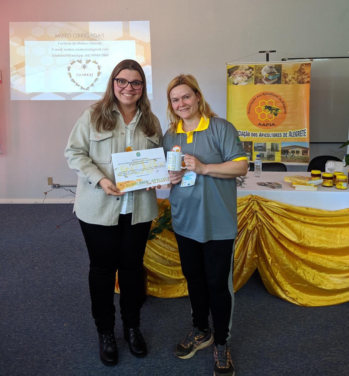 Ainda durante a manhã, a Zootecnista e Técnica do Senar, Lucilene de Mattos, falou sobre a produção de abelhas rainhas na Fronteira-Oeste do RS. Para finalizar as palestras, diversos brindes foram sorteados aos participantes do evento.