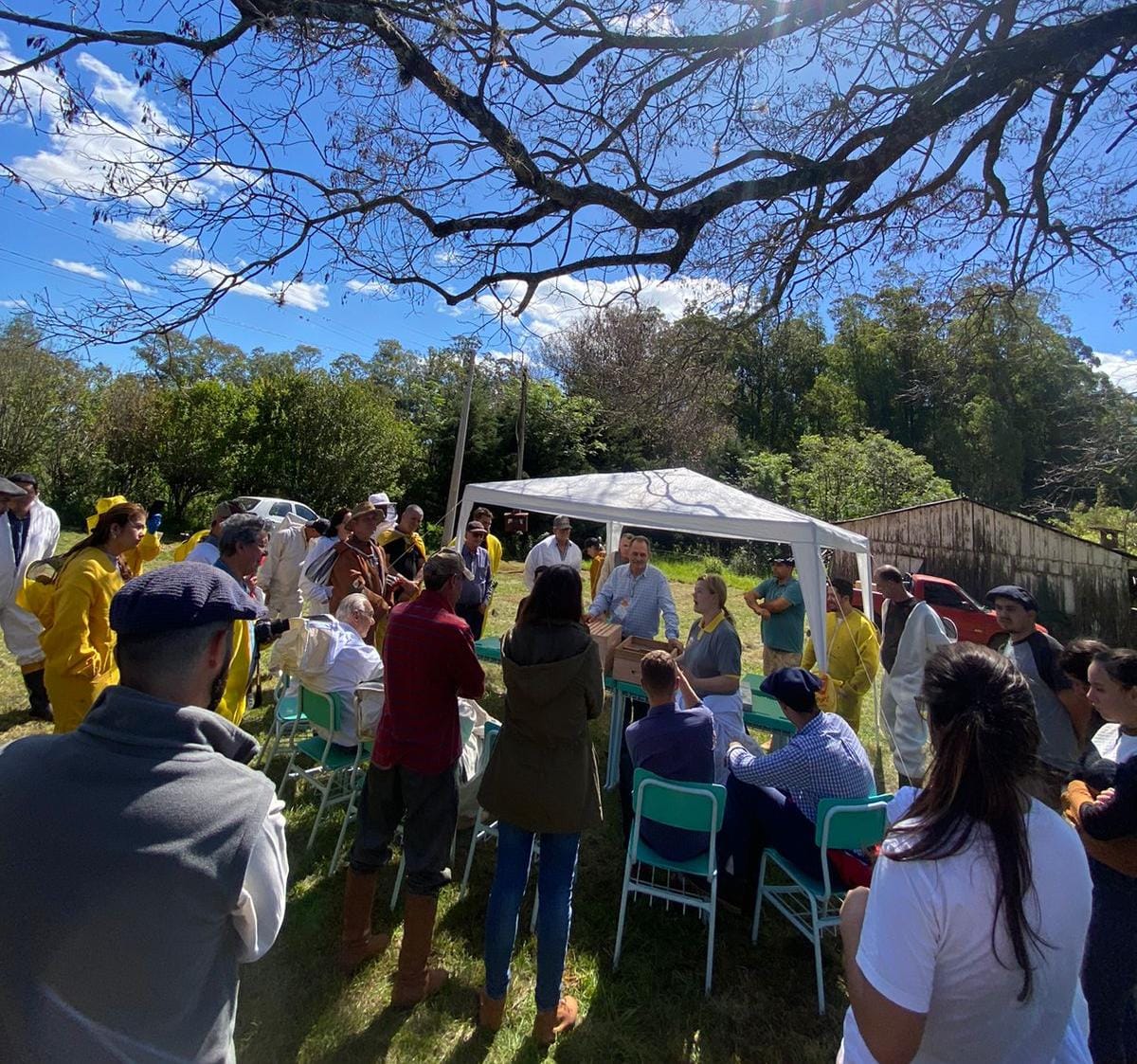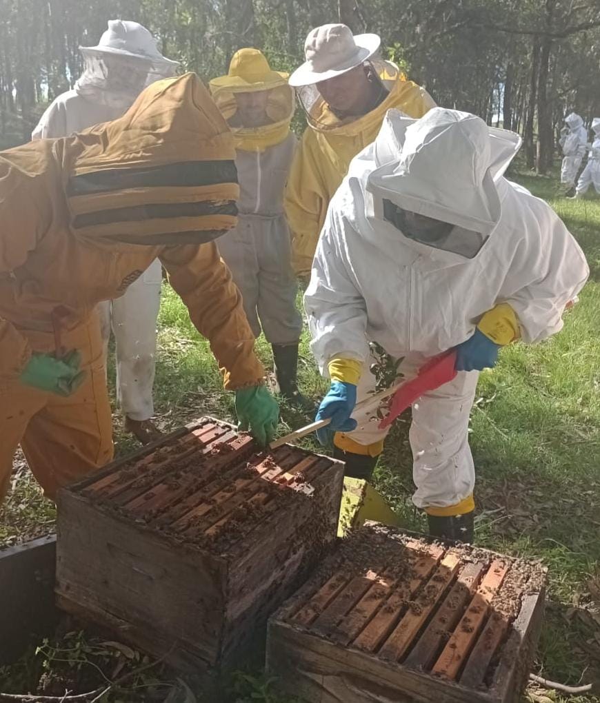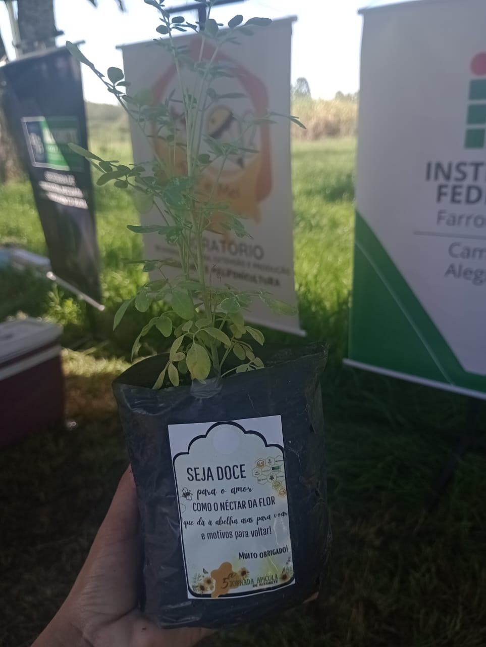 Após o almoço de confraternização, aconteceu a atividade prática no apiário da AAPIA, em três estações: alimentação, comportamento higiênico e varroa - encerrando a 5ª edição da Jornada Apícola de Alegrete ao entregar aos presentes uma muda de espécies de plantas com potencial apícola (pitanga e manjericão).
