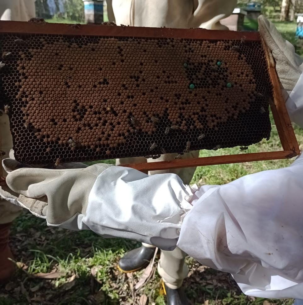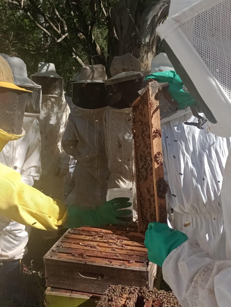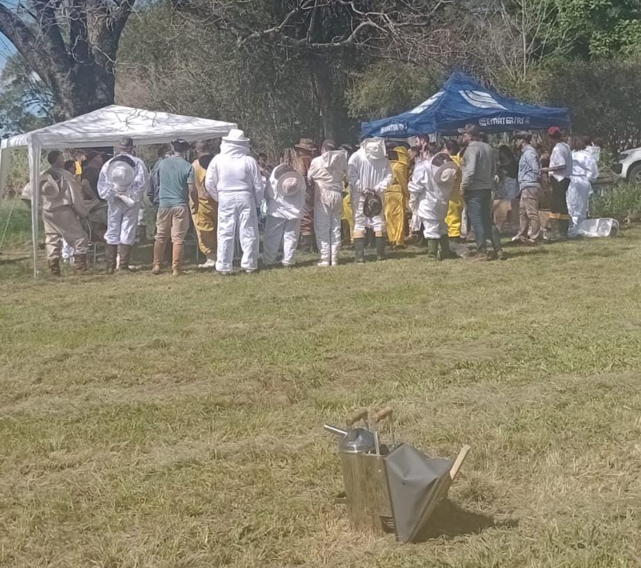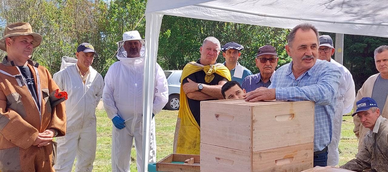 Após o almoço de confraternização, aconteceu a atividade prática no apiário da AAPIA, em três estações: alimentação, comportamento higiênico e varroa - encerrando a 5ª edição da Jornada Apícola de Alegrete ao entregar aos presentes uma muda de espécies de plantas com potencial apícola (pitanga e manjericão).