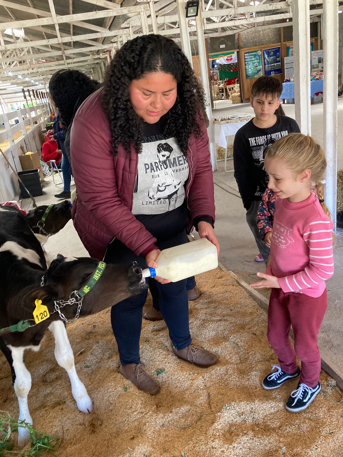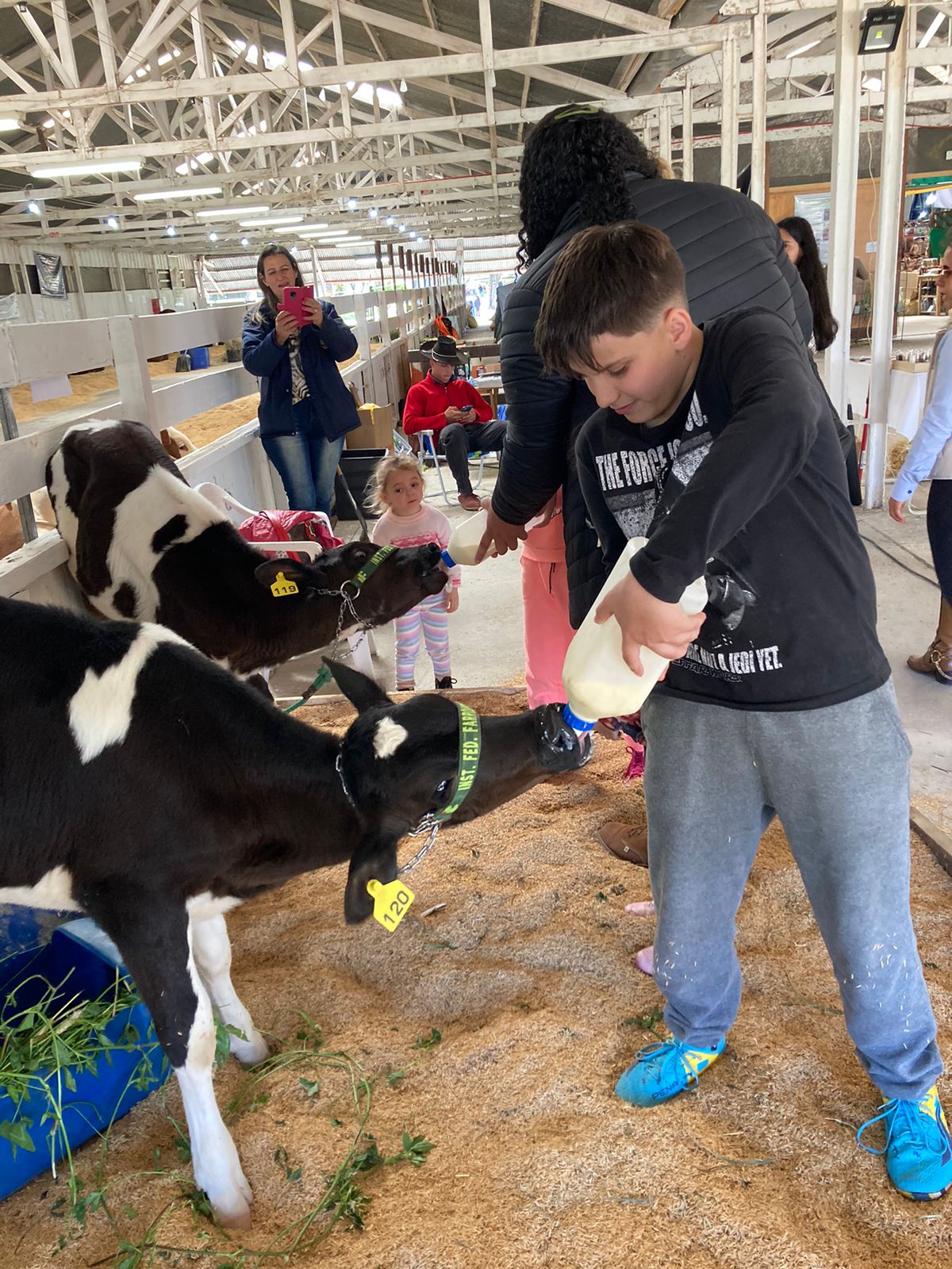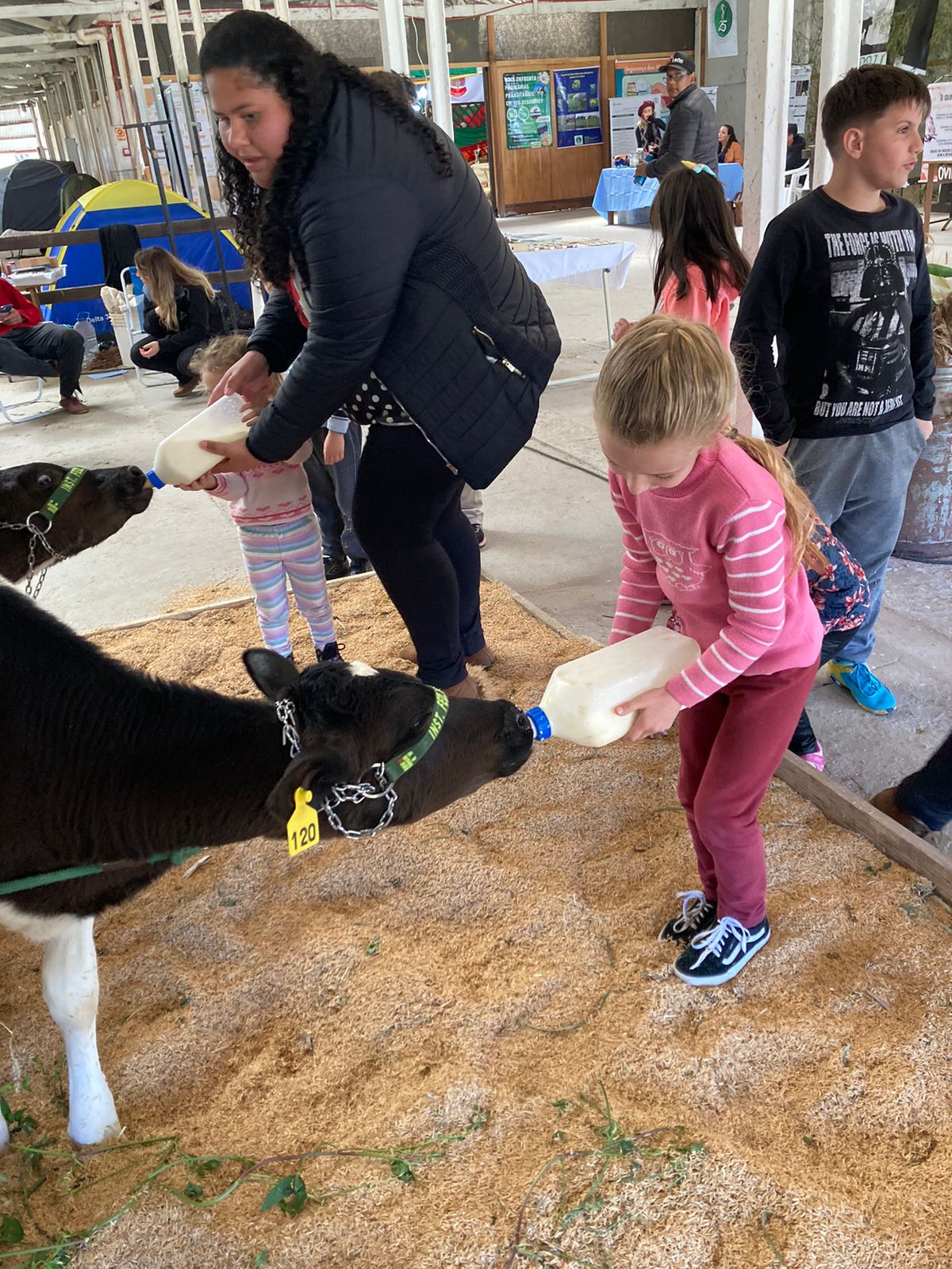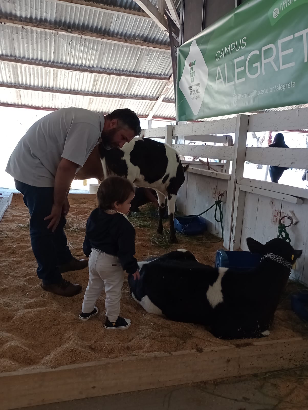 Um dos destaques levados para a exposição foram os bovinos leiteiros - um exemplar Jersey e bezerros da raça Holandês - os quais impressionaram o público com a alta qualidade genética. Os animais foram acompanhados pelo Coordenador do Curso de Zootecnia, Prof. Emmanuel Veiga de Camargo, além de oito estagiários que trabalham diariamente com os animais, tendo o compromisso da qualidade da produção leiteira do IFFar. O Prof. Emmanuel também levou para a Exposição o projeto de extensão "Zootecnia para Crianças - Somos Todos do Leite".