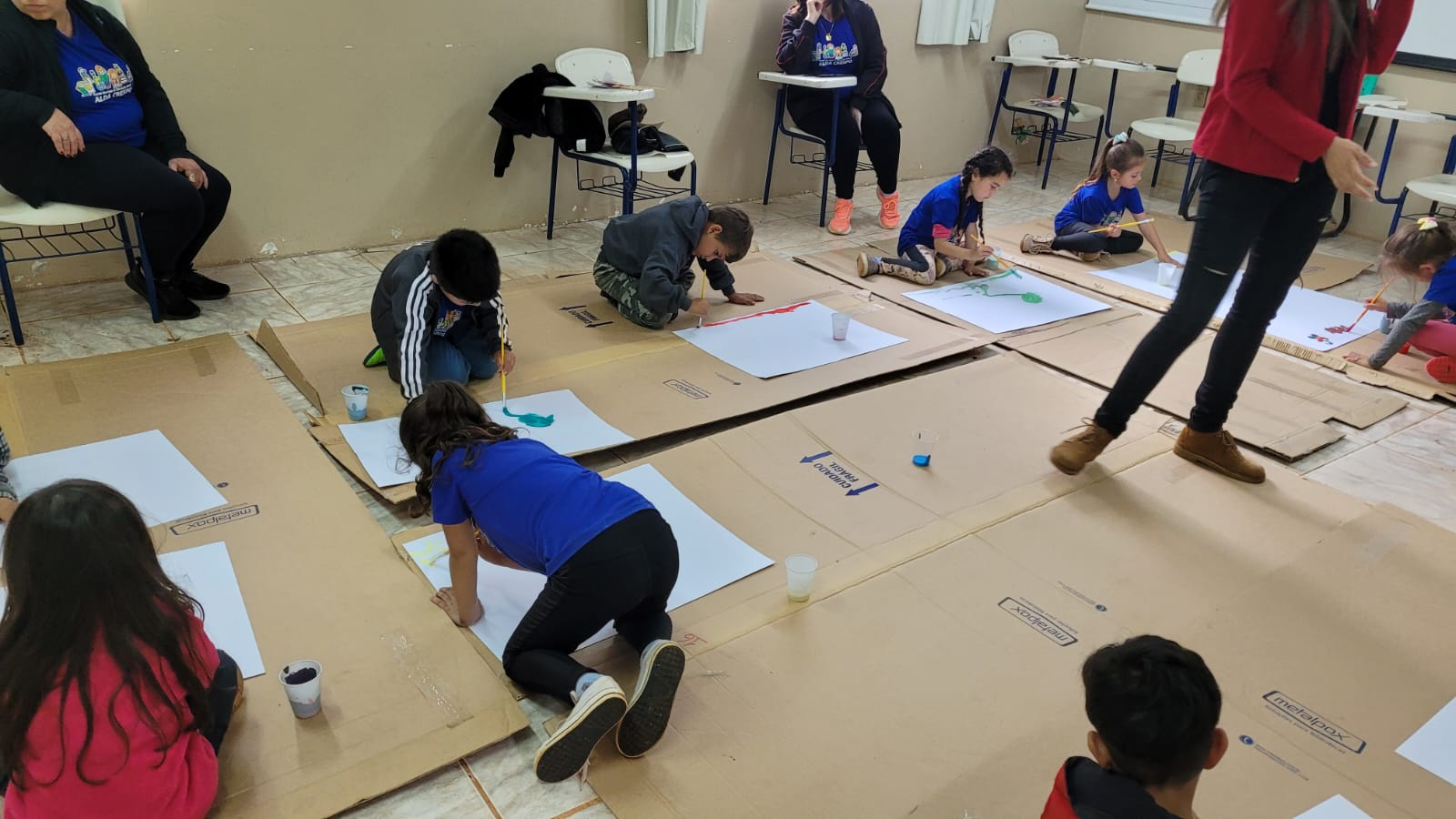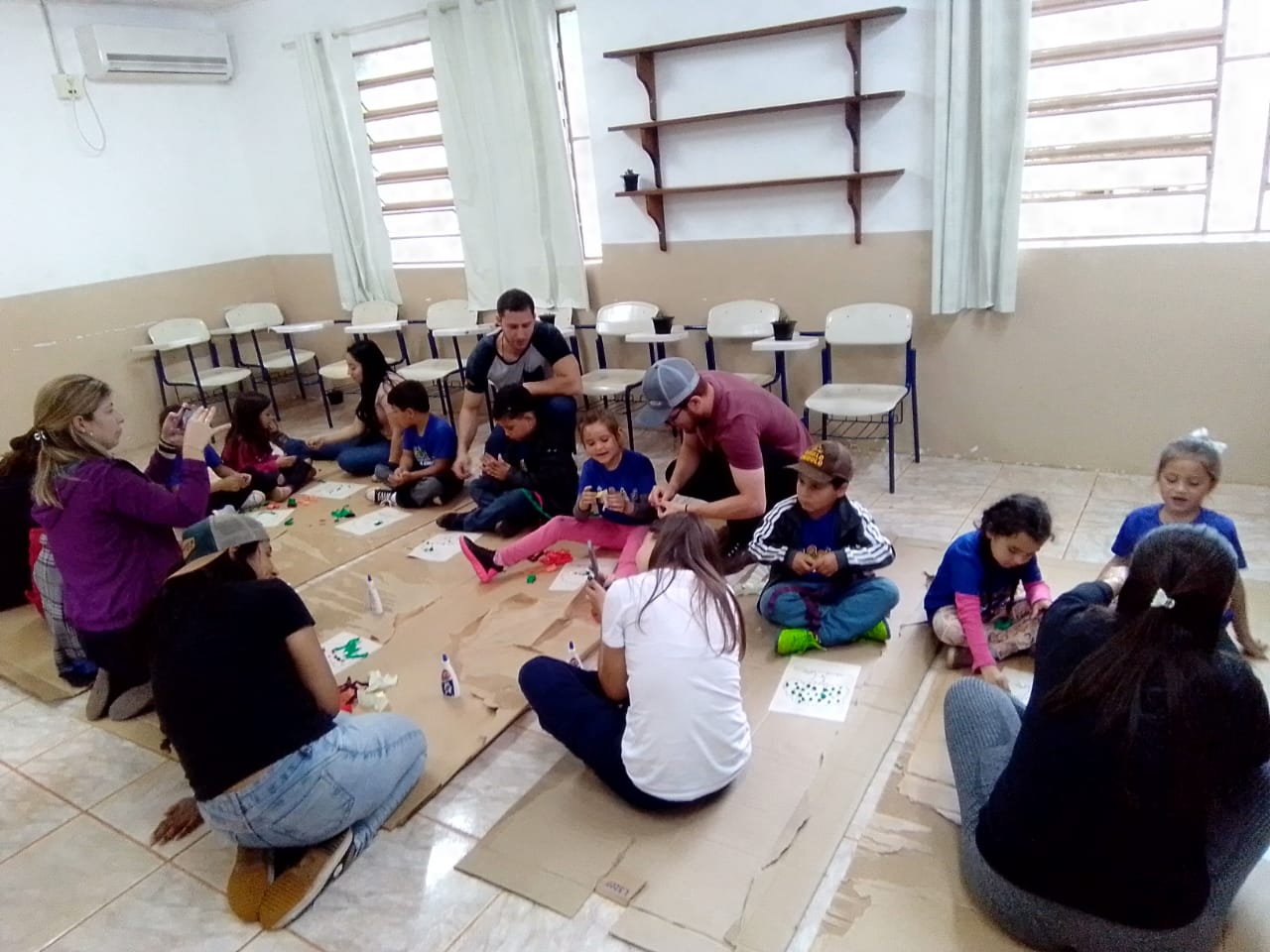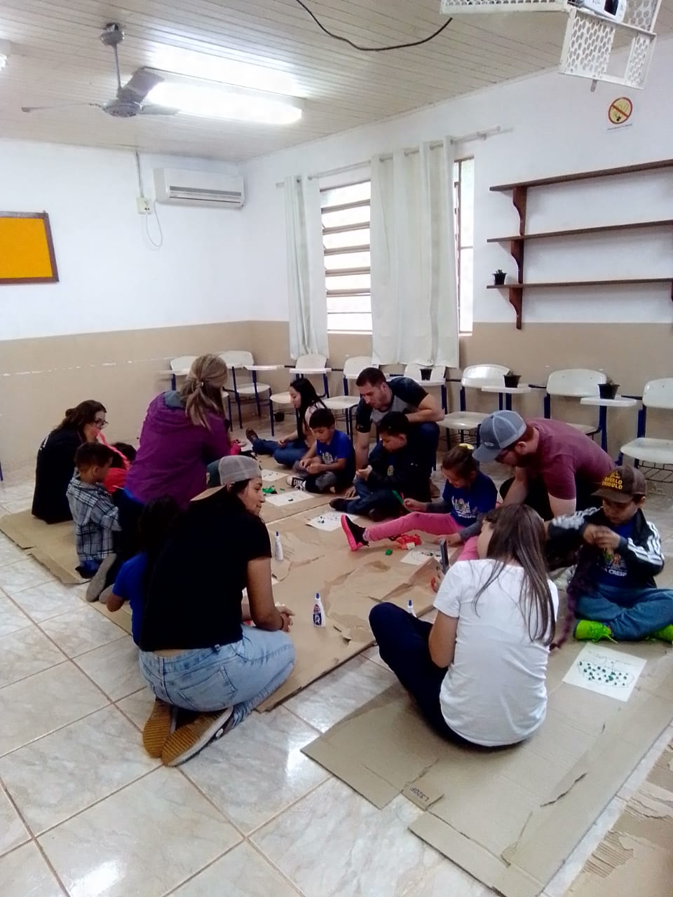 No período da tarde os(as) alunos(as) foram convidados a desenvolver atividades de desenho, pintura e plantio de mudas, sendo estimulados a refletir a respeito do trabalho em conjunto em benefício do meio ambiente e da sociedade.