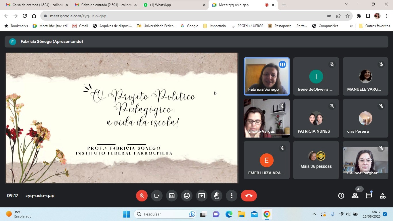 15/07/23 – Formação Continuada - 3º Encontro: "Projeto Político-Pedagógico: a vida da escola!", palestra proferida pela Professora Fabiana Sônego, do IFFar;