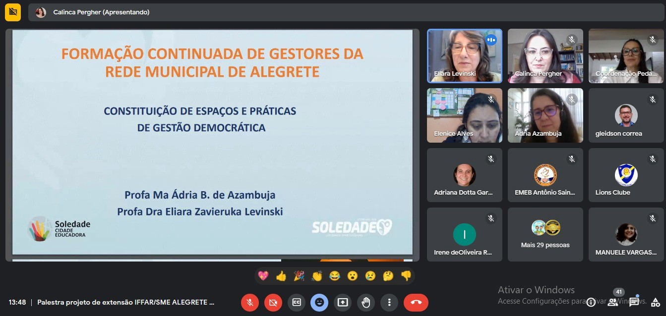 28/06/23 – Abertura do curso de “Formação Continuada: Gestores da rede municipal de Alegrete RS” – 1º Encontro: “O olhar sensível na gestão da Educação Infantil”, ministrada pela Professora do IFFar, Gabriela Da Ros de Araújo;