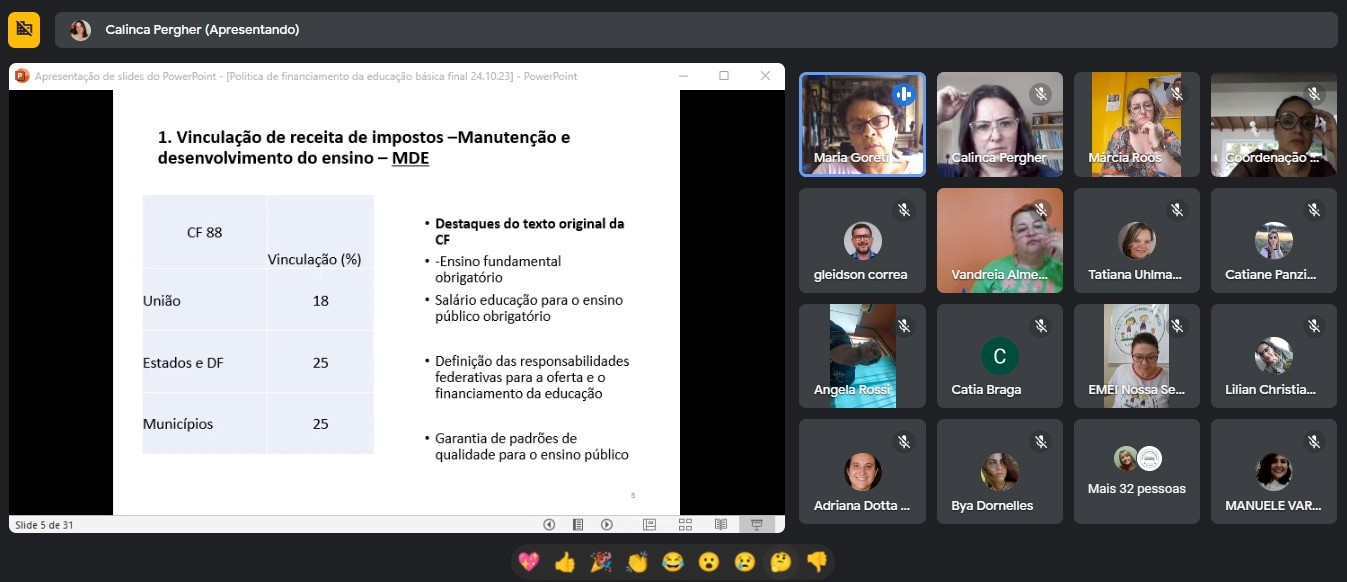 24/10/23 - Formação Continuada - 6º Encontro: "Financiamento da educação e a gestão dos programas na escola: em foco PDDE" - ministrado pela Prof.ª Maria Goreti Farias Machado - UFRGS;