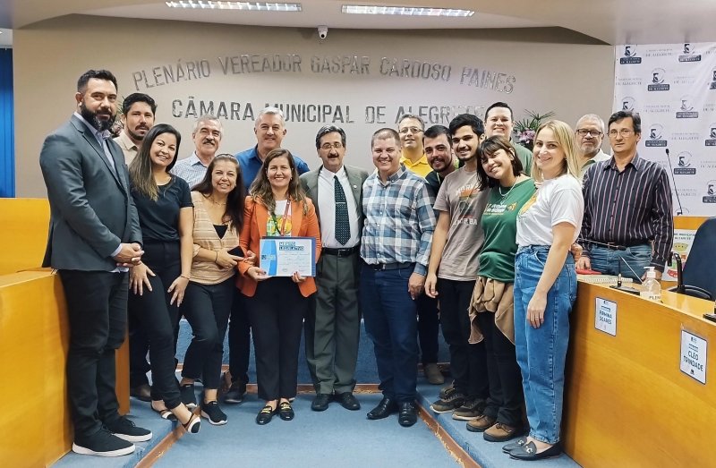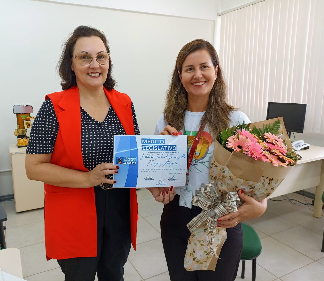 De proposição do Vereador Anilton Oliveira e aprovada por unanimidade pelos demais vereadores, o Campus Alegrete recebeu o Mérito Legislativo pela passagem de seus 70 anos. A cerimônia ocorreu na parte da manhã do dia 21 e contou com a presença da equipe diretiva do Campus Alegrete, equipe diretiva do Campus São Vicente do Sul, servidores ativos e aposentados, estudantes, egressos e comunidade em geral. Na oportunidade a Vereadora Fátima Marchezan, representando o Senador Luiz Carlos Heinze – egresso da Instituição - entregou ofício simbolizando a destinação de recurso de R$ 500.000,00 de emenda parlamentar individual enviada pelo Senador para execução no exercício financeiro 2024.