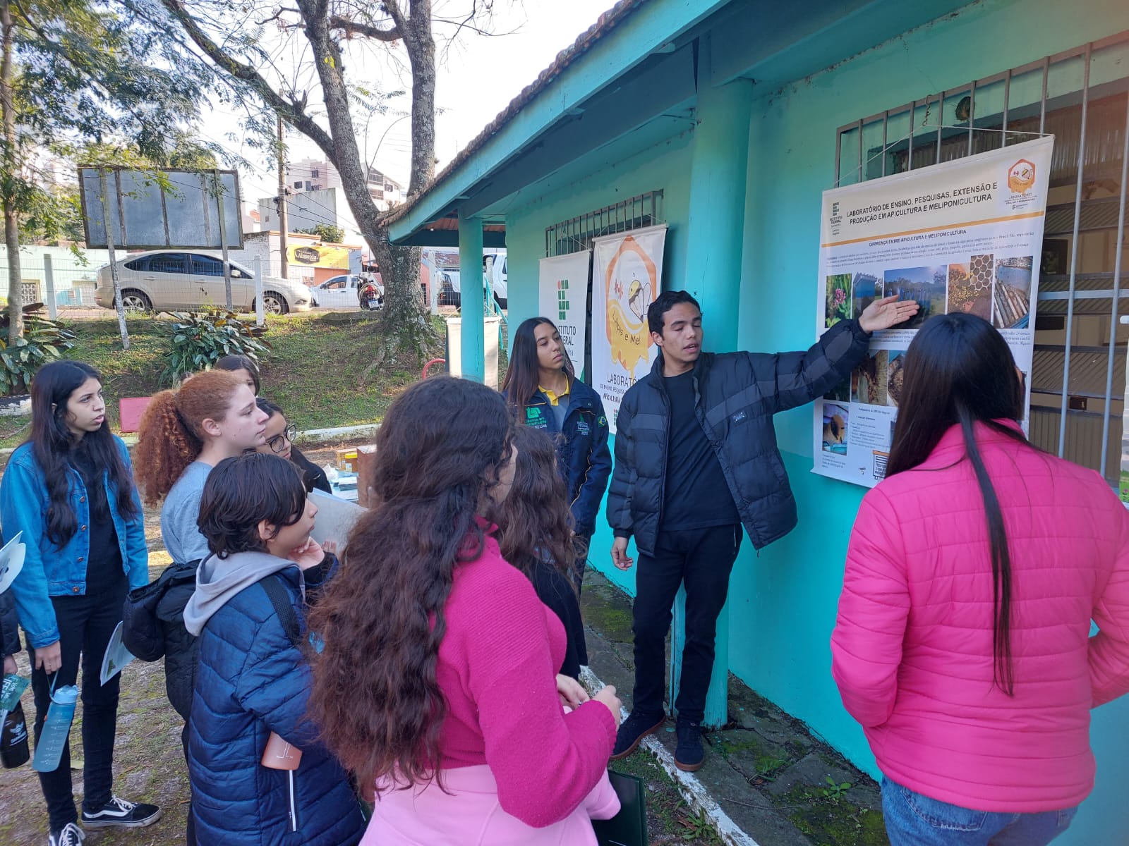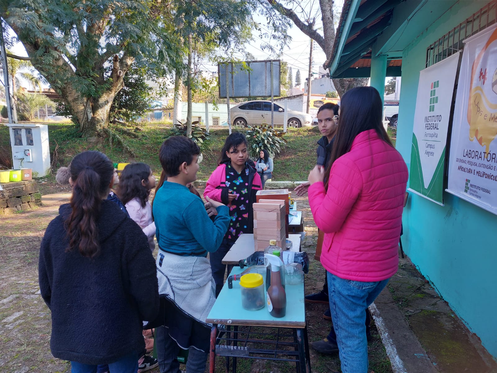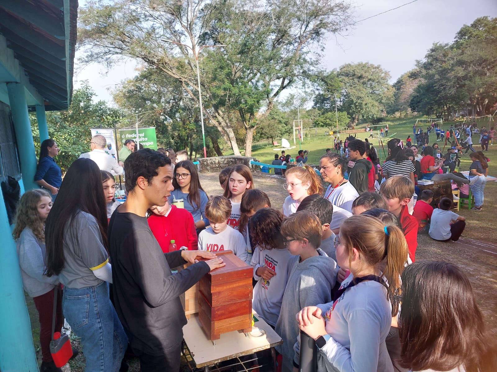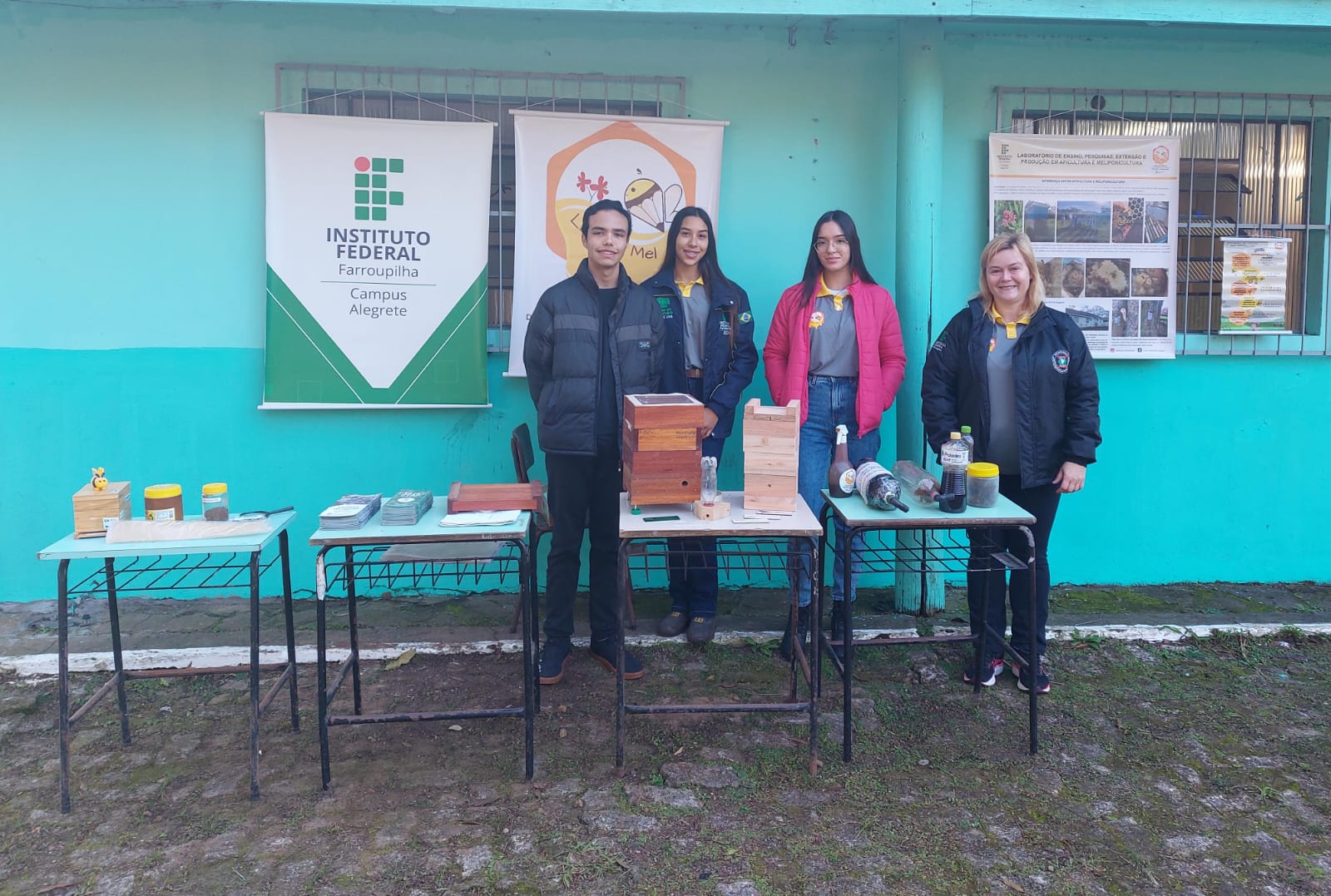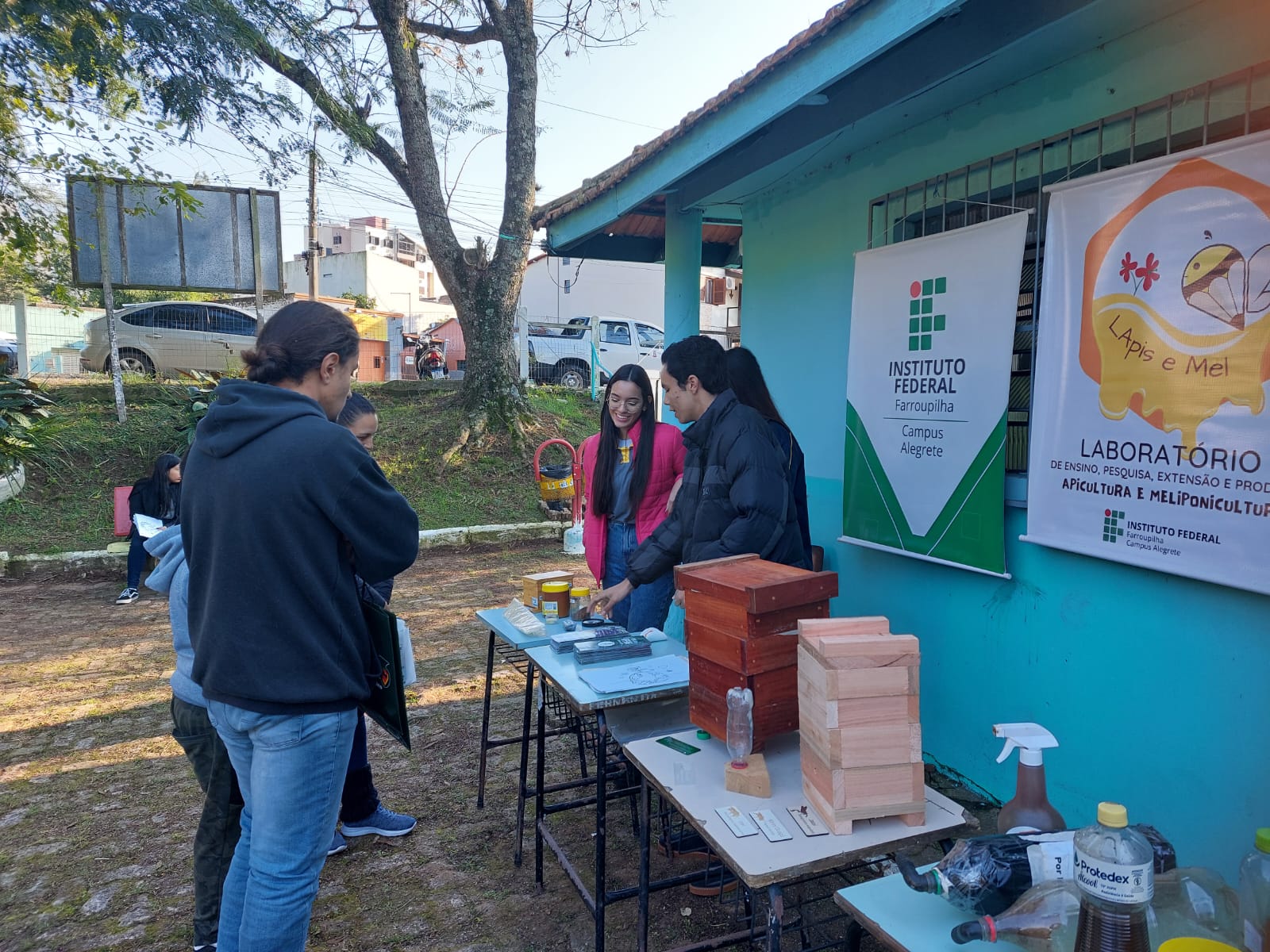 Durante o evento foi possível abordar a importância das abelhas na produção de alimento e no meio ambiente e também divulgar o meliponário do IFFar como espaço de conhecimento para a comunidade. Os estudantes Luy Mendonça e Caroline Santos (Técnico em Agropecuária) e Gabrieli Bianchi (Licenciatura em Ciências Biológicas) juntamente com a professora Renata Porto Alegre Garcia apresentaram materiais e banners sobre Apicultura e Meliponicultura.