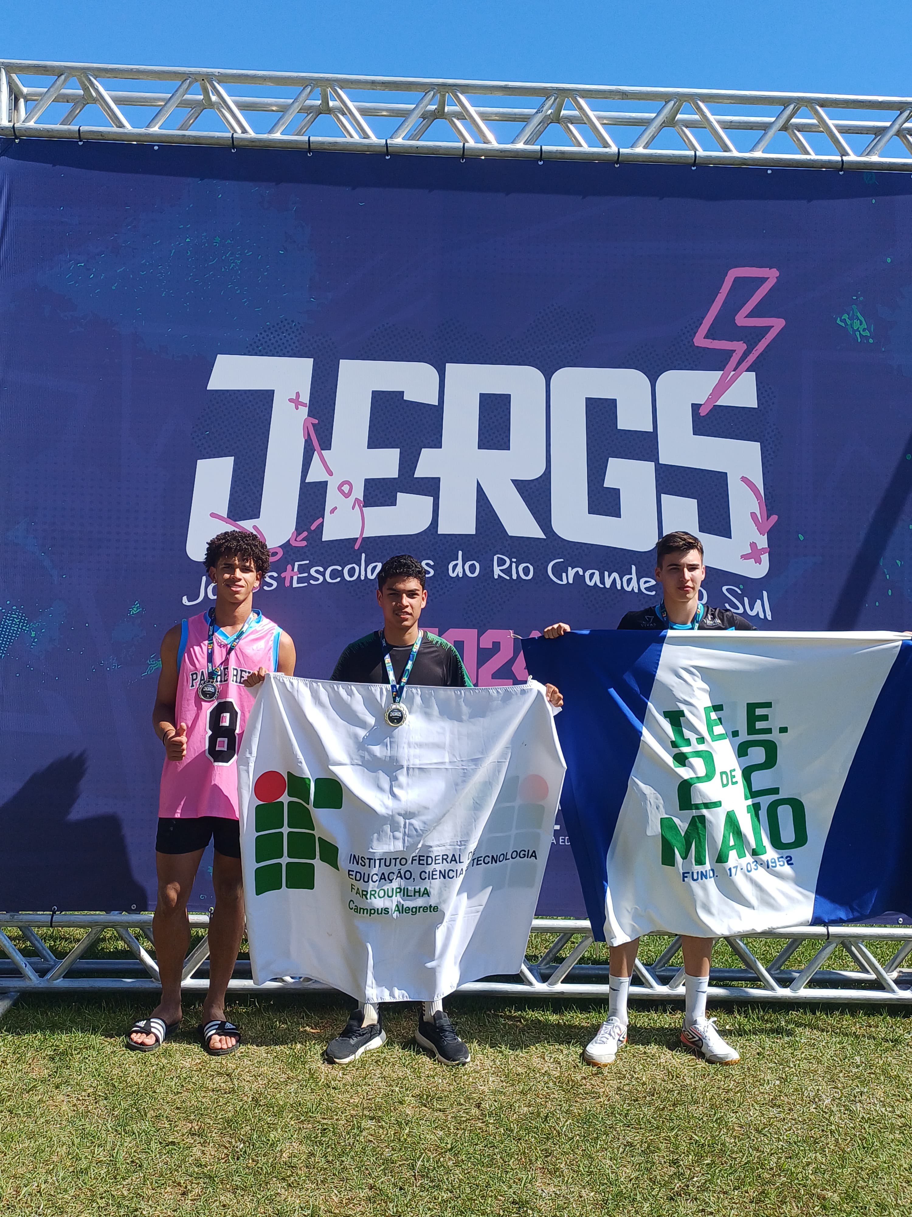 Após a participação nos Jogos Estudantis do IFFar, o estudante Elielson Guedes, do 3º ano do Curso Técnico em Agropecuária, representou o IFFar - Campus Alegrete nos Jogos Escolares do RS, em Porto Alegrete, sagrando-se campeão estadual na modalidade salto triplo, com a marca de 12,15 metros. O aluno foi acompanhado pelo Professor de Educação Física, Jéferson Queiroz.