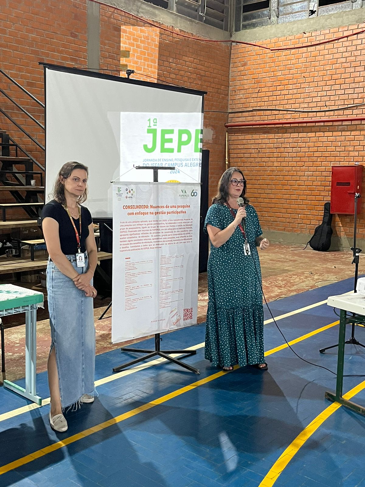 Aconteceu durante a 1ª Jornada de Ensino, Pesquisa e Extensão do IFFar - Campus Alegrete, o lançamento da obra "CONSELHOEDU: Nuances de uma pesquisa com enfoque na gestão participativa", editada pela Arco Editores, e organizada pelas docentes Prof.ª Calinca Jordânia Pergher e Fabrícia Sônego, pertencentes ao Grupo de Estudos em Políticas e Gestão Educacional (GEPGE), do Campus Alegrete.