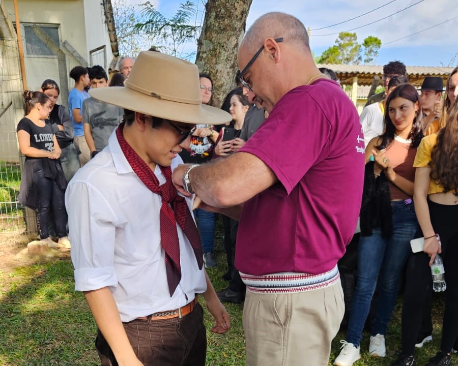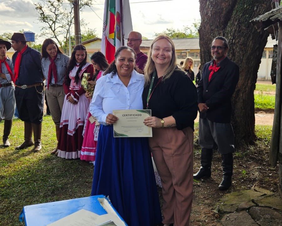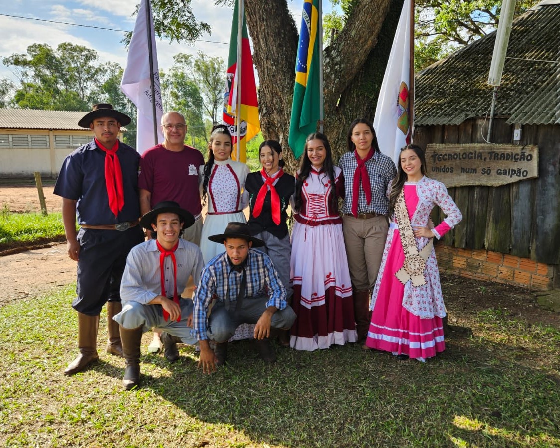 A nova posteira, Milena Chagas, falou em nome da patronagem, destacando o compromisso da equipe com a valorização das tradições gaúchas dentro e fora do ambiente escolar.