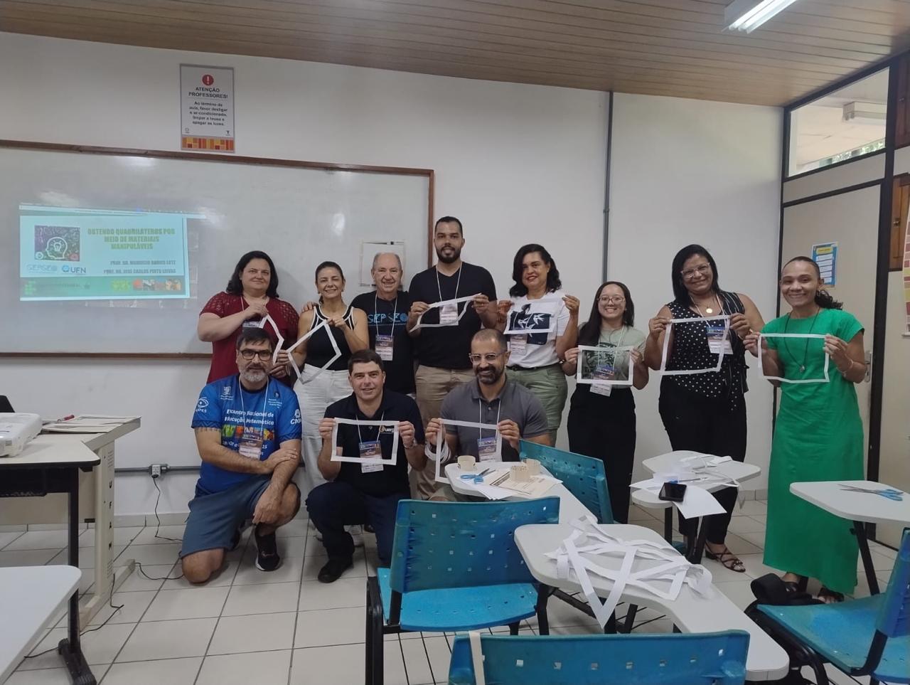 Além das apresentações, os professores também propuseram e ministraram duas oficinas: “Obtendo quadriláteros por meio de materiais manipuláveis” e “Generalizando o Teorema de Pitágoras em um jogo”, em parceria com o professor José Carlos Pinto Leivas, líder do GEPGEO.