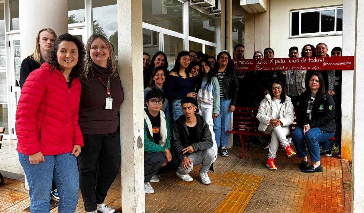 No dia 29 de outubro, o Núcleo de Gênero e Diversidade Sexual (NUGEDIS) do Instituto Federal Farroupilha – Campus Alegrete promoveu a inauguração do Banco Vermelho, em frente ao prédio de salas de aula. O ato simbólico reuniu estudantes, servidores e comunidade acadêmica em um momento de reflexão e compromisso coletivo com o combate à violência contra a mulher.