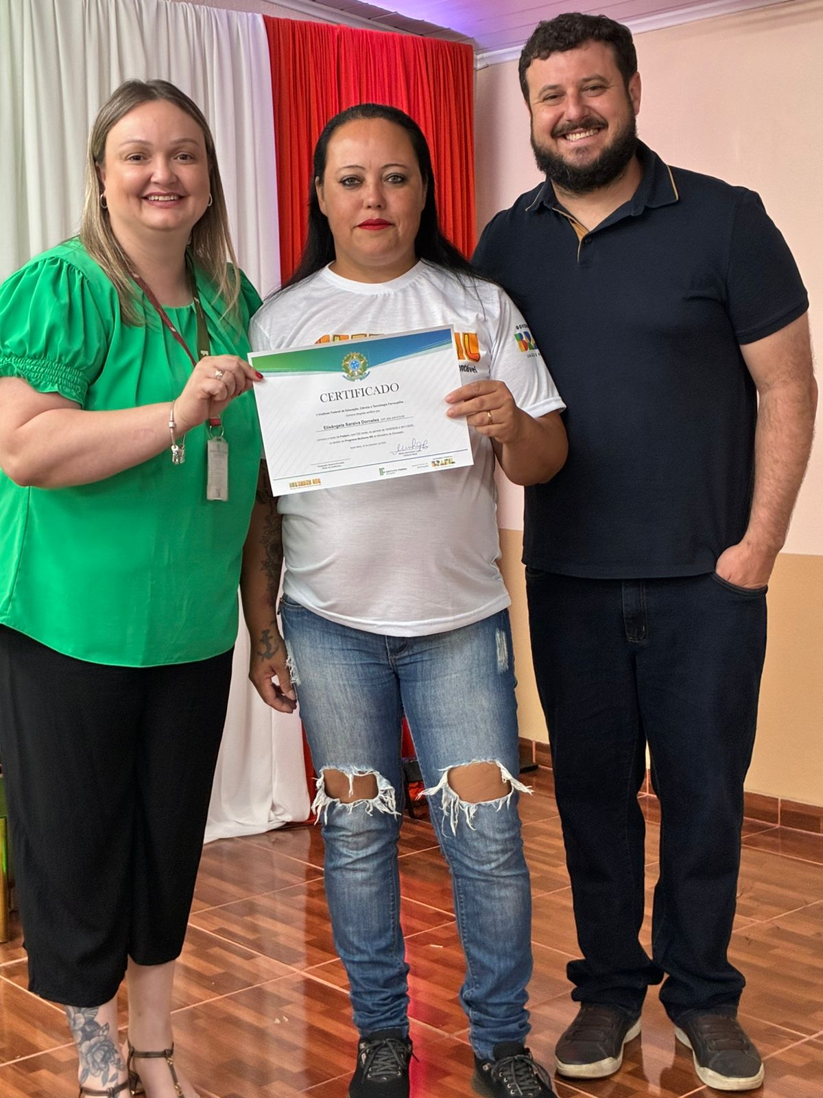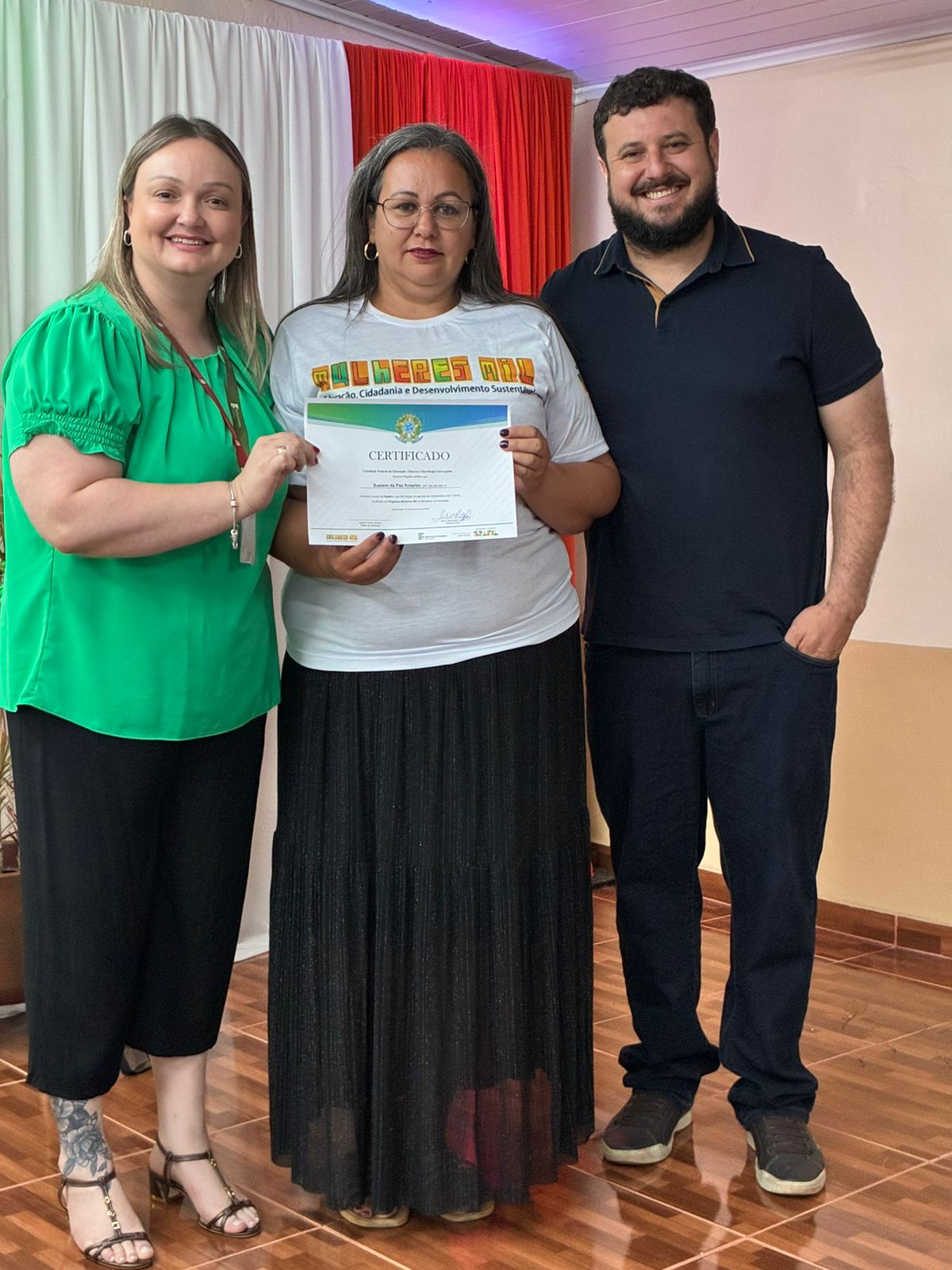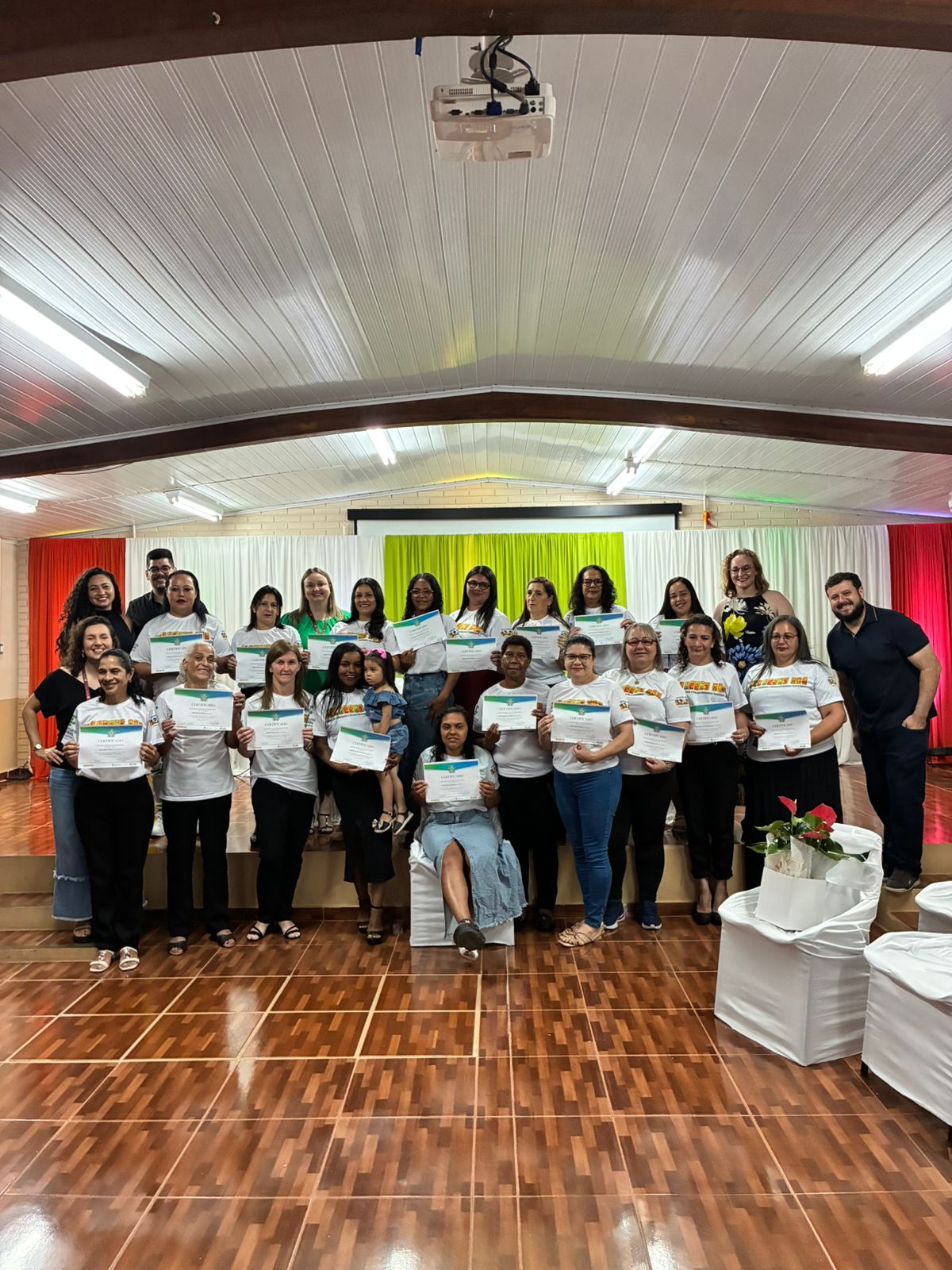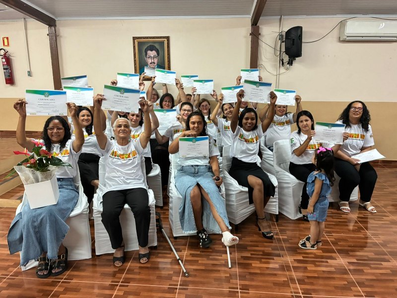A cerimônia de certificação foi realizada no auditório da EEEB Dr. Lauro Dornelles e contou com a presença de familiares das formandas, professores e membros da equipe diretiva do campus. O evento destacou o compromisso do IFFar em ampliar oportunidades de formação profissional e fortalecer iniciativas que impactam diretamente a vida das mulheres do município.