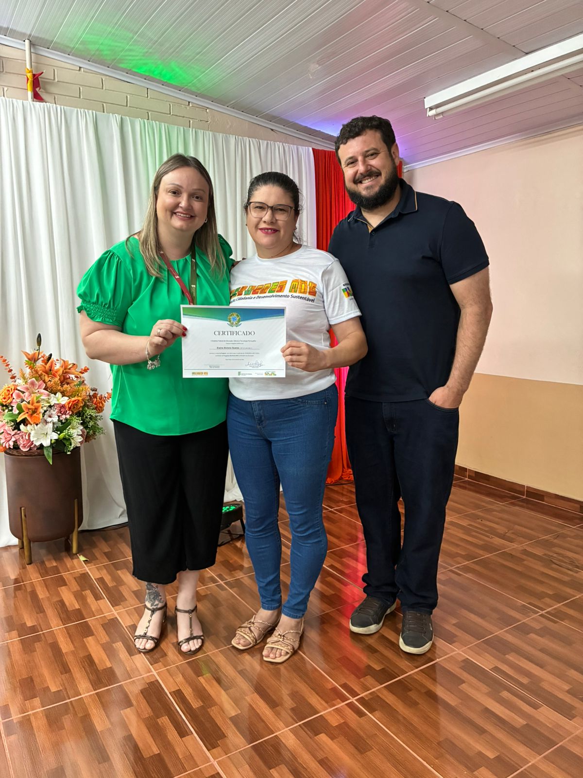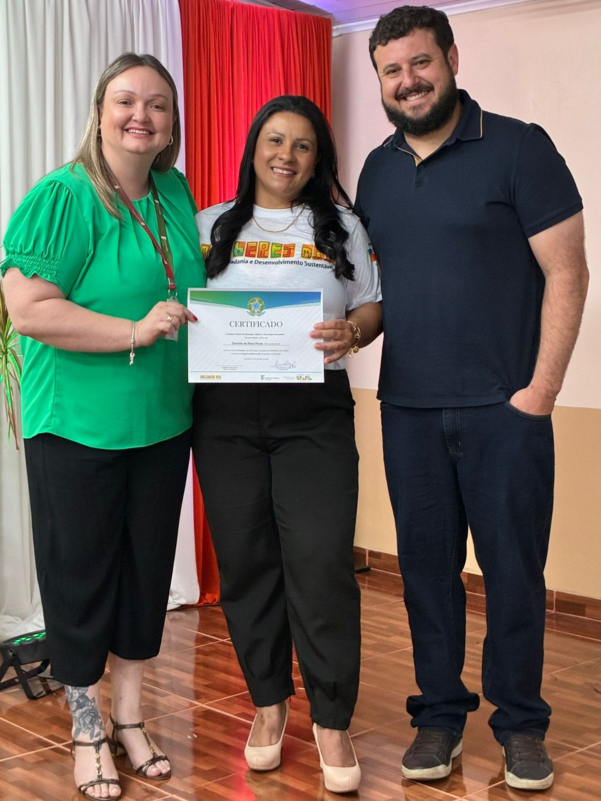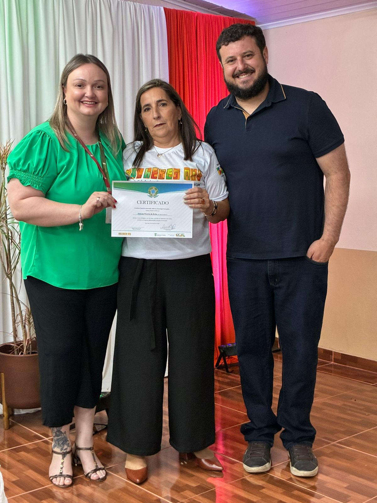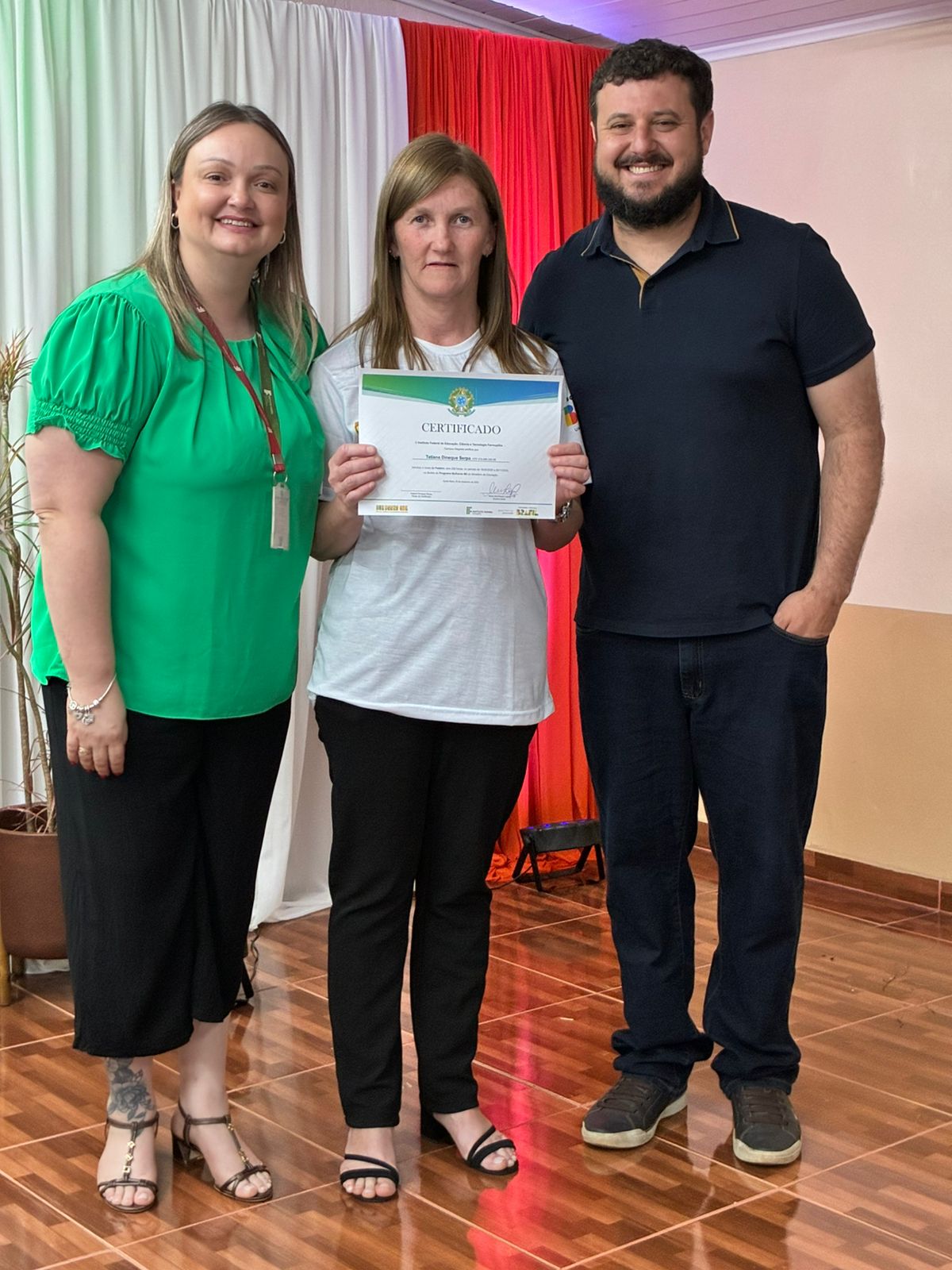 A cerimônia de certificação foi realizada no auditório da EEEB Dr. Lauro Dornelles e contou com a presença de familiares das formandas, professores e membros da equipe diretiva do campus. O evento destacou o compromisso do IFFar em ampliar oportunidades de formação profissional e fortalecer iniciativas que impactam diretamente a vida das mulheres do município.