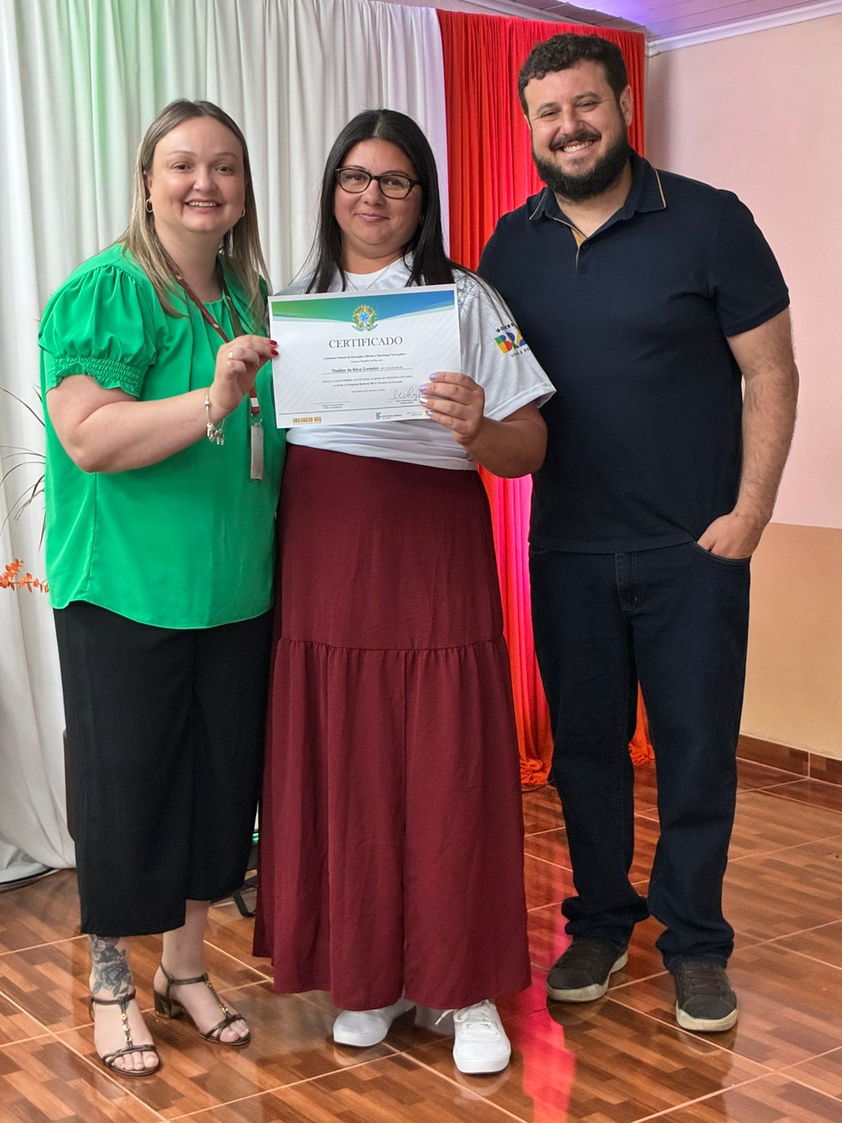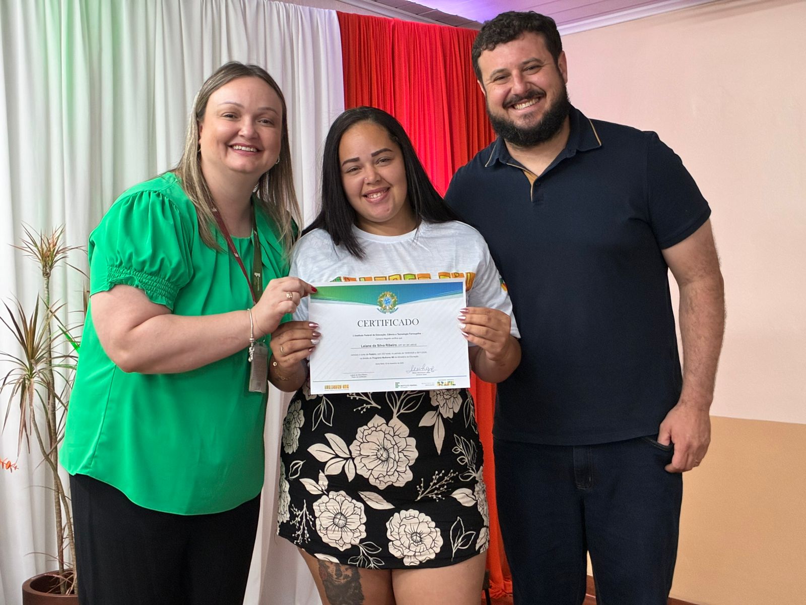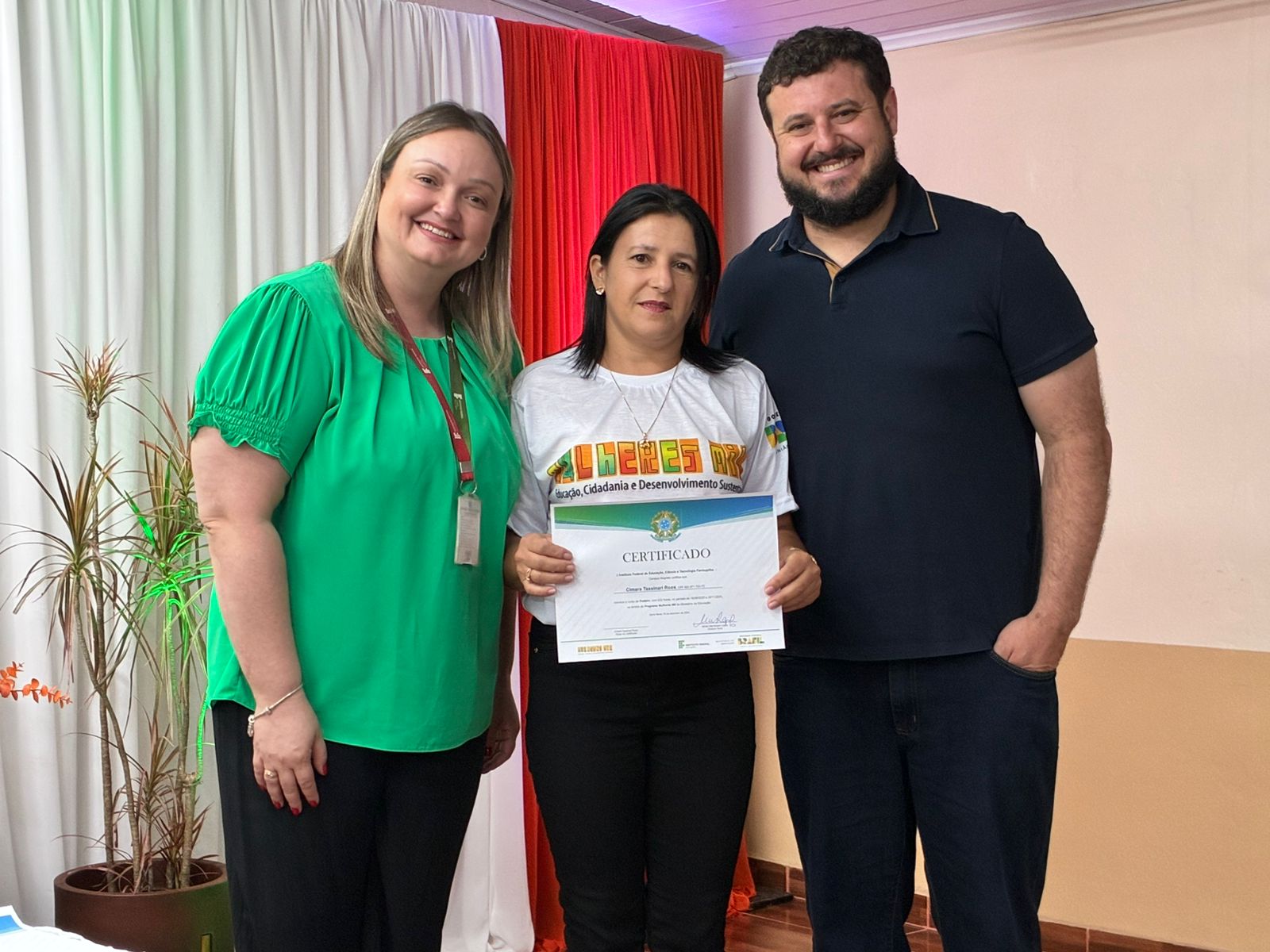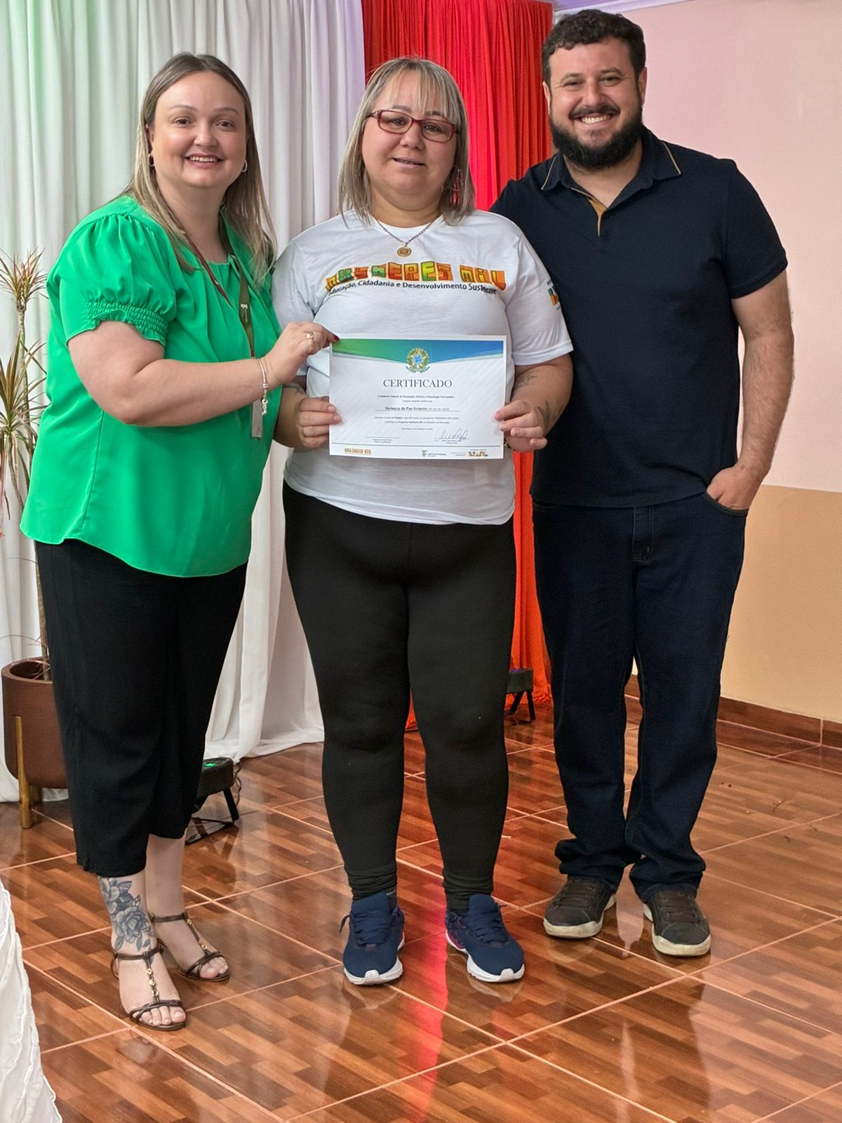 A cerimônia de certificação foi realizada no auditório da EEEB Dr. Lauro Dornelles e contou com a presença de familiares das formandas, professores e membros da equipe diretiva do campus. O evento destacou o compromisso do IFFar em ampliar oportunidades de formação profissional e fortalecer iniciativas que impactam diretamente a vida das mulheres do município.