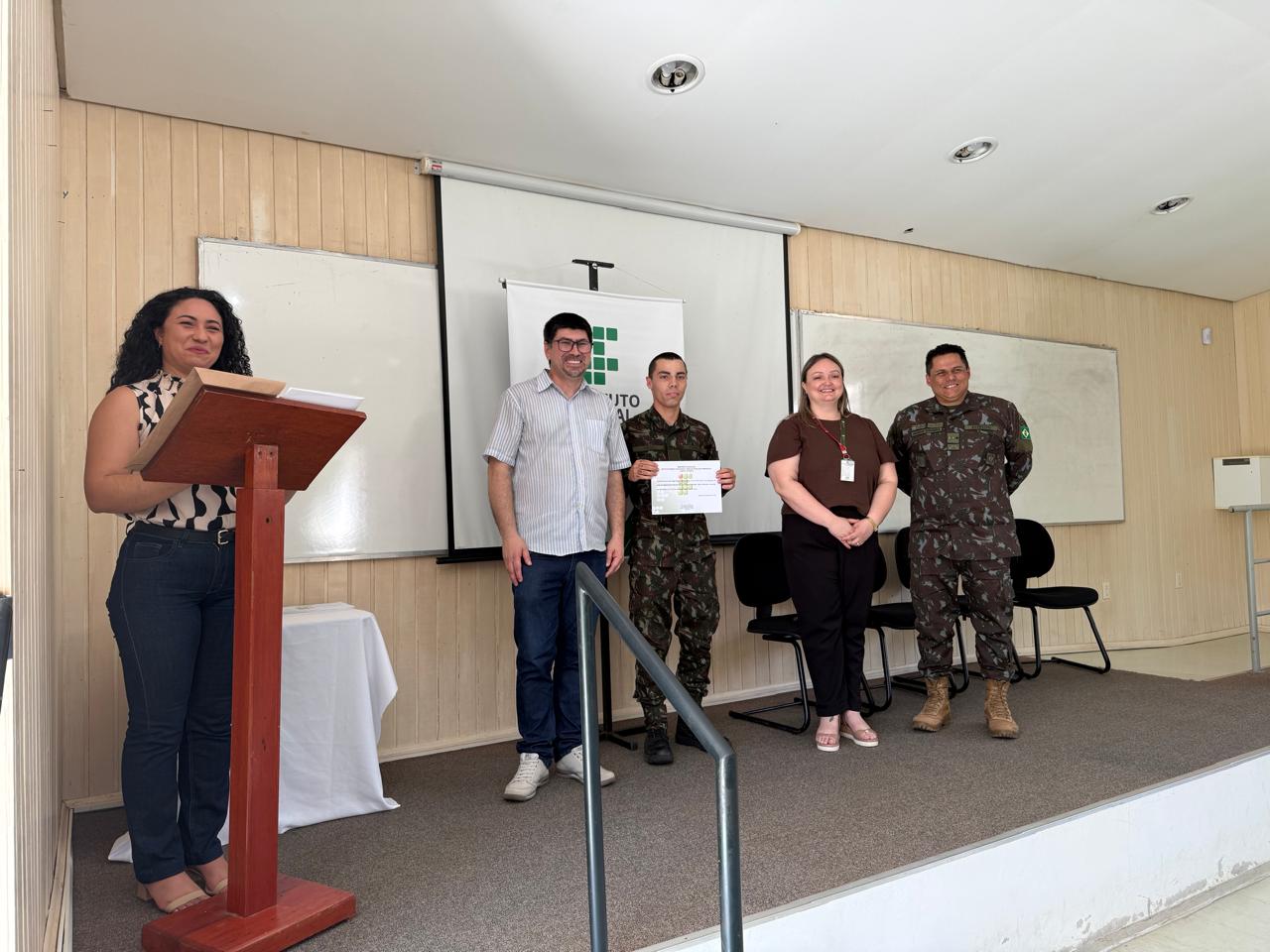 Na quinta-feira, 11 de dezembro, o IFFar – Campus Alegrete certificou 25 militares do efetivo variável do 10º Batalhão Logístico, que concluíram o Curso de Cabeamento Estruturado e Introdução a Redes. A cerimônia foi realizada no auditório da Direção de Pesquisa, Ensino e Extensão do campus.