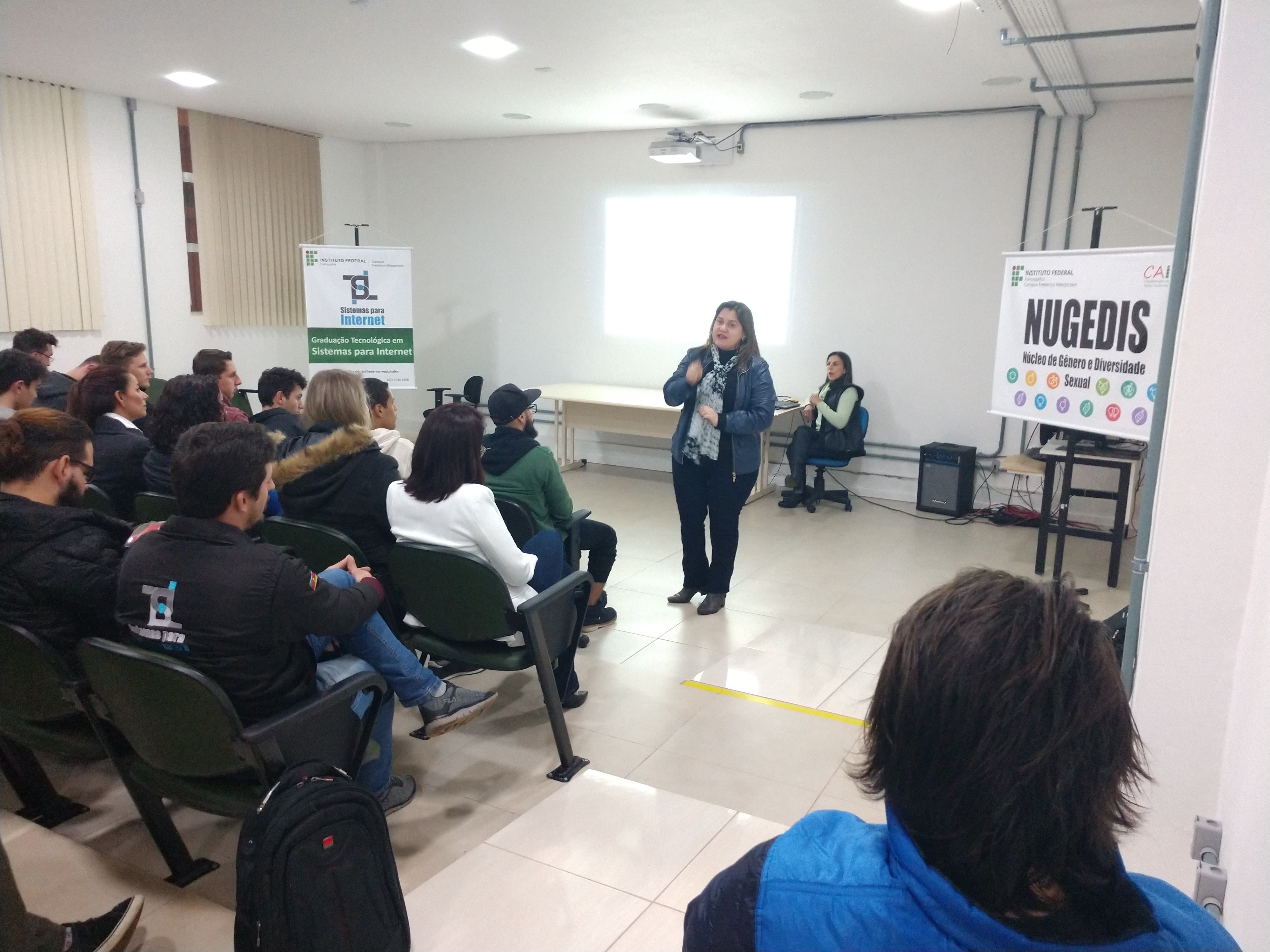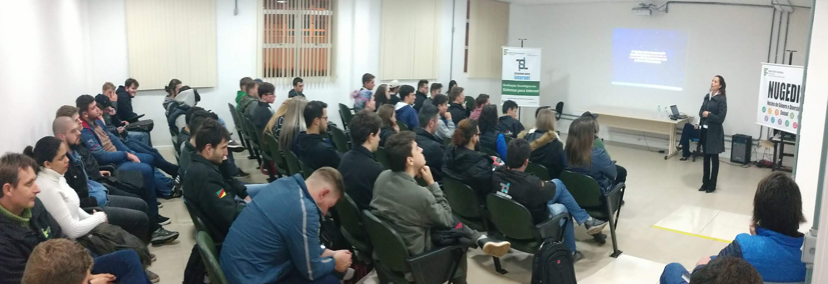 A Coordenação de Ações Inclusivas do Campus Frederico Westphalen (CAI/FW) por meio do Núcleo de Gênero e Diversidade Sexual (Nugedis) e apoio da Coordenação do Curso de Tecnologia em Sistemas para Internet (TSI), promoveram no dia 04 de setembro (terça) um painel sobre a presença feminina na área da tecnologia. Para desenvolver o tema foi convidada a sócia-proprietária da empresa Tchê Turbo, Sônia Mara Cenedese Bastian, e a professora de Geografia Elis Botton - integrante do Nugedis - para falar acerca do que é o Nugedis, seu papel na instituição bem como abordar o assunto assédio no ambiente laboral e acadêmico e que instâncias devem ser procuradas para auxílio. O público-alvo da atividade foram as/os estudantes do TSI e docentes do curso.