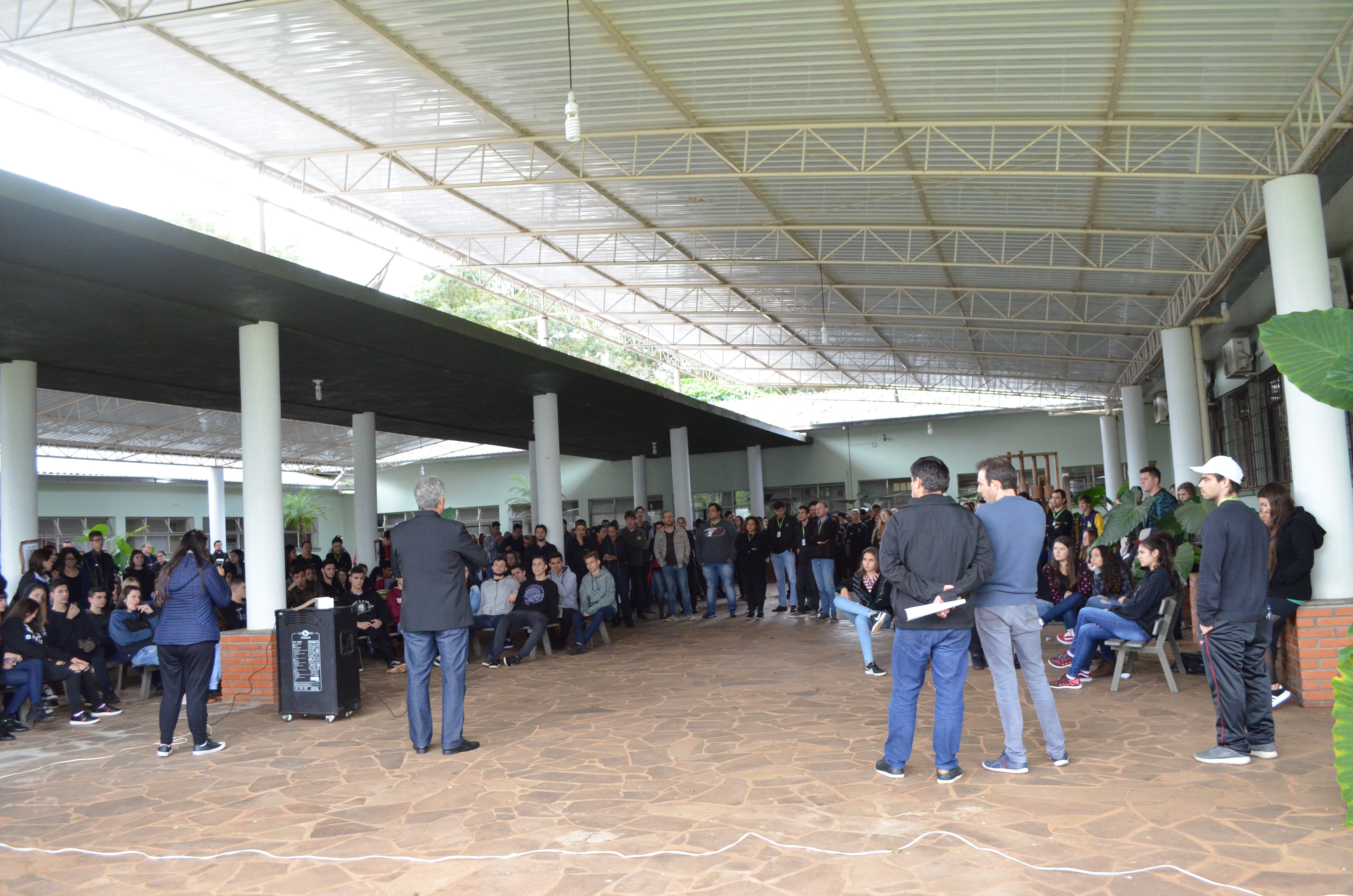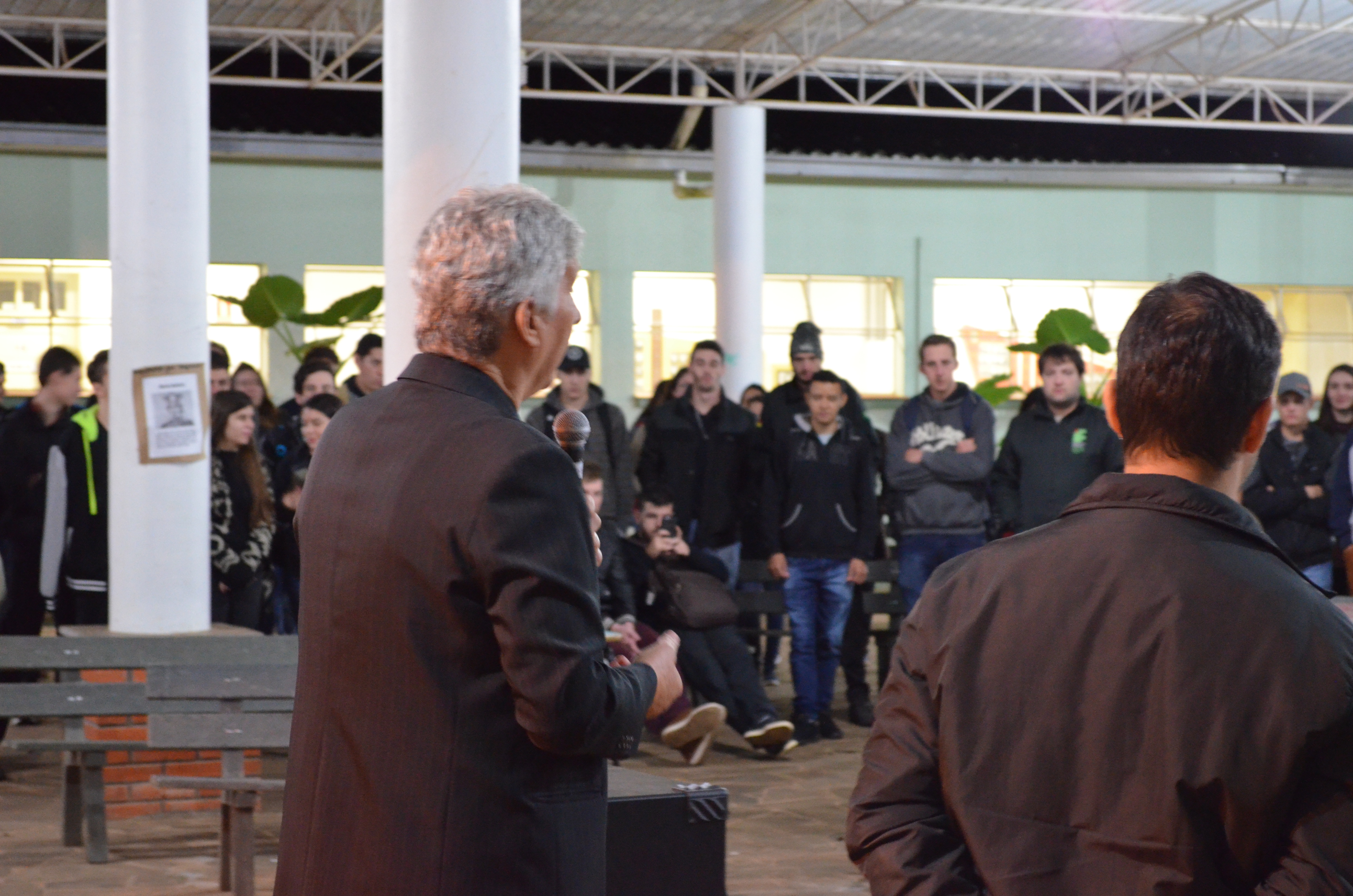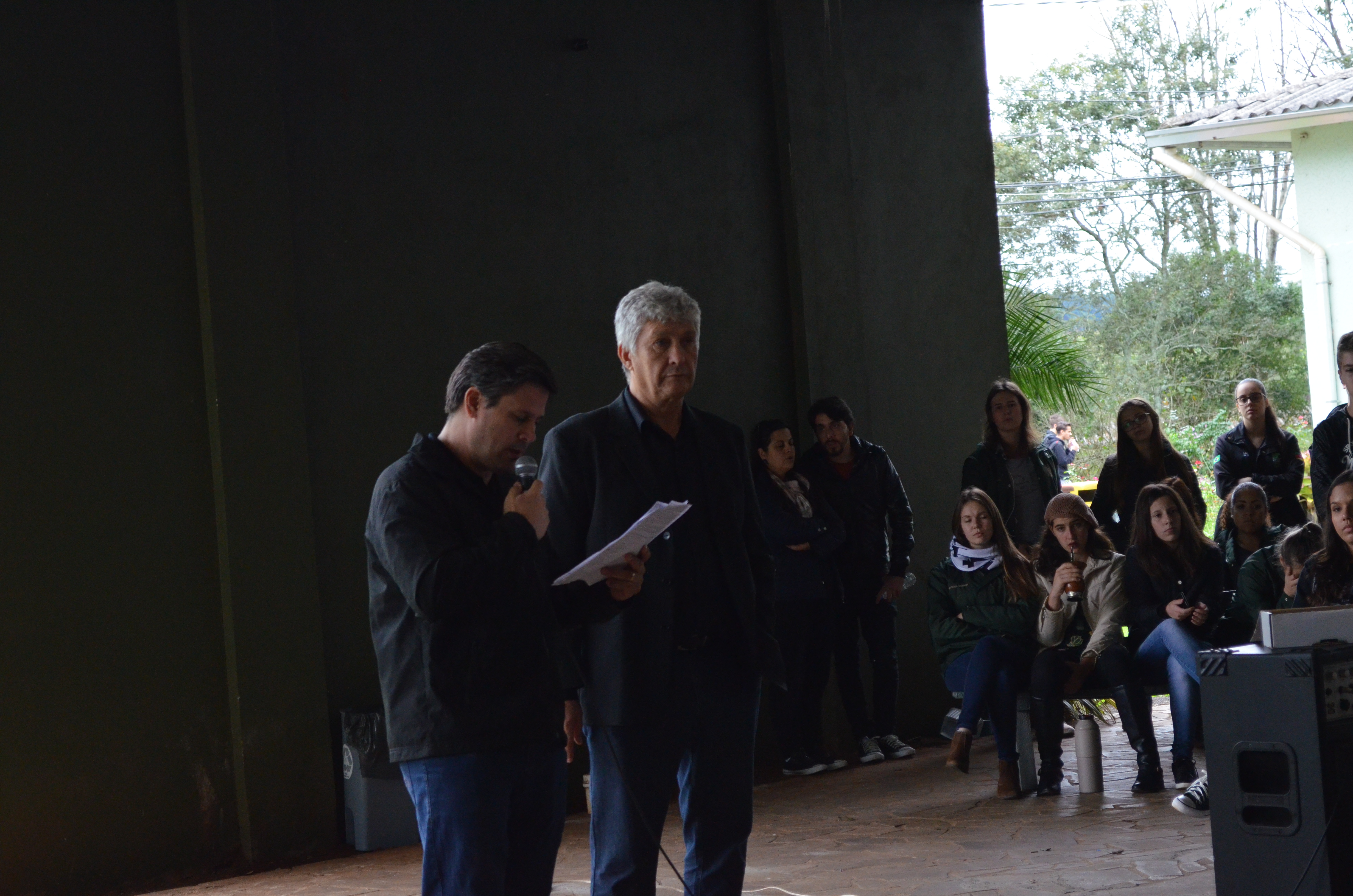 O Diretor Geral do Campus Carlos Guilherme Trombetta abriu o espaço citando a importância do Ato e que esse abraço fortaleça e incentive a todos, como instituição a buscar pelos direitos a educação gratuita e de qualidade e mostrar aos políticos e sociedade em geral a importância das ações desenvolvidadas. No IFFar este bloqueio corresponde a 41, 94% nas despesas de custeio.