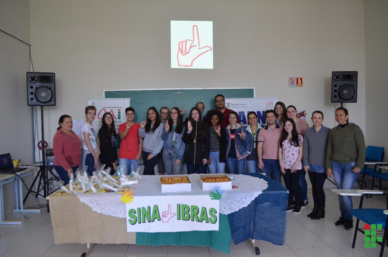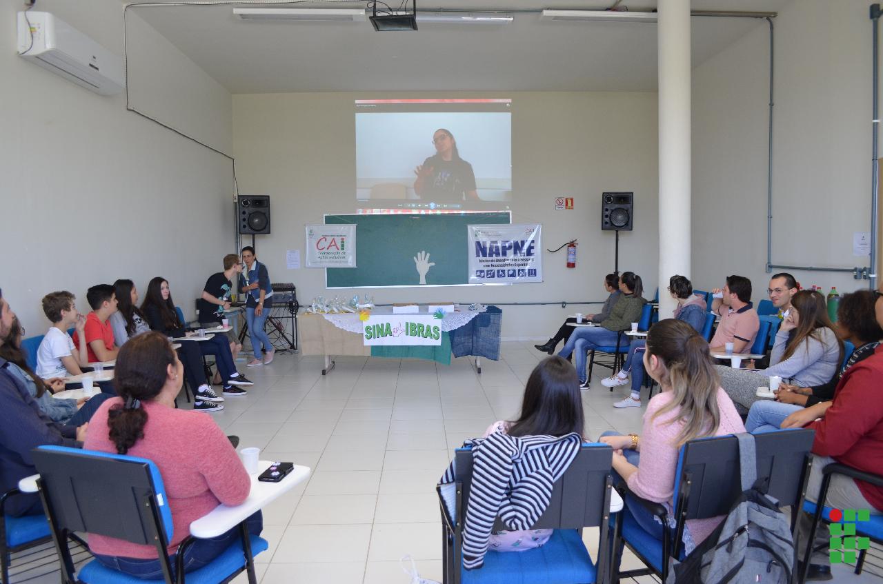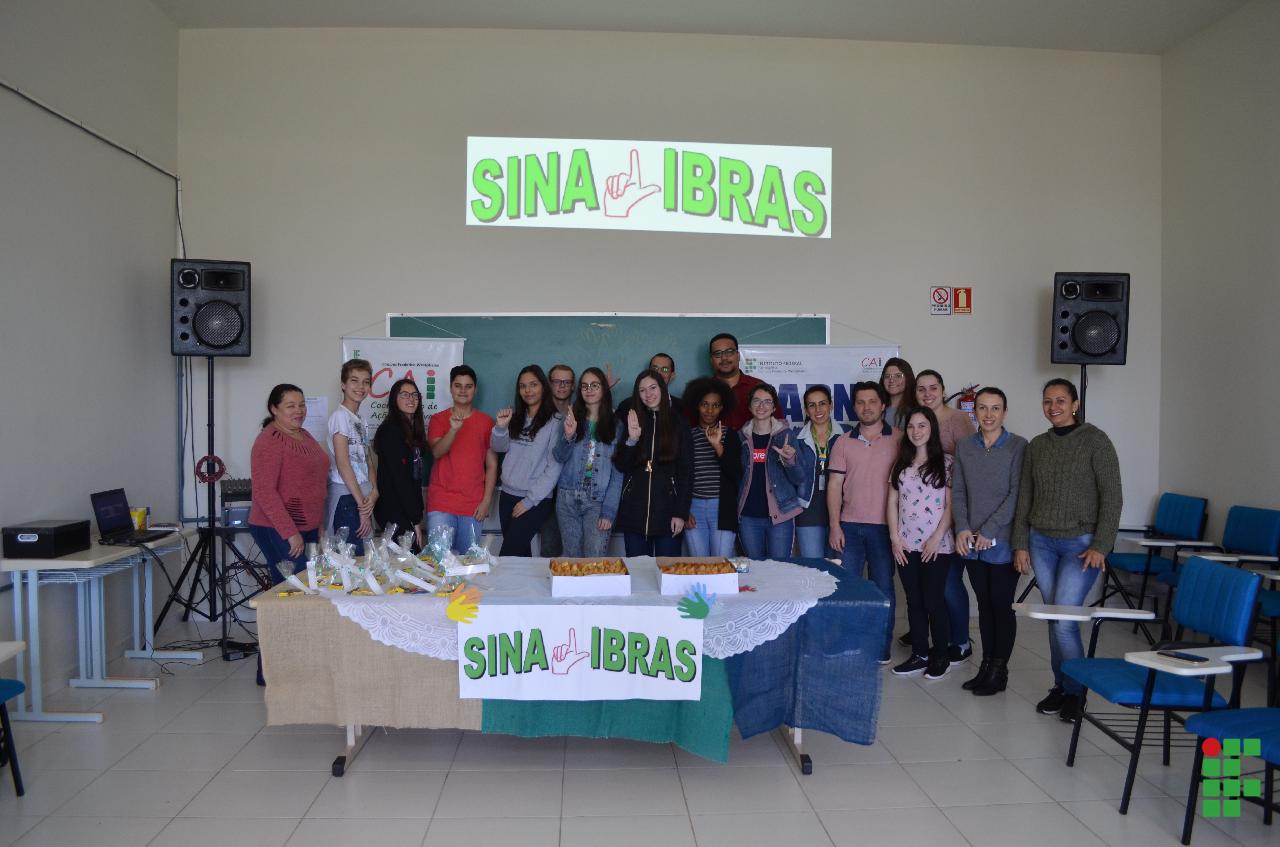 Propiciar o conhecimento e a qualificação de estudantes e servidoras/es do IFFar Campus Frederico Westphalen, em relação à Língua Brasileira de Sinais (Libras) constituiu o principal objetivo do Projeto de Ensino SinaLibras – 2ª Edição: Curso Básico de Libras no IFFar Campus Frederico Westphalen. O Projeto foi coordenado pela Docente de Educação Especial e Coordenadora de Ações Inclusivas do Campus, Graciela Fagundes Rodrigues e ministrado pelas intérpretes Angela Padilha e Angéliza Pozzer com a colaboração da acadêmica surda do Curso de Medicina Veterinária Karine Teixeira.
