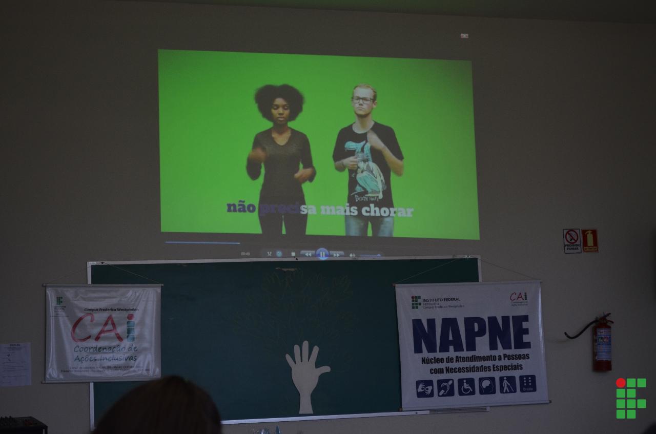 Como trabalho final do curso, as/os participantes produziram um vídeo com a interpretação, em Libras, de uma música. As sete produções foram exibidas para o grupo no encerramento do curso e serão apresentadas às/aos demais estudantes e servidoras/es do Campus no dia Nacional do Surdo comemorado em 26 de setembro.
