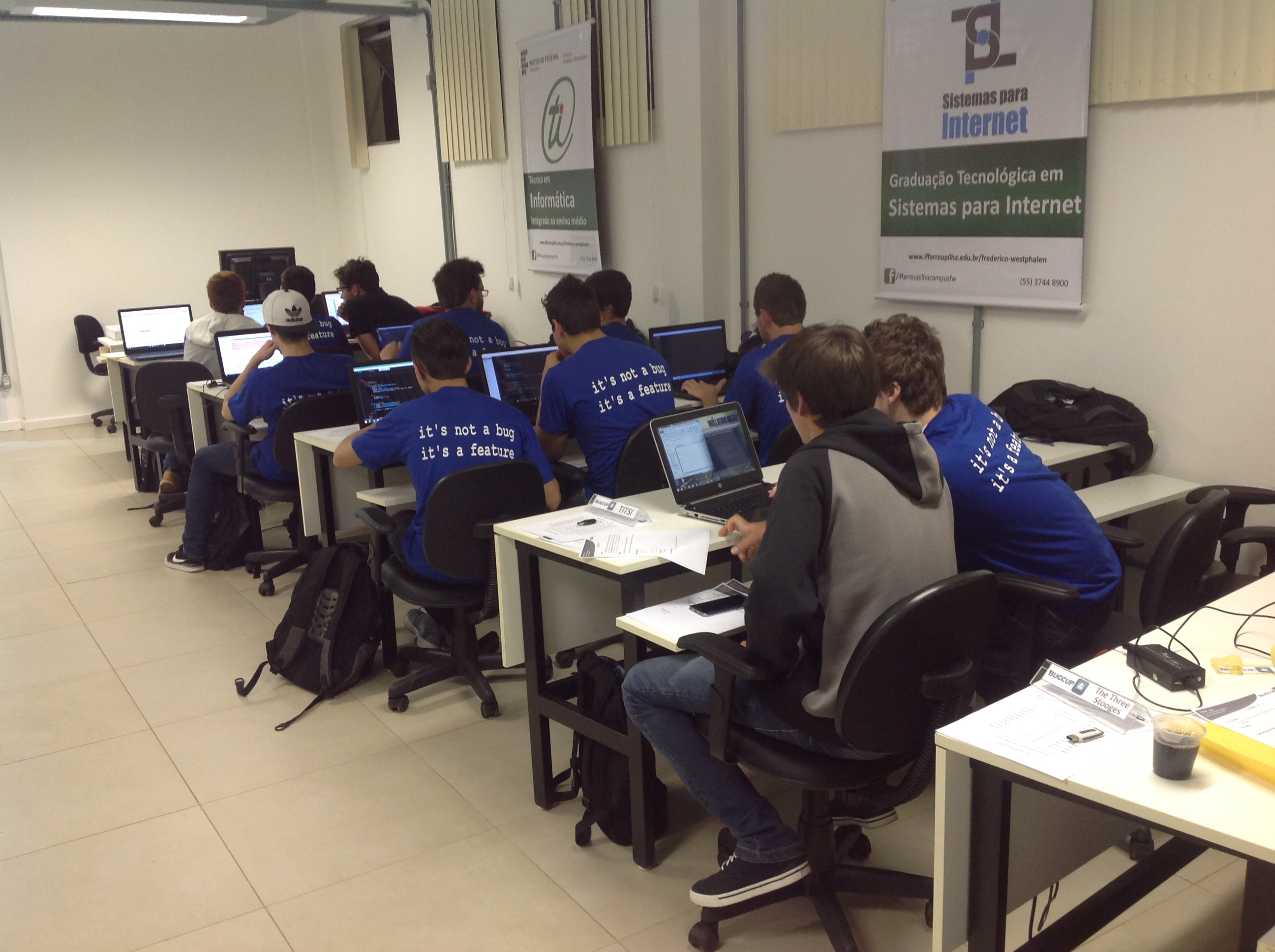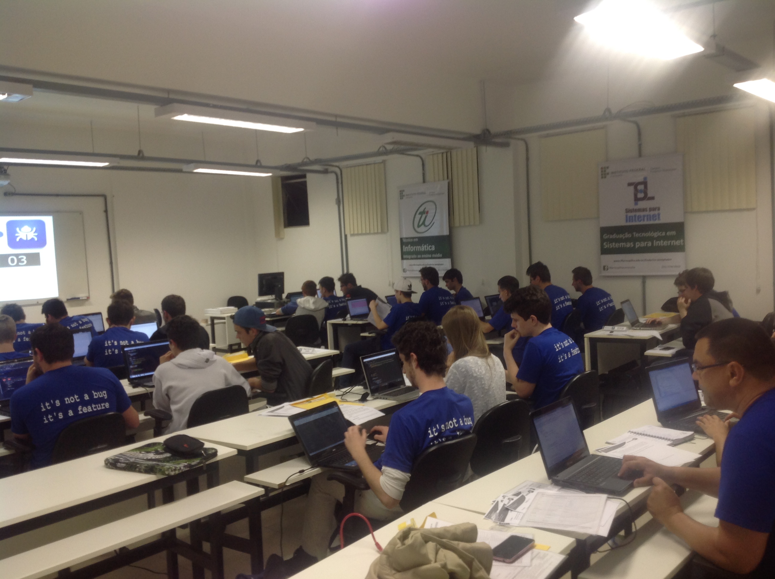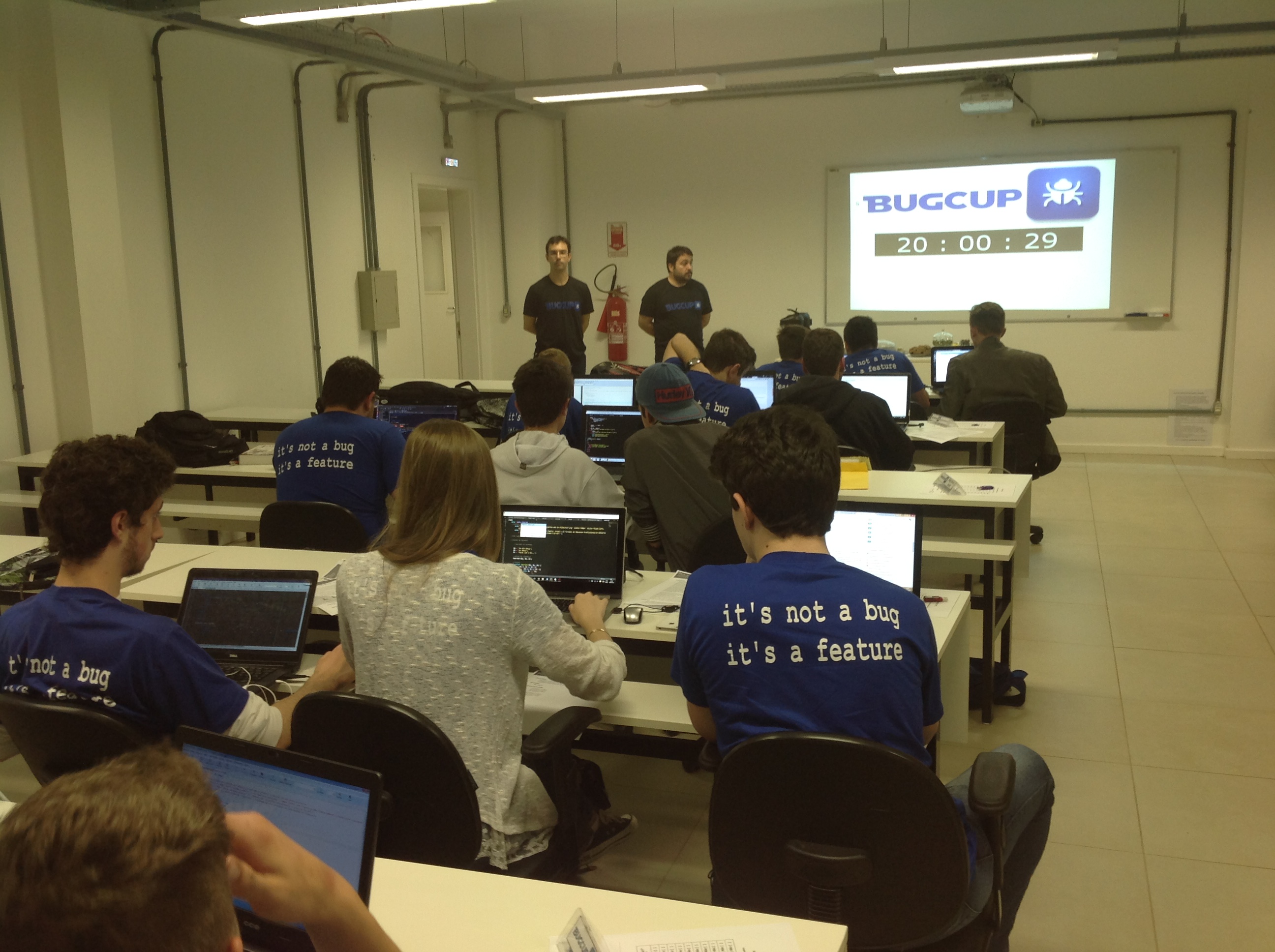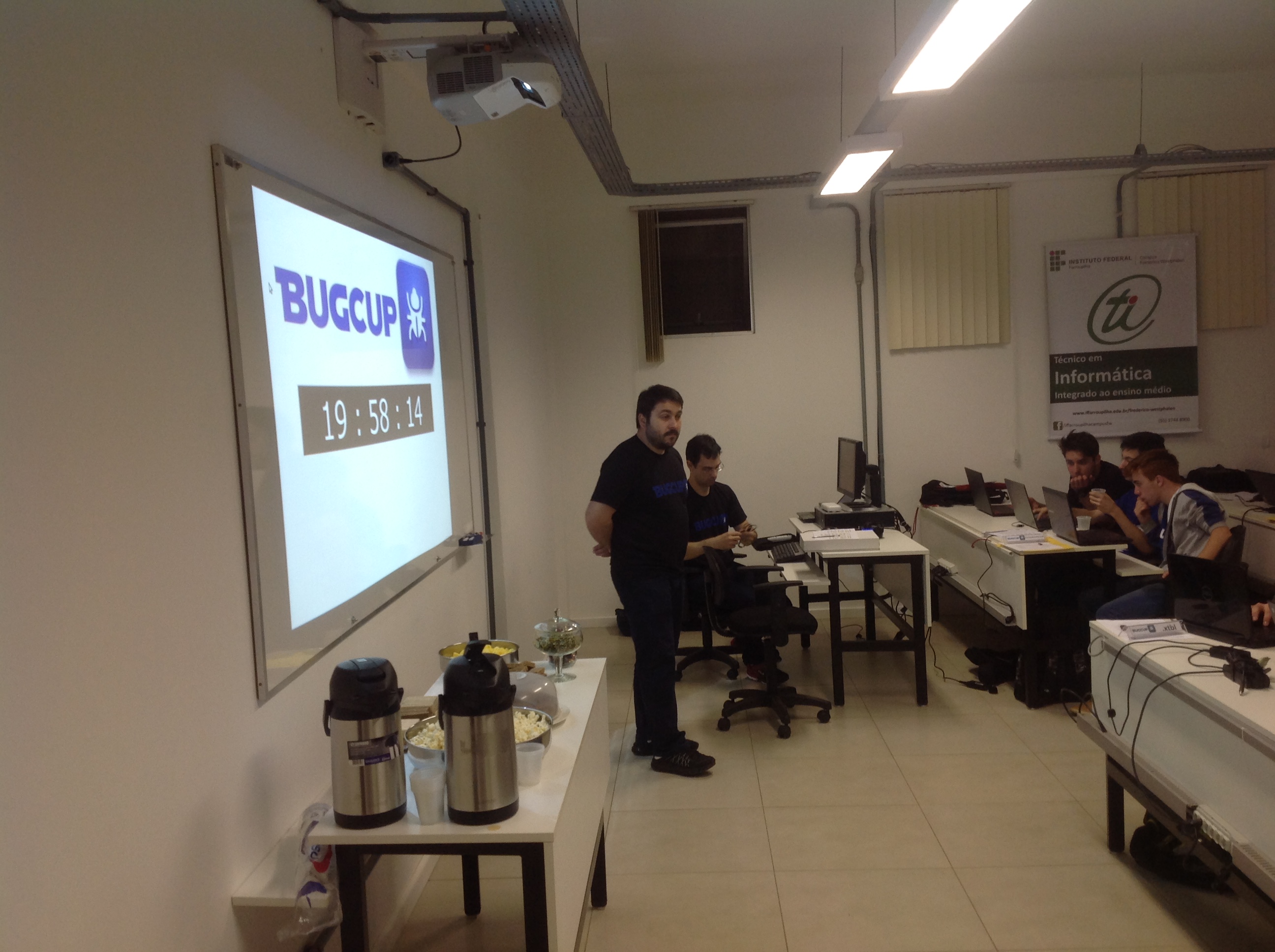 Participaram do torneio 10 equipes mistas formadas por alunos do Curso Técnico em Informática (integrado ao Ensino Médio) e do Curso de Graduação em Sistemas para Internet. A ideia do torneio é promover a integração entre os alunos que durante 3 horas se dedicaram a resolver problemas de programação em códigos “bugados”. O termo “bug” (inseto) é utilizado para se referir a problemas nos programas de computador e remete aos primeiros computadores onde a presença de insetos nas enormes máquinas de calcular eram uma constante dor de cabeça. Os professores e profissionais da área de Tecnologia da Informação também estiveram reunidos para avaliar a complexidade dos problemas utilizados na competição.