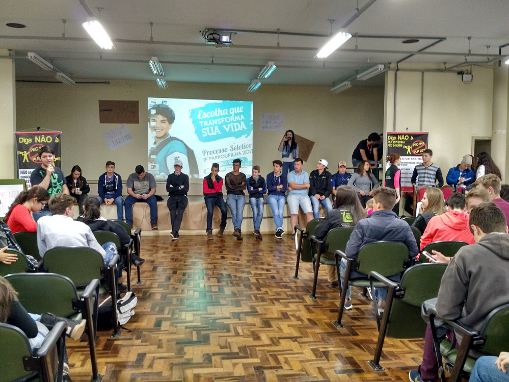"Nós não deixaremos isso acontecer, precisamos e temos direitos à saúde, educação e assistência social. Estamos ocupando o IFFar, fazendo cartazes, enviando e-mail para os deputados, lendo sobre a medida provisória que retira do currículo as disciplinas de Artes, Filosofia, sociologia, Educação Física... mobilizados para não permitir a aprovação da PEC 241", destacam os alunos representantes do movimento estudantil.