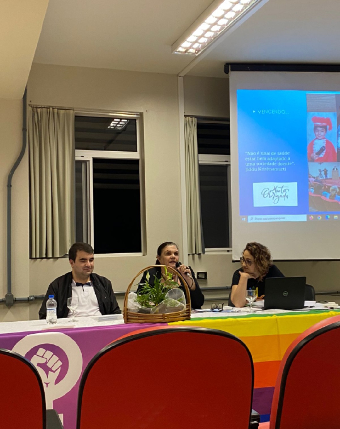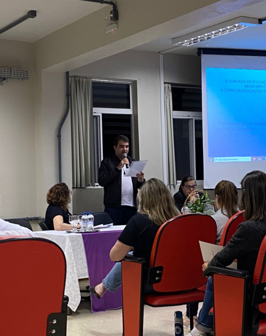A professora foi responsável por ministrar a Palestra intitulada Autismo: contexto, inclusão e desafios na fala de pessoa com TEA e familiares.