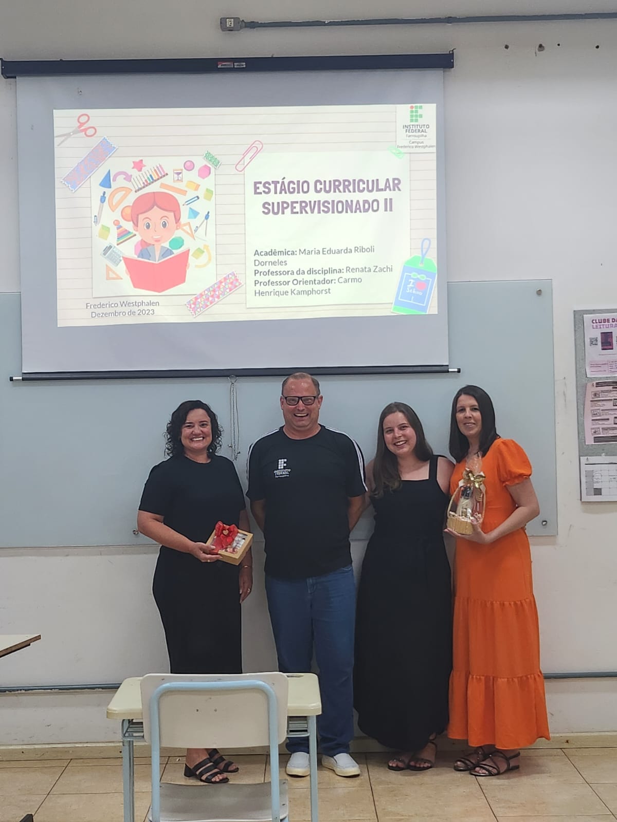 Nas noites de 13 e 14 de dezembro, o curso de Licenciatura em Matemática do IFFar - Campus Frederico Westphalen realizou a apresentação dos relatórios das disciplinas de Estágio Supervisionado II e IV. Este é um dos momentos centrais do curso, no qual os estudantes têm a oportunidade de compartilhar com os colegas e docentes suas experiências iniciais na docência nos ensinos fundamental e médio.