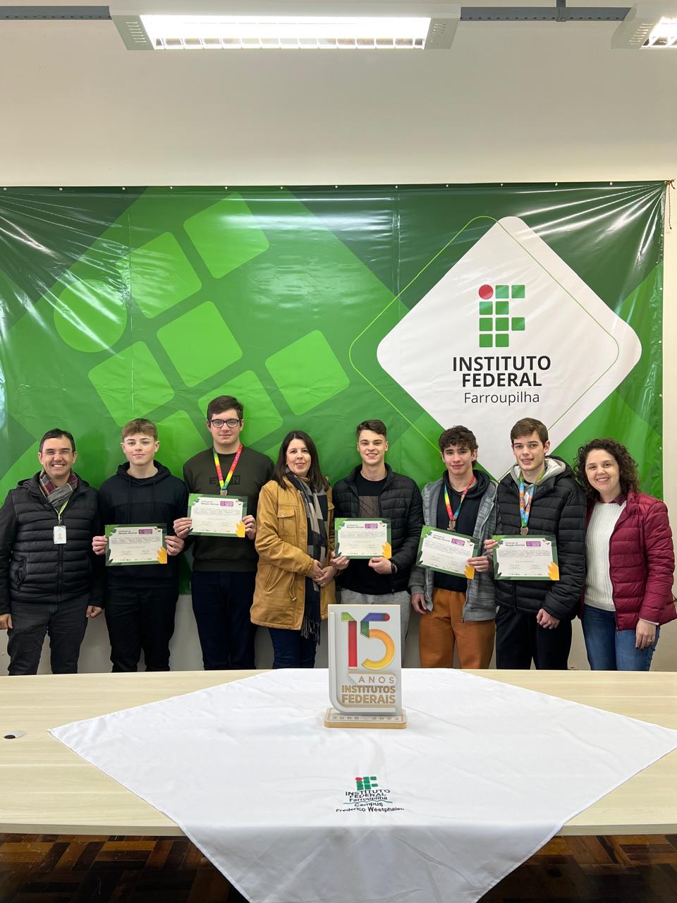 Na ocasião, foram entregues 5 certificados de Menção Honrosa e 3 Medalhas de Bronze Regionais aos seguintes estudantes dos Cursos Técnicos Integrados ao Ensino Médio: