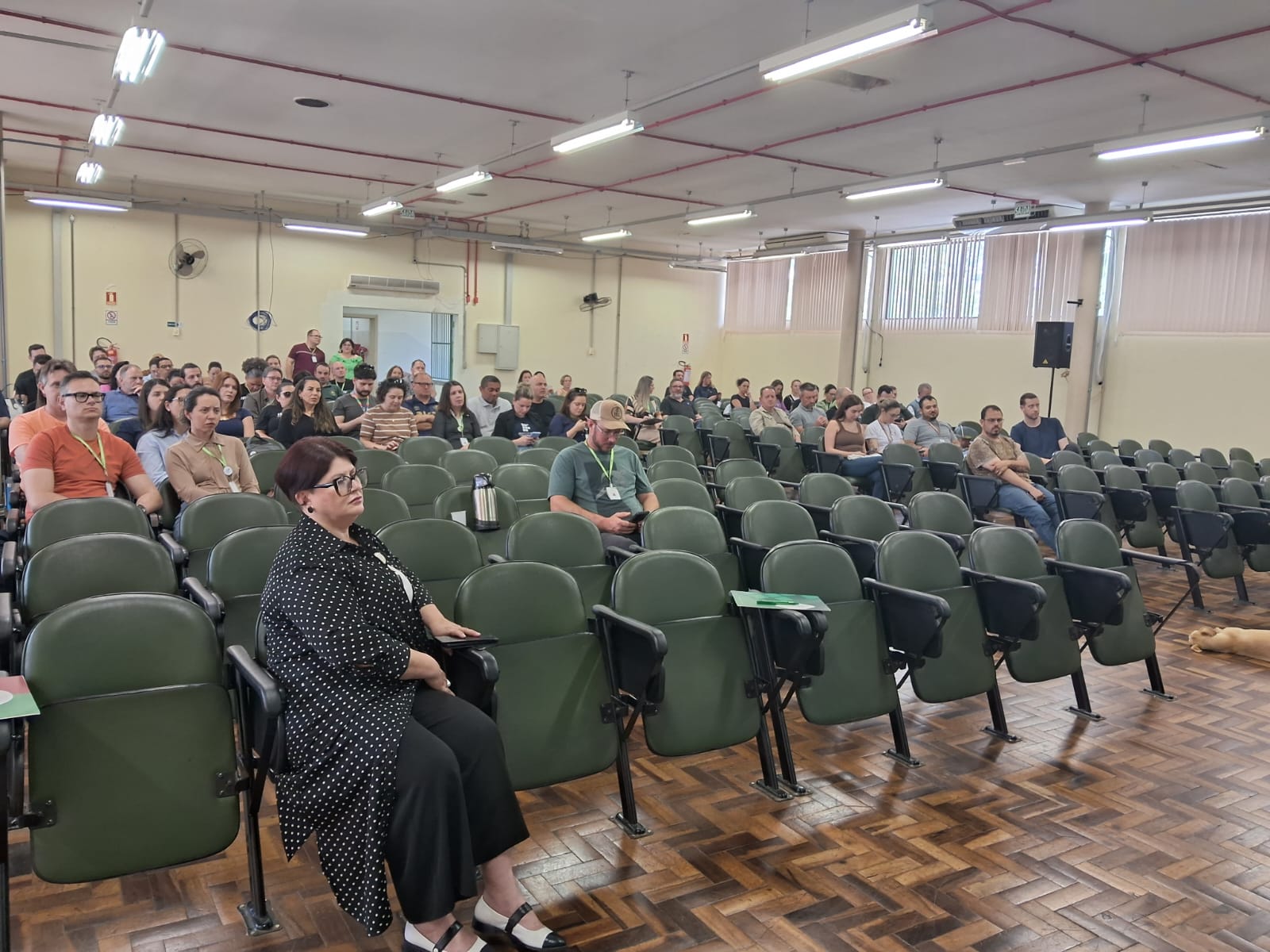 A atividade contou com a presença da psicóloga Cláudia Reis Flores, que abordou o tema “Saúde no trabalho e a cultura pós-moderna”. Durante a fala, a profissional destacou a importância do equilíbrio emocional e das práticas de autocuidado no contexto profissional, ressaltando os desafios e impactos da cultura contemporânea nas relações de trabalho e na saúde mental dos servidores públicos.