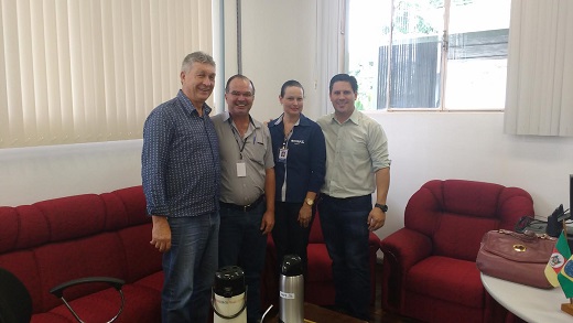 Na manhã de quarta-feira, 05, o Diretor Geral do Instituto Federal Farroupilha - Campus Frederico Westphalen Carlos Guilherme Trombetta e o Diretor de Planejamento e Desenvolvimento Institucional Deivid Guareschi Fagundes receberam a visita do Gerente Adjunto da Emater/RS-Ascar de Frederico Westphalen Mario Antônio Coelho da Silva e da Coordenadora da Unidade de Cooperativismo Márcia Faccin. A reunião teve como objetivo estreitar os laços e encaminhar parcerias entre as instituições.