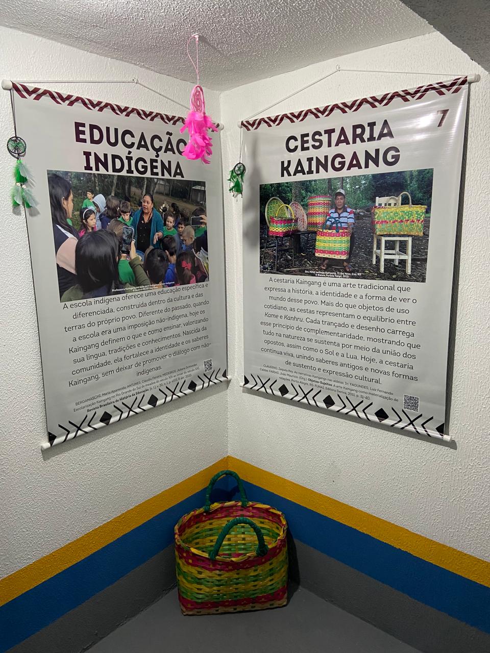 O projeto de extensão Museu itinerante de arte e cultura Kaingang, desenvolvido pelo Instituto Federal Farroupilha – Campus Frederico Westphalen, continua avançando pela cidade. Na manhã de hoje, sexta- feira, 28/11, o museu migrou da Escola Estadual de Ensino Fundamental Afonso Pena para o SESC Frederico Westphalen, onde foi acolhido pela equipe de cultura da unidade. As agentes de programas sociais Francini Trindade e Maitê Tieppo acolheram a exposição e acompanharam sua instalação no espaço cultural do SESC. A mostra permanece no local até o final da próxima semana, aberta à visitação do público. Composta por pôsteres informativos sobre a cultura Kaingang e objetos produzidos por artesãos indígenas, a exposição busca ampliar o diálogo intercultural e oferecer à comunidade novas oportunidades de aprendizagem e contato com o patrimônio cultural Kaingang. A presença do museu no SESC Frederico Westphalen reforça a parceria entre a Instituição e o IFFar – Campus Frederico Westphalen, especialmente por meio do Núcleo de Arte e Cultura (NAC) e do Núcleo de Estudos Afro-Brasileiros e Indígenas (NEABI). Essa colaboração já rendeu importantes ações conjuntas, como as ações realizadas em 2024 na praça central da cidade, em homenagem ao Dia da Consciência Negra, então recém instituído como feriado nacional pela Presidência da República. A comunidade regional está convidada a prestigiar a exposição no SESC Frederico Westphalen e conhecer de perto a riqueza, a história e a expressão artística do povo Kaingang. A visitação é gratuita, e todas as pessoas são bem-vindas.
