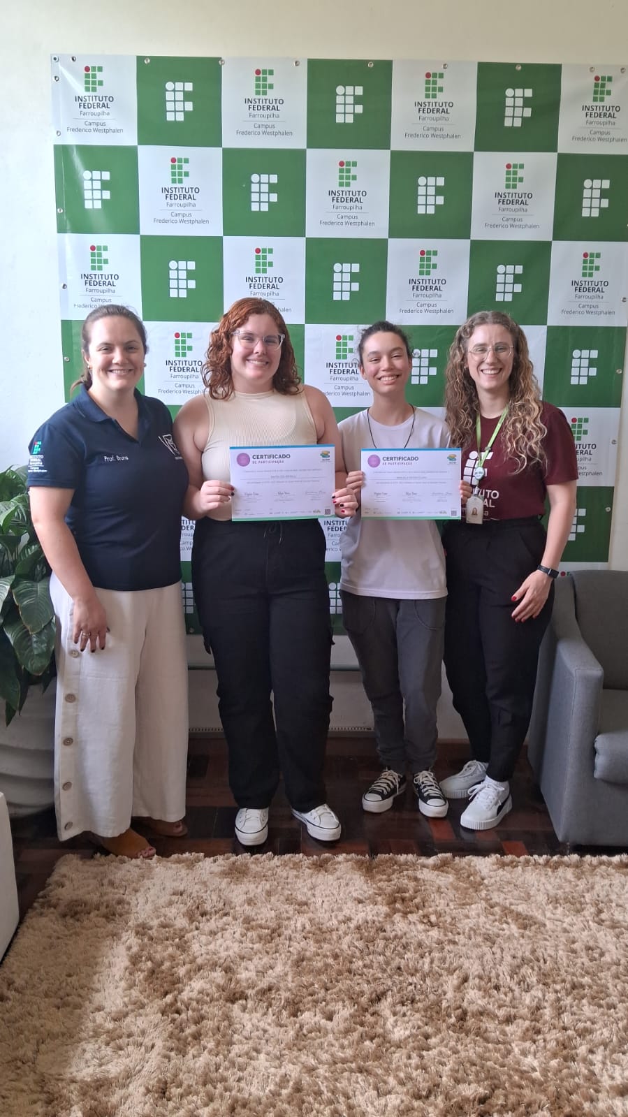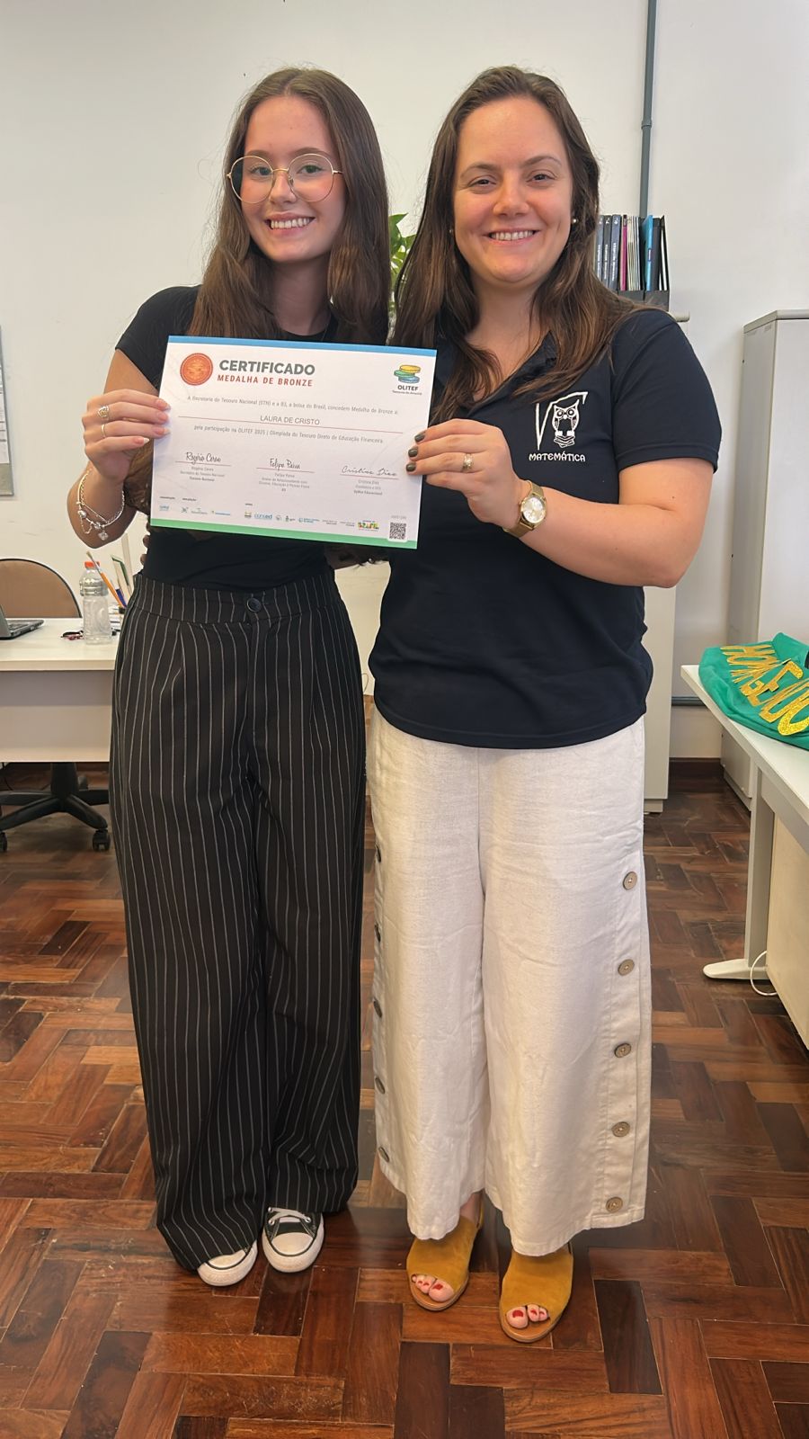 No dia 31 de outubro de 2025, foram divulgados os resultados definitivos da Olimpíada do Tesouro Direto de Educação Financeira (OLITEF), realizada pelo Tesouro Nacional, pelo Tesouro Direto e pela Brasil, Bolsa, Balcão (B³ – a Bolsa de Valores do Brasil), com organização da UpMat Educacional. A Olimpíada que tem como objetivo promover a educação financeira e incentivar hábitos de investimento consciente entre os jovens, vem consolidando-se como uma das principais iniciativas nacionais voltadas ao tema. O Instituto Federal Farroupilha – Campus Frederico Westphalen participa pelo 2º ano consecutivo da Olimpíada e obteve excelente desempenho na competição: dois estudantes conquistaram medalhas e se destacaram entre milhares de participantes de todo o país. No ano de 2026, o campus pretende participar novamente da olimpíada, ampliando a participação com uma preparação ainda mais sólida, através da oferta de projetos voltados aos estudos e à divulgação da OLITEF entre a comunidade acadêmica, ampliando o alcance da educação financeira no ambiente escolar. Na terça, 02 de dezembro de 2024, a diretora geral Silvana Alves Pedrozo e as professoras Bruna Larissa Cecco (responsável pela OLITEF no IFFar-FW) e Denise Espich (coordenadora de projeto Educação Financeira: autonomia e cidadania para jovens) entregaram os Certificados de Participação aos estudantes Cayme Amanda Flach, Misael Samuel Alves, Davi Gervasoni Rentz, Eduardo Silva de Souza, Emily Doring Azevedo, Luís Eduardo Albarello de Jesus, Luiz Fernando Ues, Manuela Peiter Claro, Maria Clara Balbinot Meoti, Mariana May Argenta, Maysa Deliberalli, Milena Franciskievicz de Souza, Stefany Eduarda Sarmento e Ysabelle Vitória Segatto da Silva. Também, receberam os certificados os estudantes Laura de Cristo (medalha de bronze) e Gabriel Renato de Sousa Silveira (medalha de ouro). O Campus Frederico Westphalen parabeniza os estudantes pela participação e evidencia que a conquista dos alunos medalhistas e o engajamento de toda a equipe reforçam o compromisso da instituição com a formação integral, crítica e cidadã, estimulando os estudantes a aplicar o conhecimento de forma responsável e transformadora.