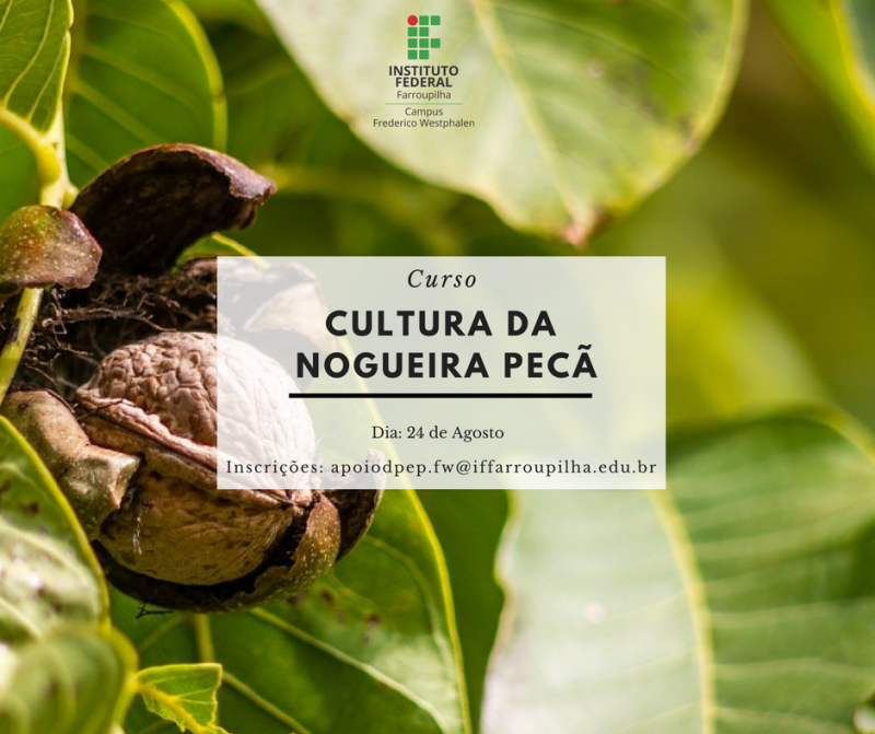 Será realizado no dia 24 de Agosto no Salão Social do IFFar/FW o curso sobre “A cultura da Nogueira Pecã”. O curso tem carga horária de 08 horas com início às 08h00 até 17h30. A palestra será ministrada pelo professor Dr. Diniz Fronza que é docente do Colégio Politécnico de Santa Maria.