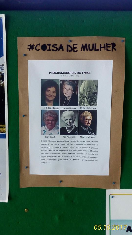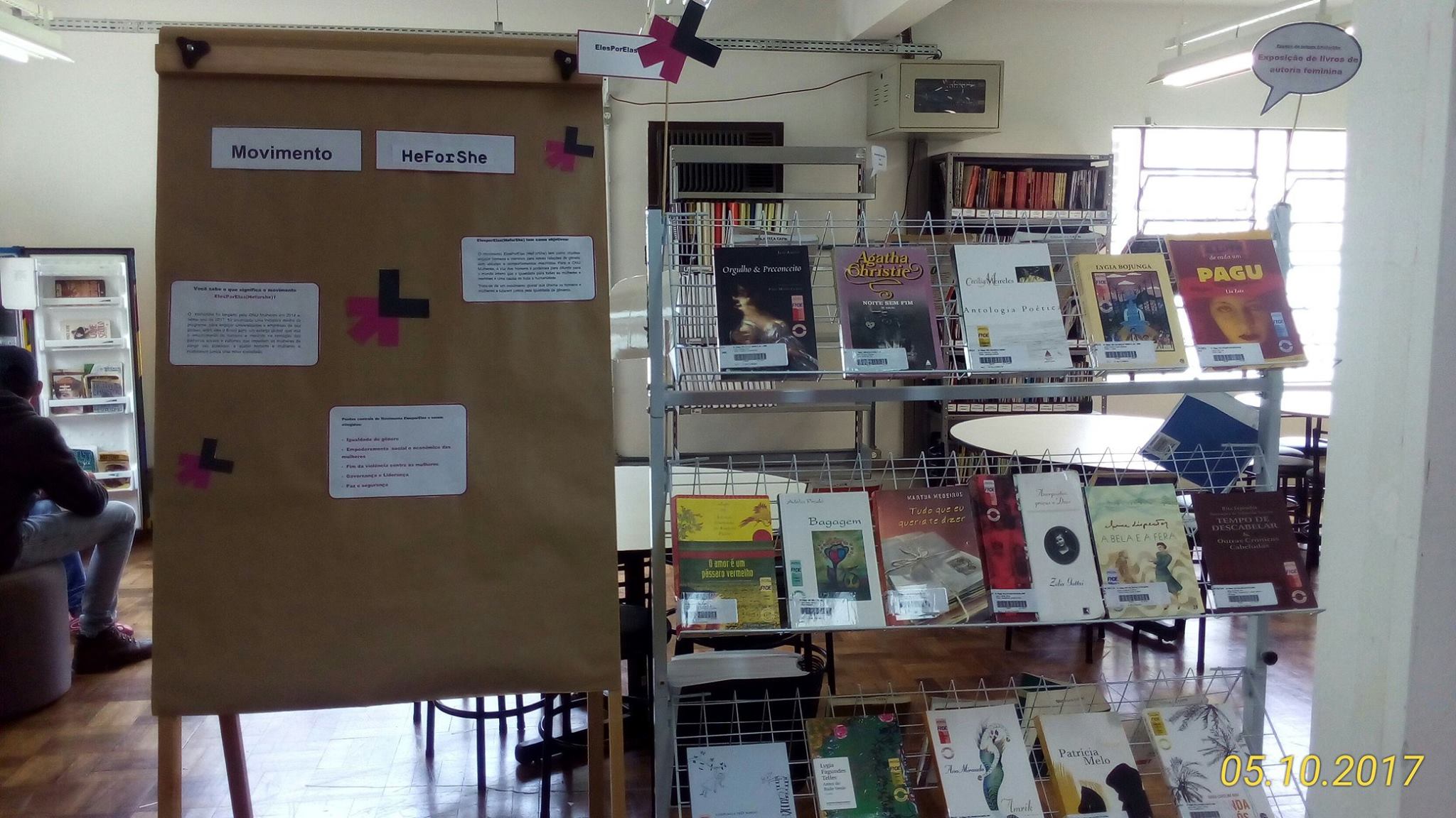 Até 27 de outubro ocorrerá Exposição de fotos “Mulheres de ontem e de hoje” em diversos locais do Campus, Espaço de leitura #HeforShe”. Exposição de livros de autoria feminina na Biblioteca do Campus e Mural interativo “O que você pode fazer para contribuir com a igualdade de gênero?”, na entrada principal do Prédio Central no IFFar/FW.