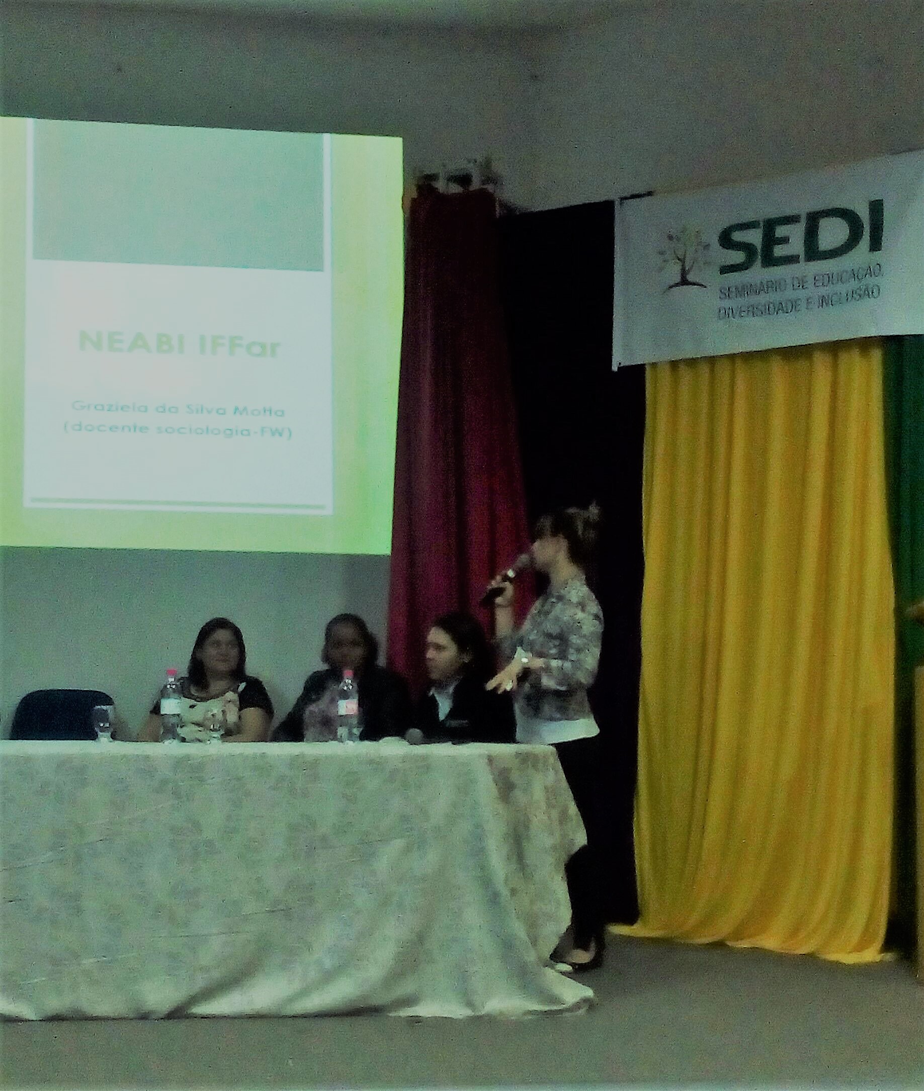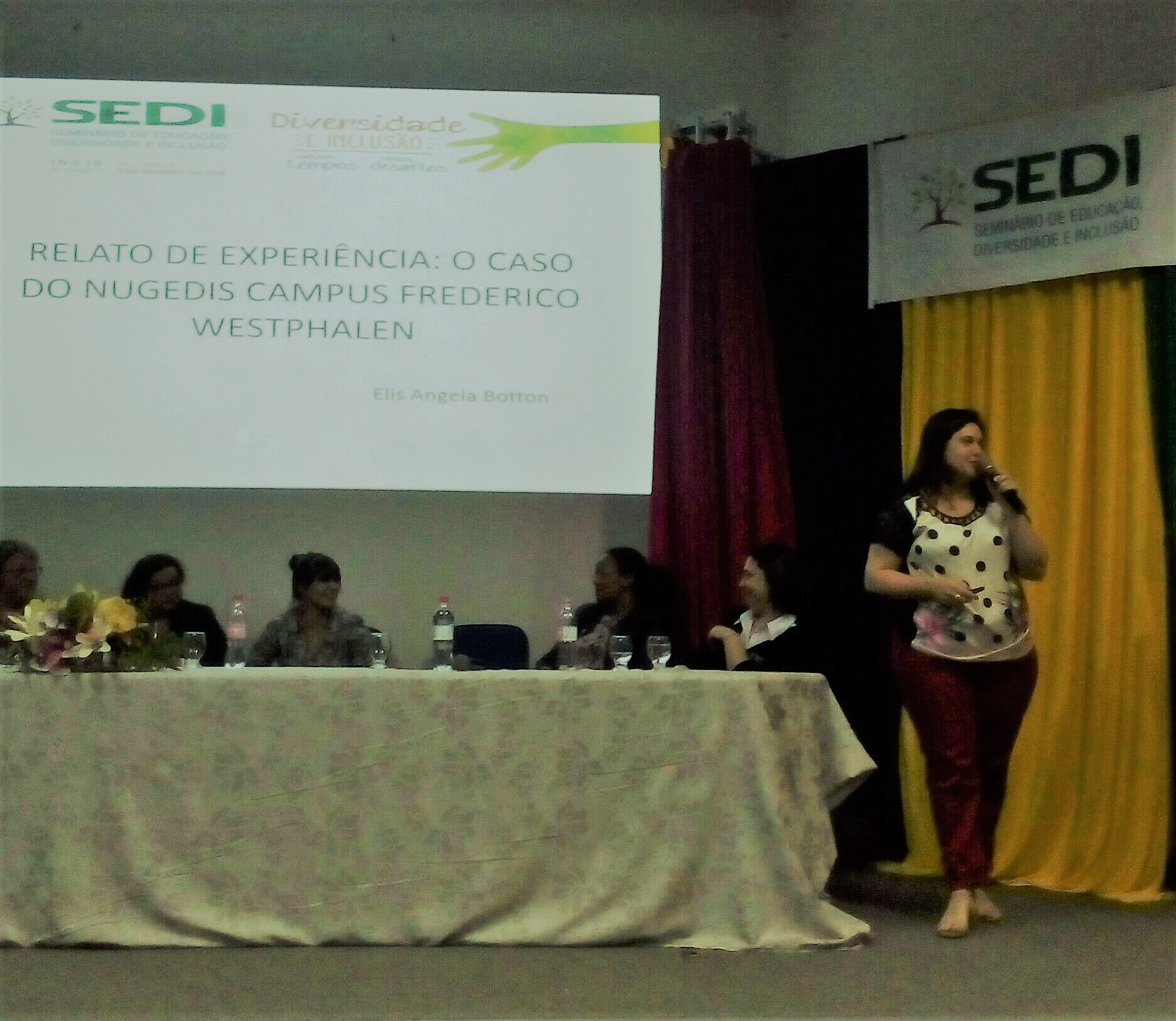 A Coordenação de Ações Inclusivas (CAI) do Campus Frederico esteve presente por meio da participação das docentes Graciela Fagundes Rodrigues que foi mediadora da Mesa de Debates sobre os Núcleos de Apoio à Pessoa com Necessidades Especiais (NAPNE); Elis Angela Botton apresentou a implantação e as ações desenvolvidas no Núcleo de Gênero e Diversidade Sexual (NUGEDIS); Mariane Raposo e Graziela da Silva Motta, ambas representando o Núcleo de Estudos Afro-Brasileiros e Indígenas (NEABI) que teve também suas ações expostas para o público pela docente Graziela.