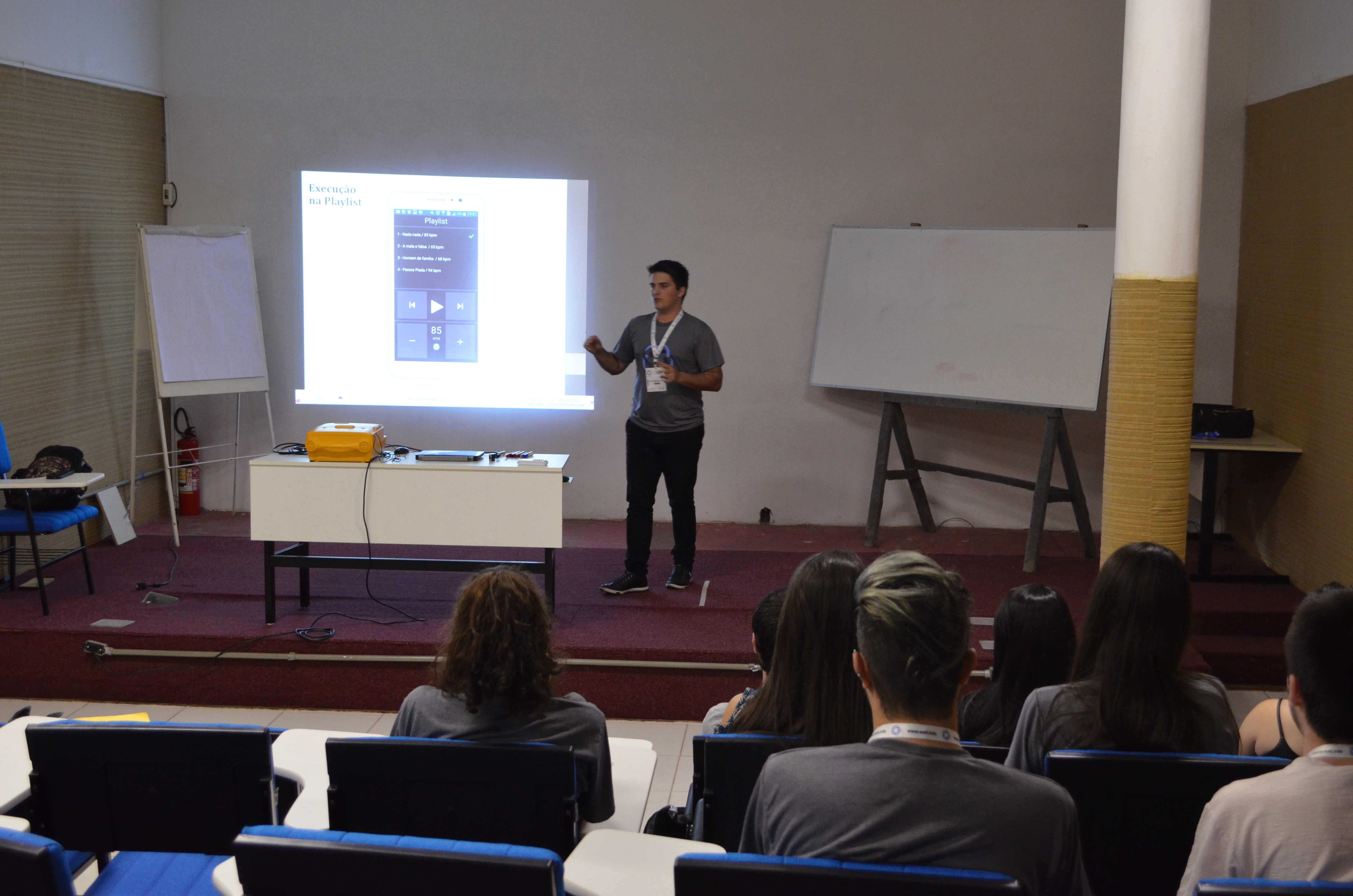 A palestra que movimentou a noite de terça-feira, 07, foi “Programação Híbrida” com o palestrante Frederico Guilherme Klüser de Oliveira, que falou sobre o desenvolvimento de aplicações para dispositivos móveis (smartphones e tablets em especial). Com uso de ferramentas que permitam ao desenvolvedor utilizar um único código para diferentes dispositivos: aparelhos Android, iPhone, Windows 10, etc. A chave para o desenvolvimento híbrido são as tecnologias web, como HTML, CSS e JavaScript.
