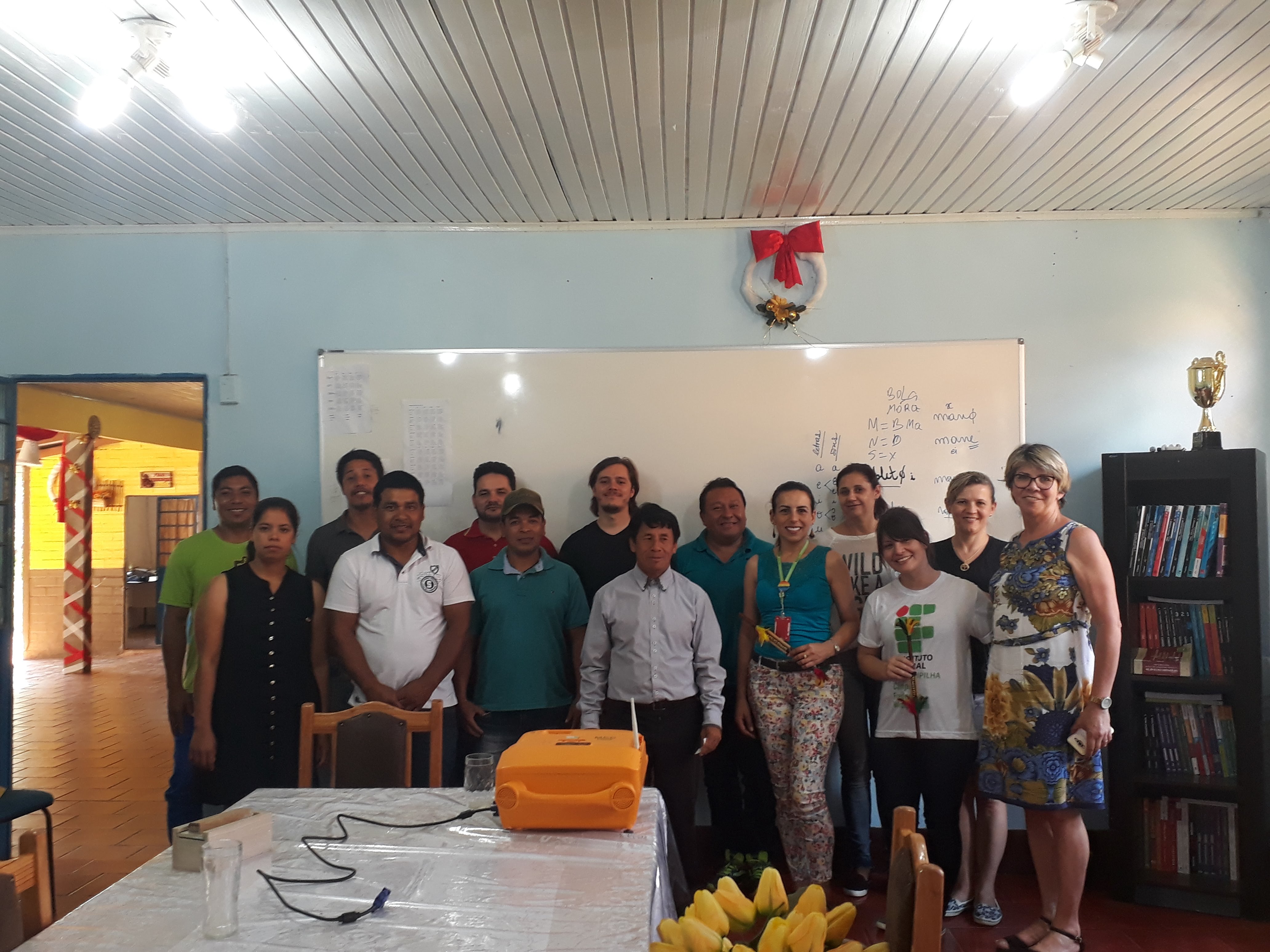 Na terça-feira, 28, os professores César Augusto González, Graciela Fagundes Rodrigues, Graziela da Silva Motta e Mariane Martins Rapôso estiveram visitando a Escola Estadual de Educação Indígena Cacique Sy Gre, na Aldeia Pinhalzinho, localizada no município de Planalto - RS.