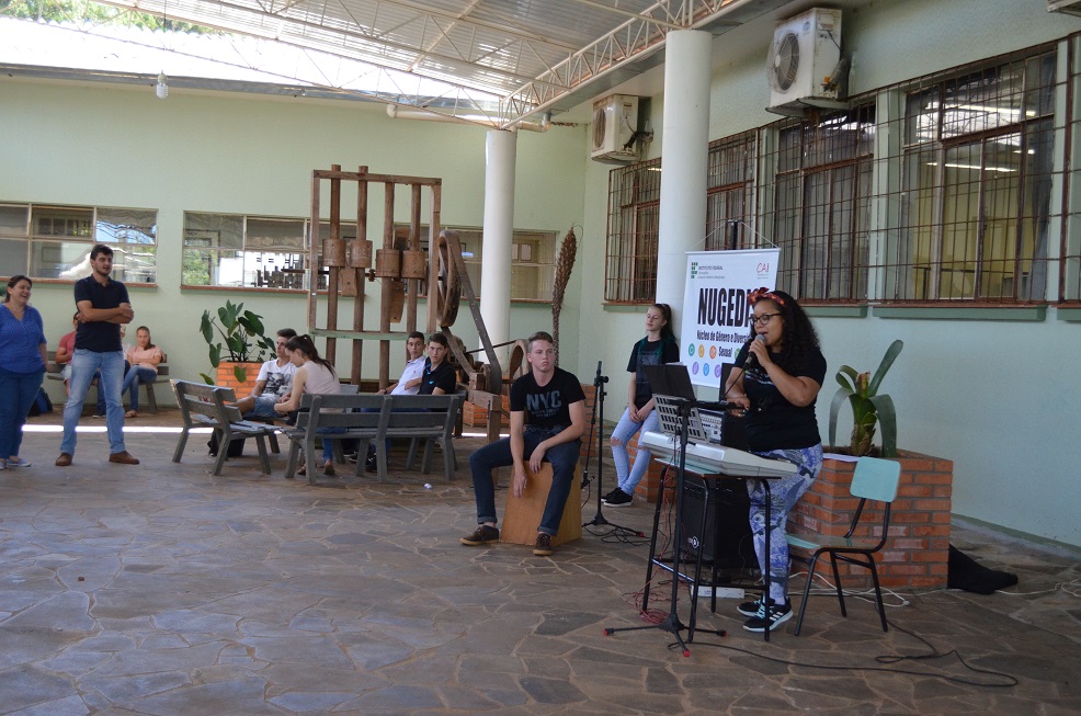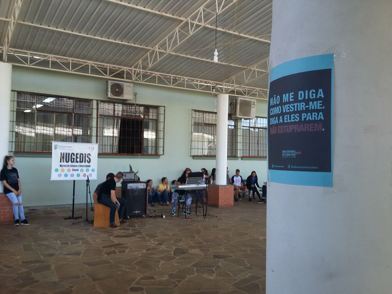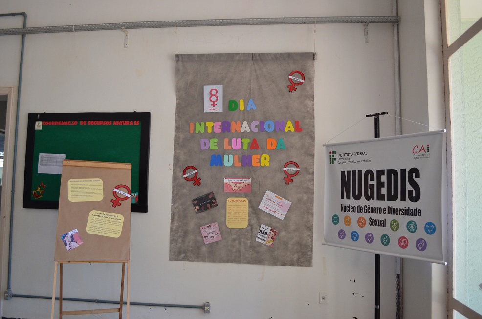 No dia 08 de março o IFFar Campus Frederico Westphalen, desenvolveu atividades alusivas ao Dia Internacional da Mulher, entre elas apresentações artístico-culturais e distribuição de cartazes e faixas com frases sobre o tema. Esta data, para além das celebrações, simboliza os movimentos políticos que, historicamente, reivindicaram o direito ao voto feminino, a quebra da estrutura familiar patriarcal e hoje perduram na defesa do fim da violência de gênero, dos direitos reprodutivos e pela equidade no mundo acadêmico e de trabalho. Assim, o Núcleo de Gênero e Diversidade Sexual (NUGEDIS), a Coordenação de Ações Inclusivas (CAI) e o Grêmio Estudantil promoveram um momento de reflexão elegendo o tema SORORIDADE como elemento problematizador.