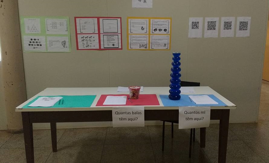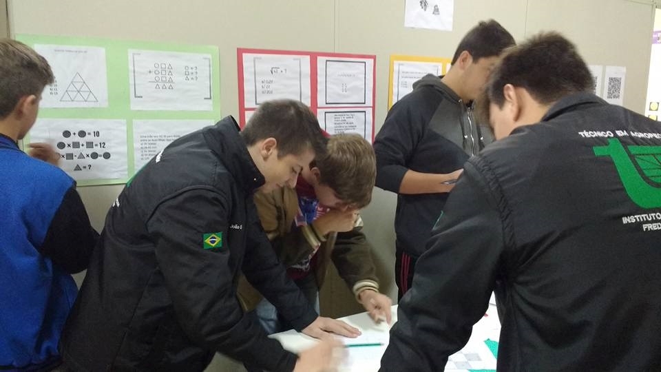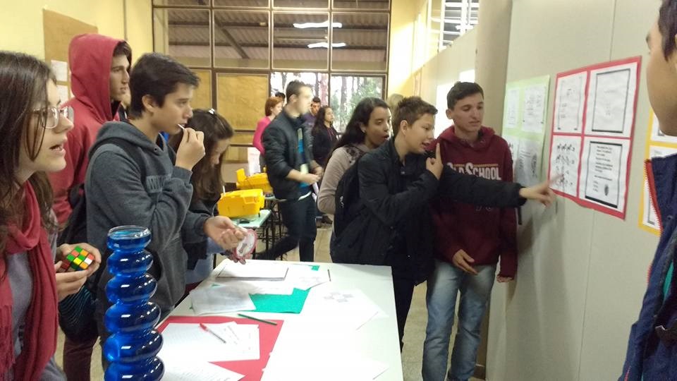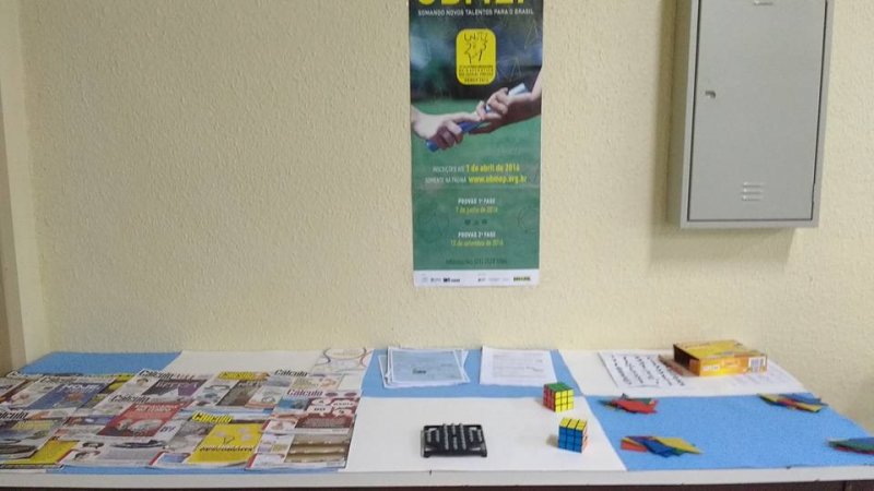 Foram expostos alguns materiais didáticos, tais como sólidos geométricos, alguns exemplares da Revista Cálculo, provas da OBMEP e da OBM, um painel com algumas aplicações da matemática em disciplinas técnicas do Curso Técnico em Agropecuária, entre outros. Além disso, foi proposta a resolução de vários Desafios Matemáticos, bem como atividades interativas na lousa digital. Também foram disponibilizados alguns jogos lógicos e pedagógicos, como o Tangram, Cubo Mágico, Xadrez e Resta Um para que os alunos utilizassem a matemática de uma forma lúdica e descontraída.