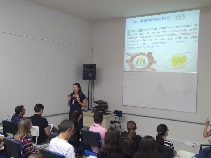 Na noite da quinta-feira, 03, realizou-se no auditório do curso de Administração do IFFar/FW, a palestra com o tema “Os desafios do cooperativismo na região do ESREG Frederico Westphalen”. A atividade foi ministrada pela coordenadora da Unidade de Cooperativismo do escritório regional da Emater de Frederico Westphalen, Márcia Faccin, e pela contadora da Unidade, Lia Rocha. Participaram do evento os docentes do curso de Administração e acadêmicos do 3º e 5º semestres.