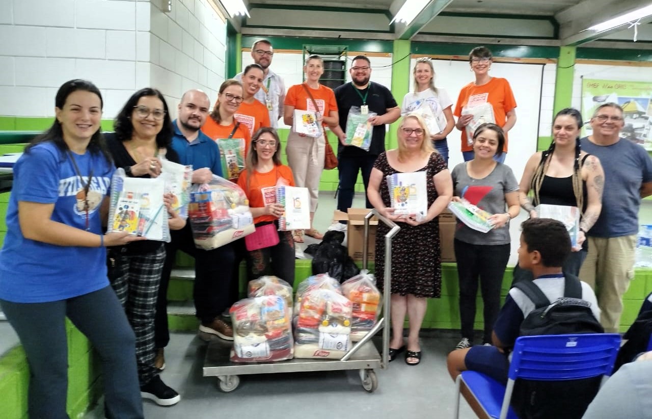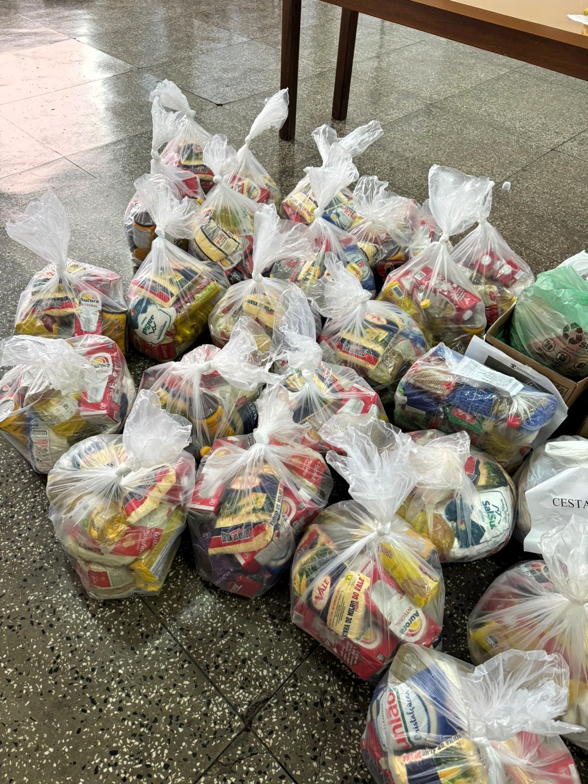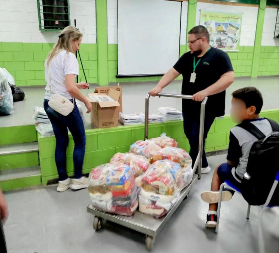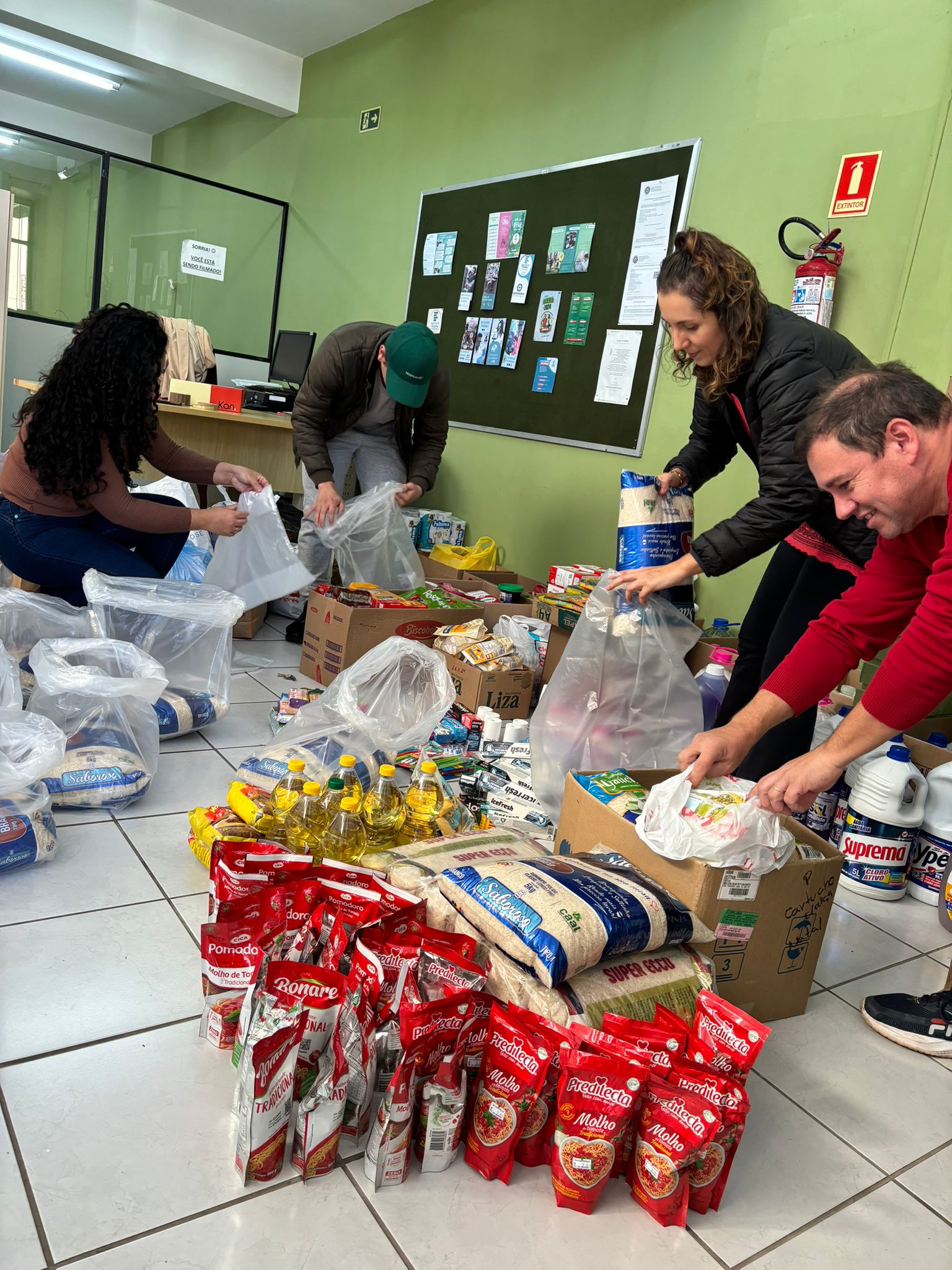 Estudantes do IFFar e funcionários terceirizados que tiveram suas residências atingidas pelas fortes chuvas e enchentes também receberam doações cestas básicas e kits de alimentação arrecadados.