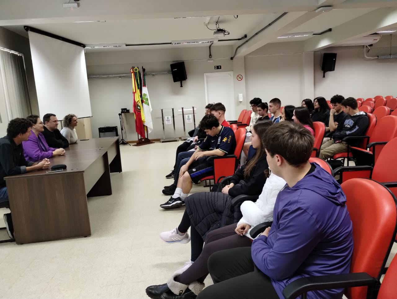 Foto: reunião no auditório do Campus Júlio de Castilhos com estudantes finalistas da 16ª ONHB/Assessoria do Gabinete