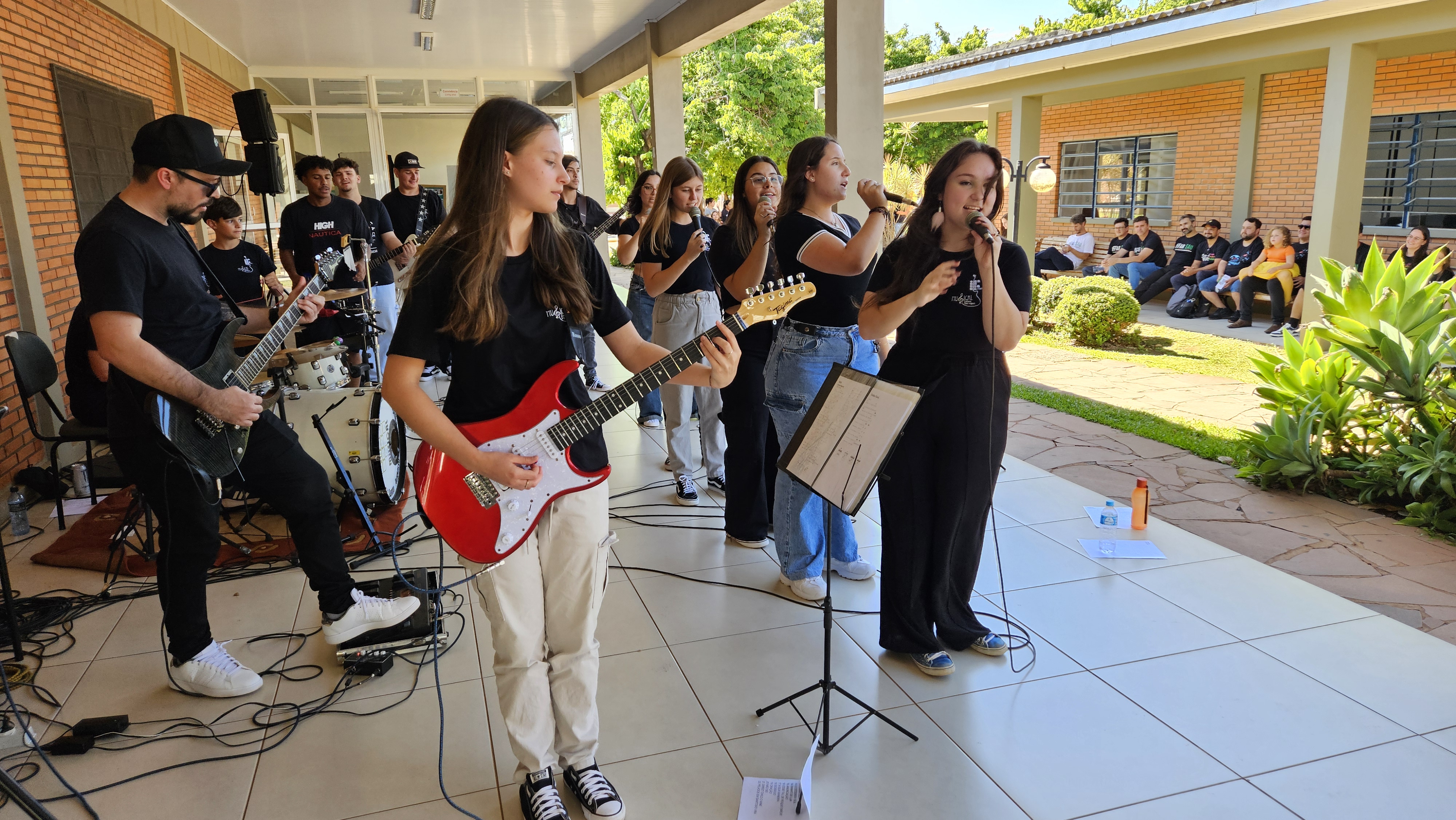 Na sequência, a reitora Nídia Heringer prestigiou a exposição fotográfica alusiva aos 17 anos do IFFar – Campus Santo Augusto na Sala de Convivência, e acompanhou as apresentações da Banda IF Musical e da Banda dos Servidores em frente ao refeitório.
