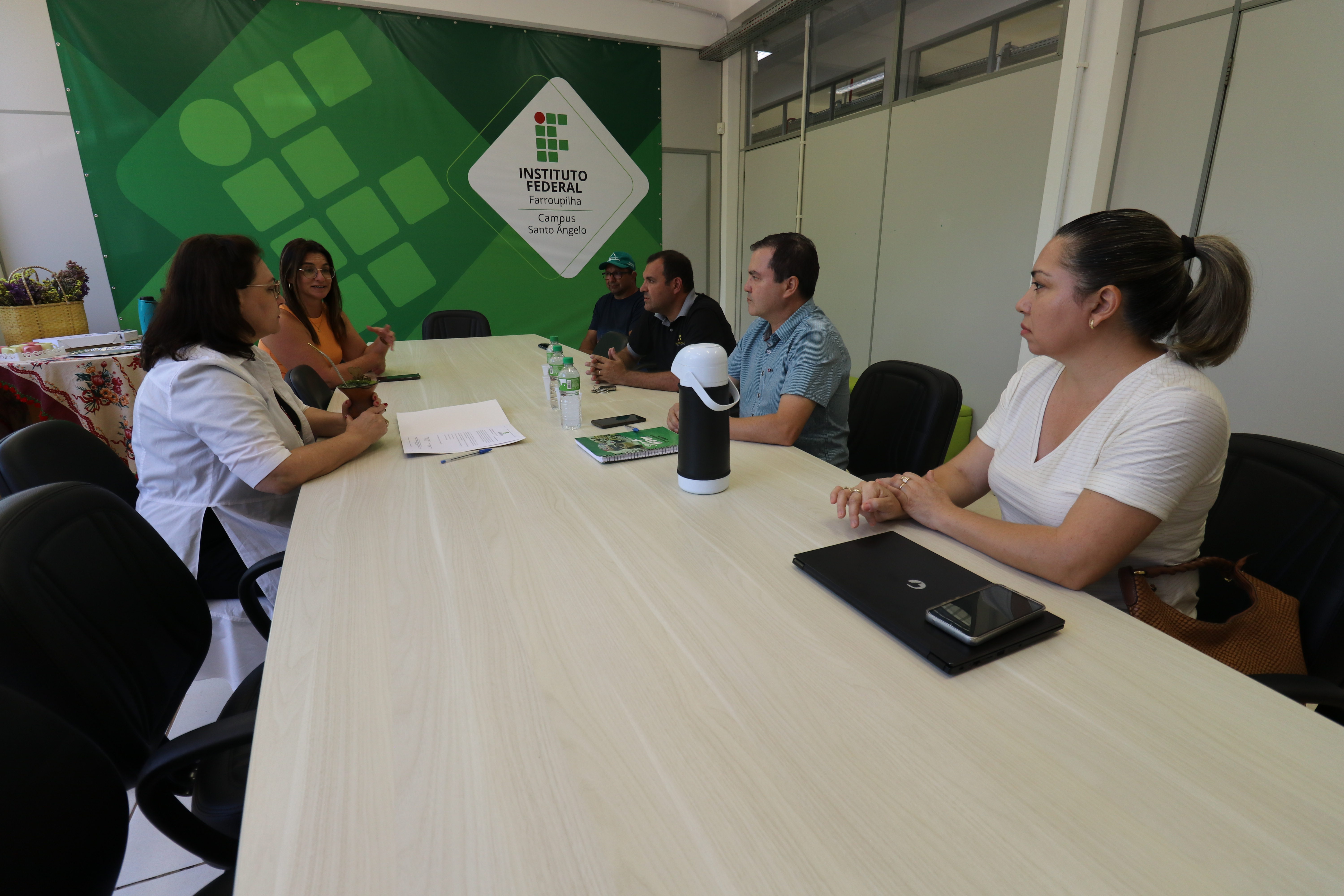 Participaram do evento a reitora do IFFar, professora Nídia Heringer; o diretor-geral do Campus Santo Ângelo, professor Adilson Stamberg; a diretora-geral eleita, Marieli Krampe Machado; a arquiteta do IFFar, Fabíola Machado; o coordenador de infraestrutura, Eliezer Lamas; e representantes da empresa contratada.