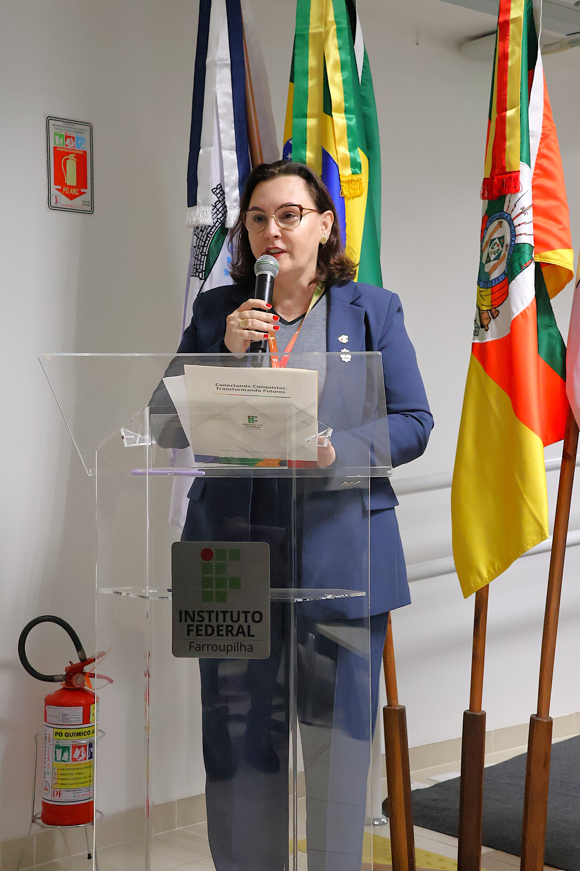 Foto: reitora do IFFar, professora Nídia Heringer durante sua fala na abertura do evento/Secom