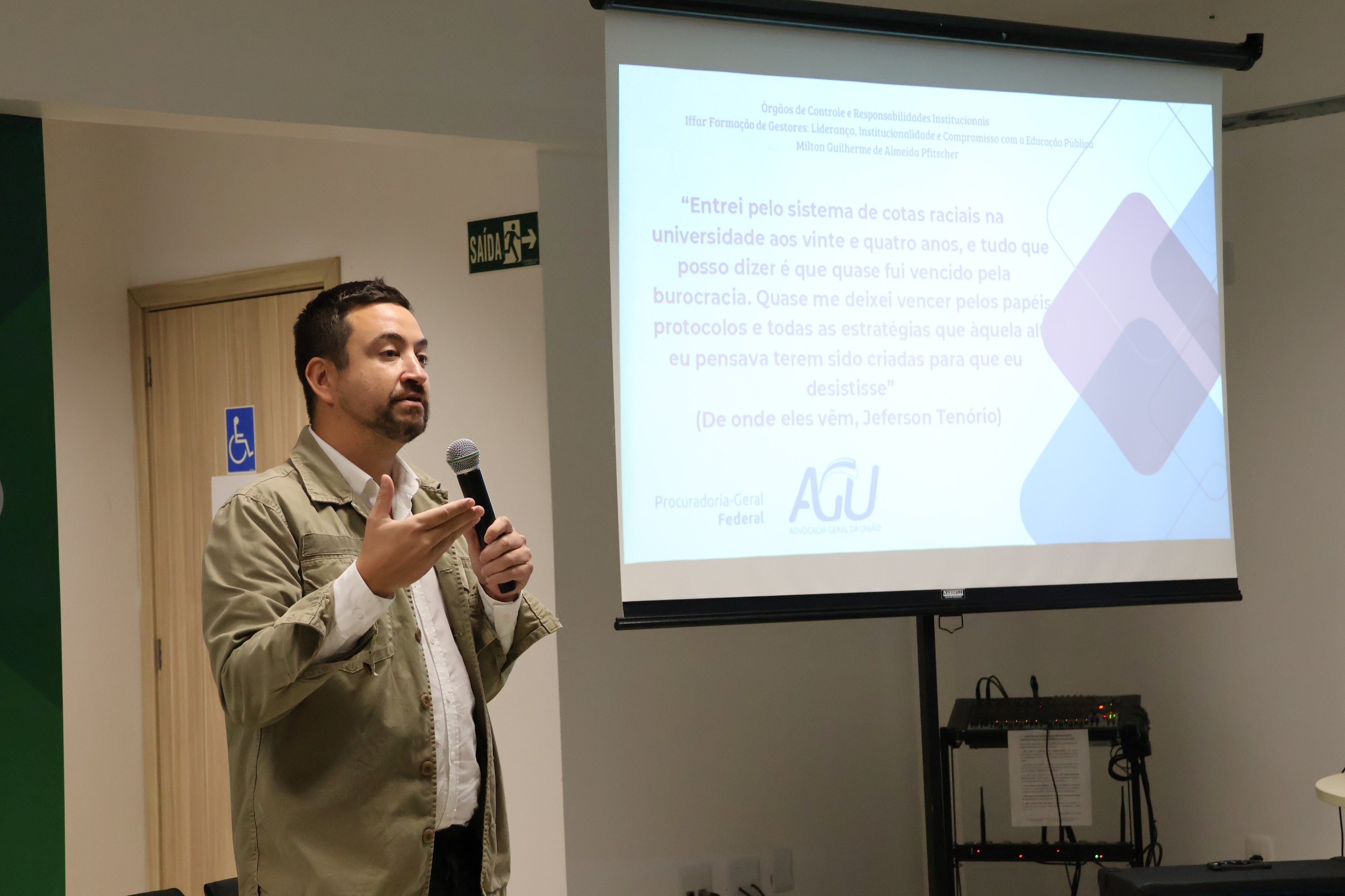 Nos dias 4 e 5 de junho, o IFFar realizou, na Reitoria, o Módulo I do Curso de Formação de Gestores com o tema: “Liderança, Institucionalidade e Compromisso com a Educação Pública”. A atividade contou com participação presencial no auditório, além de transmissão ao vivo pela WebTV do IFFar, no YouTube.